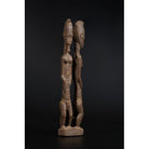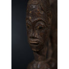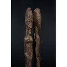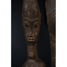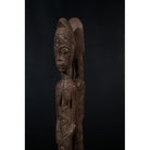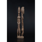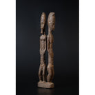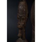 - A Baule couple sculpture, Ivory Coast, the statues standing on a rectangular base, muscular legs ending in prominent buttocks, wearing a loincloth encircling the hips, both have a slender torso with a pointed navel, the male has an emphasized pectoral muscles and nipples, the female hanging, tapering breasts, both have narrow rounded shoulders leading to fragile arms carved close to the body, the hands touching the abdomen, the toros is decorated with scarification marks of varied geometric patterns, the very long cylindrical neck supporting an elongated head, the male has an elongated goatee, both have a protruding mouth, a slender flat nose with a broad tip, large almond-shaped eyes with painted blackened pupils, the eyelids half closed, the striated high arched eyebrows connected...both sculptures capped by a striated crested coiffure.