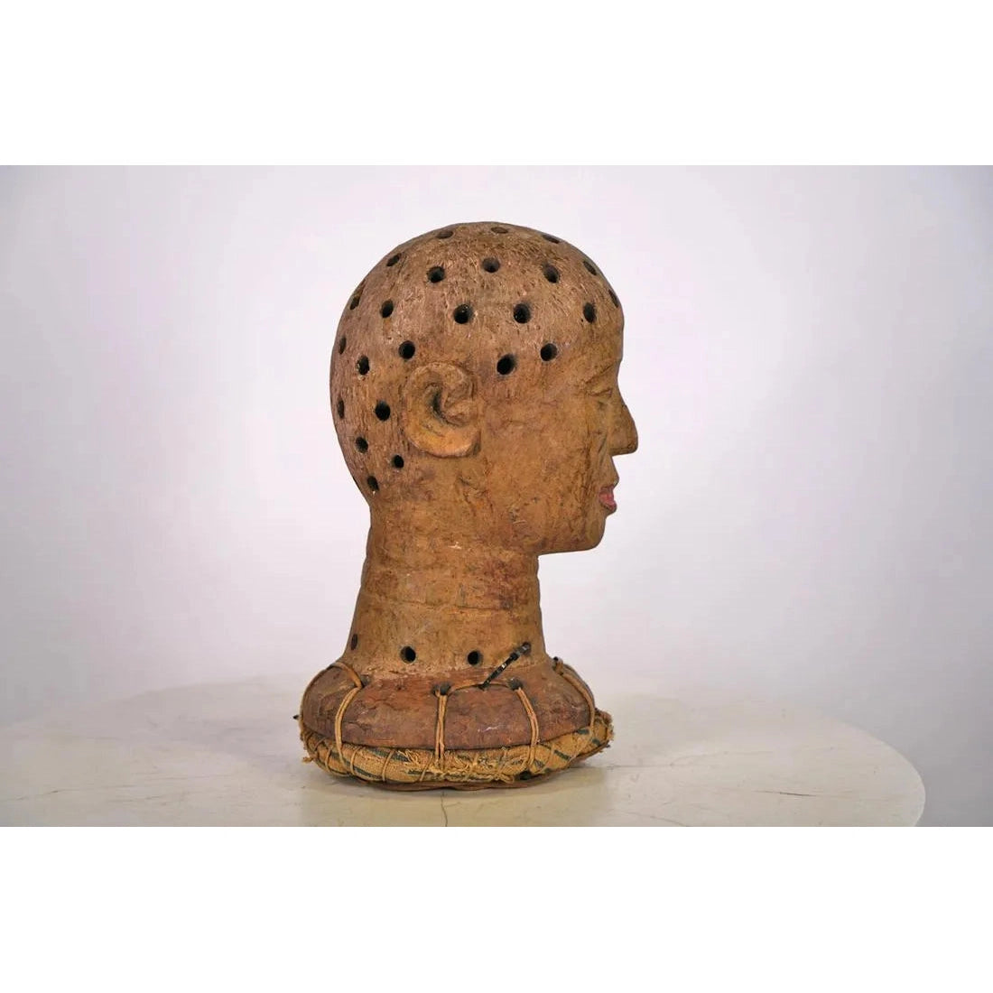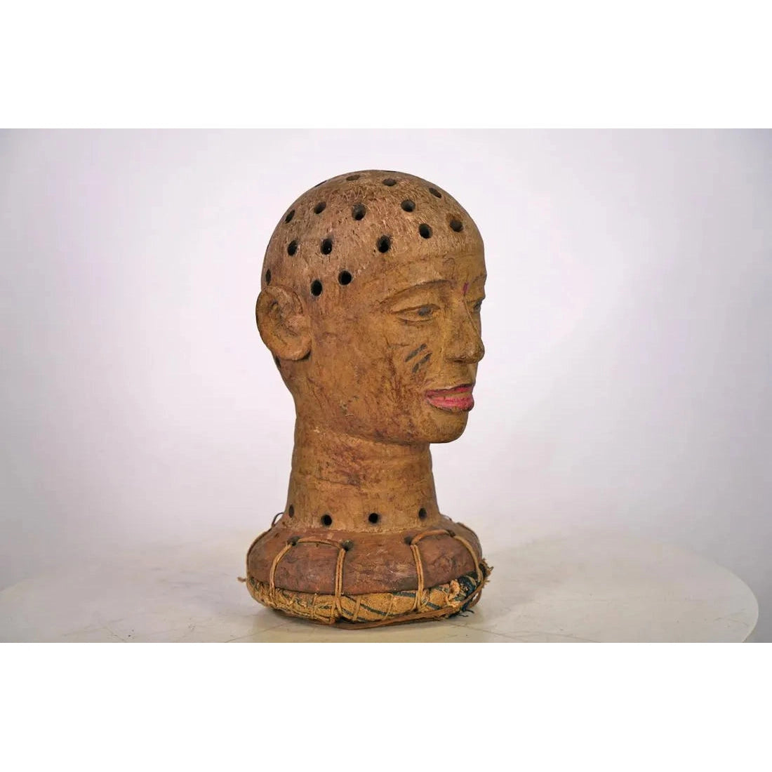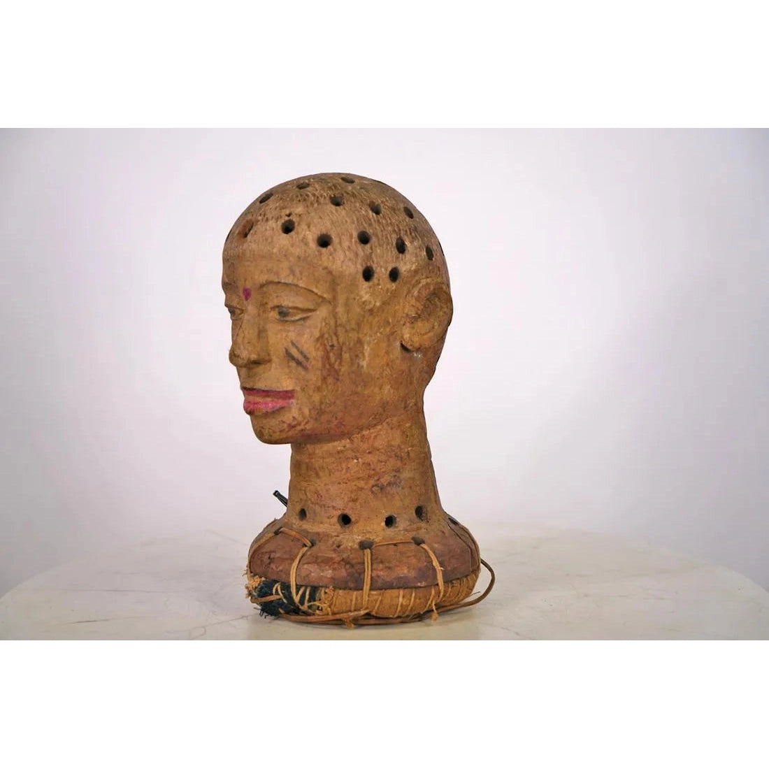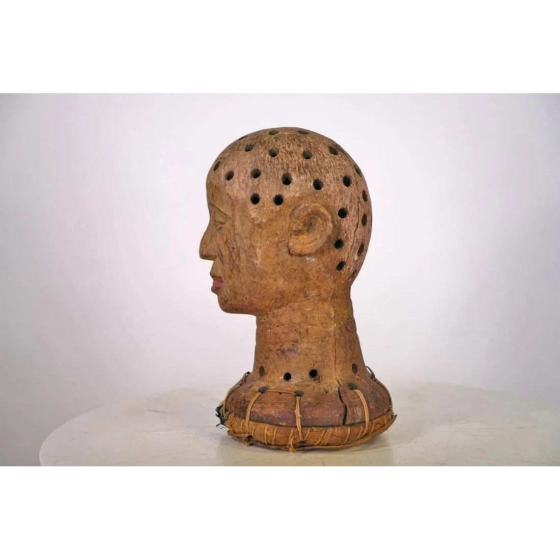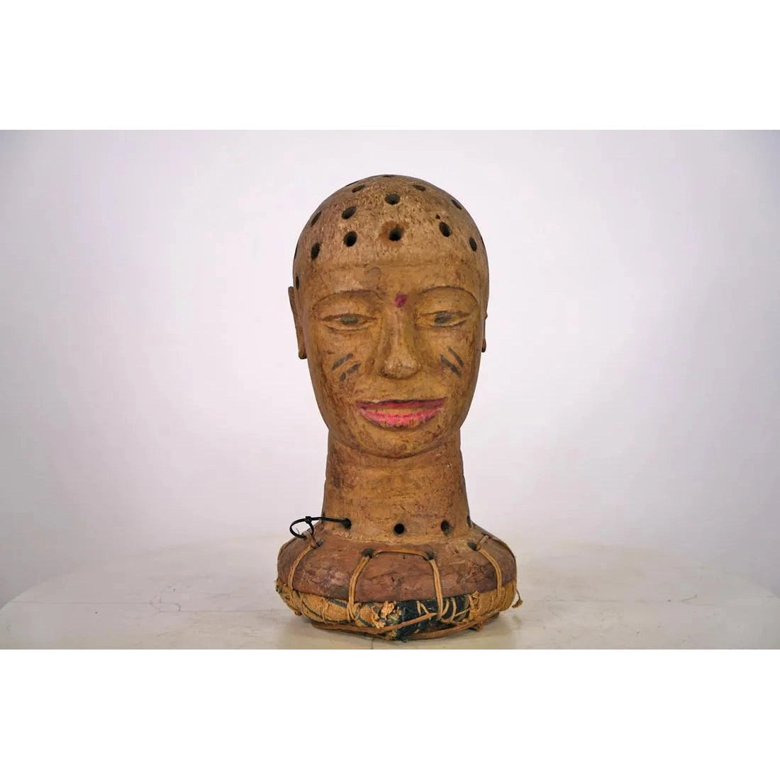 Kaolin taken from local Riverbeds (which are associated with Healing and with a Spiritual, Ancestral Realm of Existence) was applied to the facial surface of the Mask.