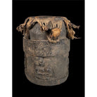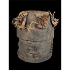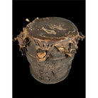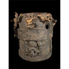 • Yoruba drum. Mid 20th century. Carvings all around, the original drum skin still present.