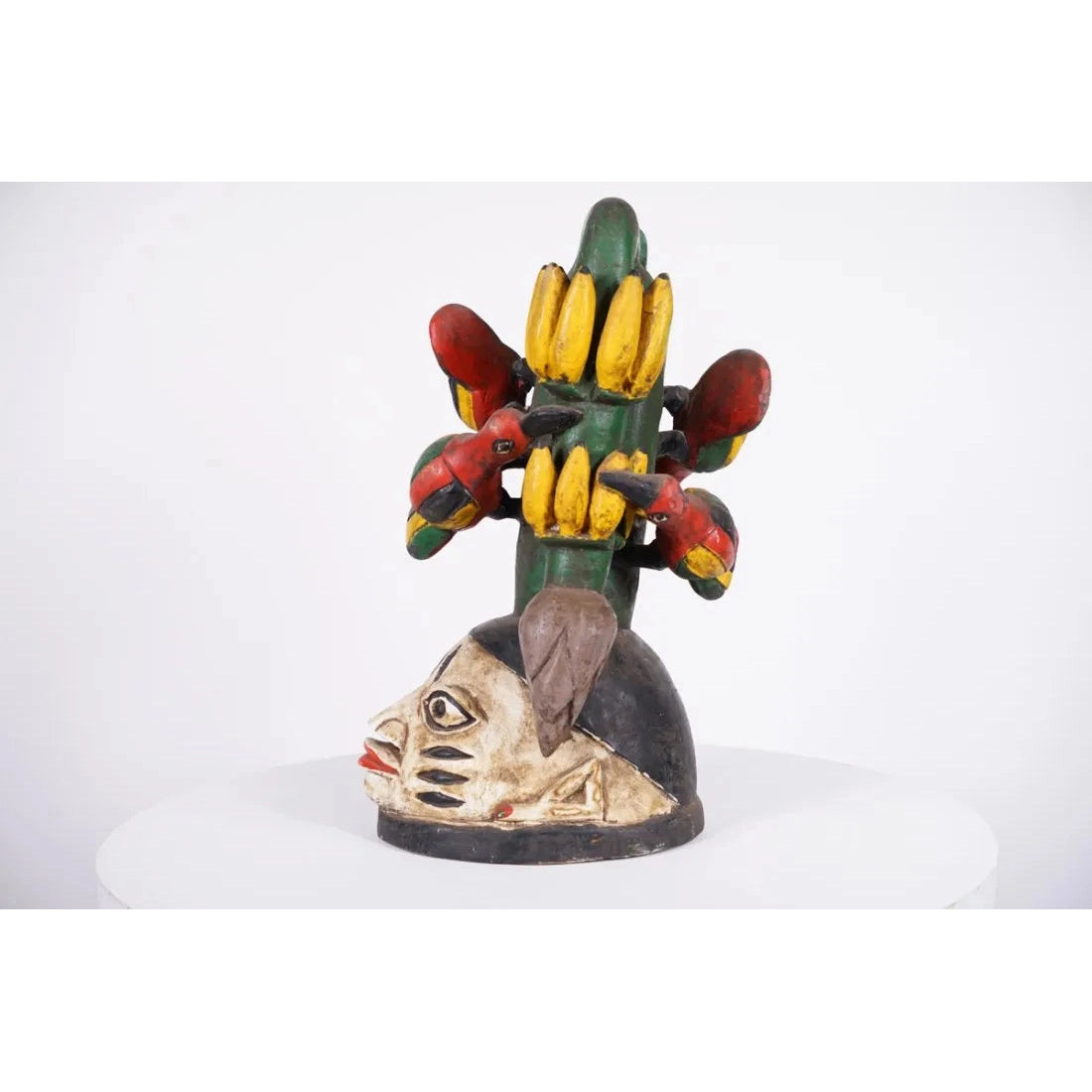 Yoruba Gelede Mask with Birds Eating Bananas, Nigeria #1108
