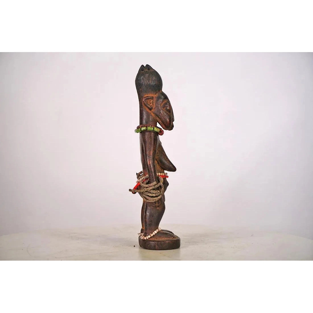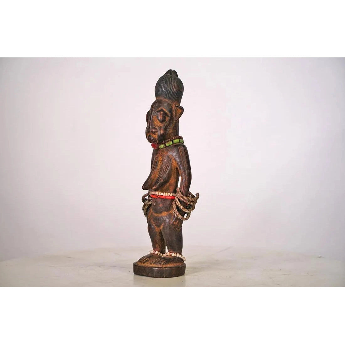 • The Yoruba people of Nigeria have the highest rate for twin births, about 4.5%. Twins are believed to possess special powers and share a single soul. Good fortune is thought to come to those who honor them. The Ibeji figure was created to honor a deceased Twin or set of Twins. If one child dies, a single sculpture is made and cared for by the Mother, then eventually, the surviving Twin. If both children die, then two identical sculptures are made. The figures are cared for as if they are living since it is believed that their spirit resides inside the figure itself. Regular washings and offering of food is necessary. Some figures are adorned with beads and jewelry by their Mother in reflection of her love and affection.