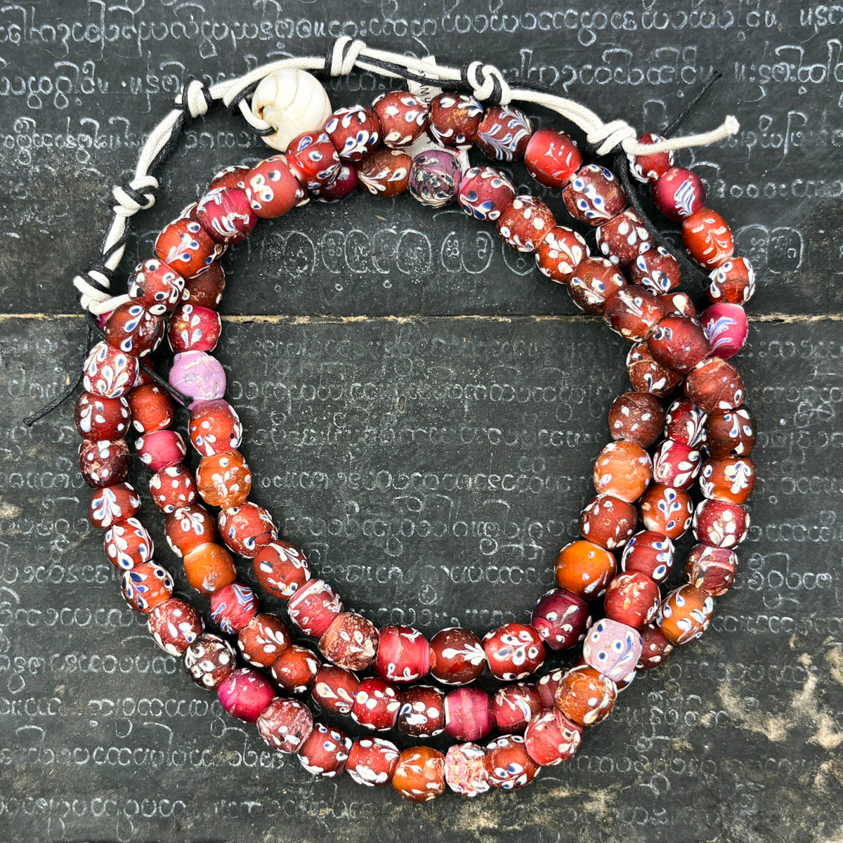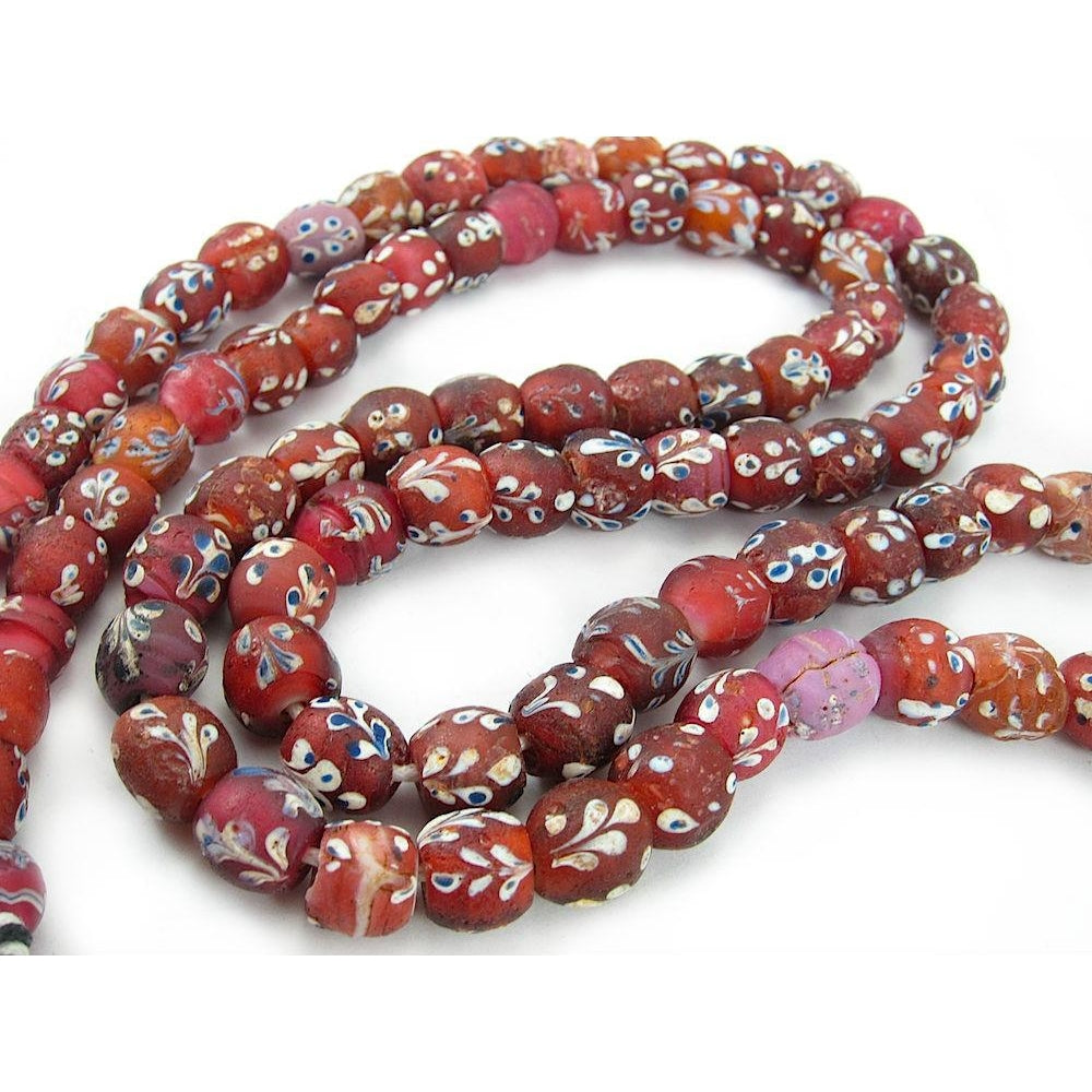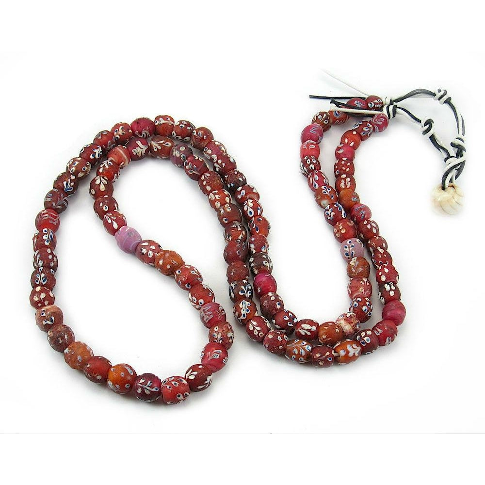 19th Century Venetian White Hearts with Inlaid Floral Vines Pattern Strand / Necklace