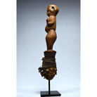 • A charming carved wooden Anthropomorphic handle with remains of reptile skin on the bottom where the whisk was once attached.