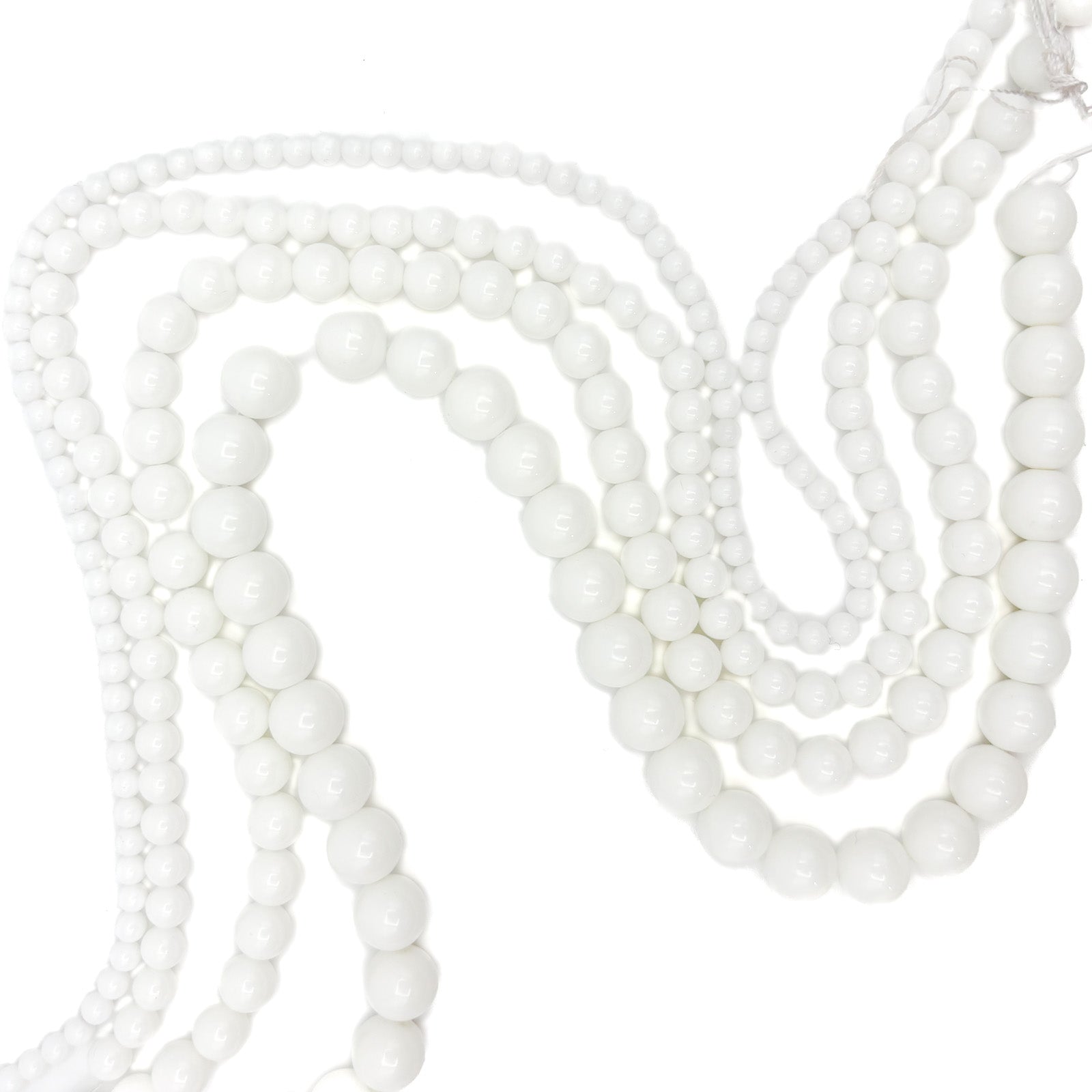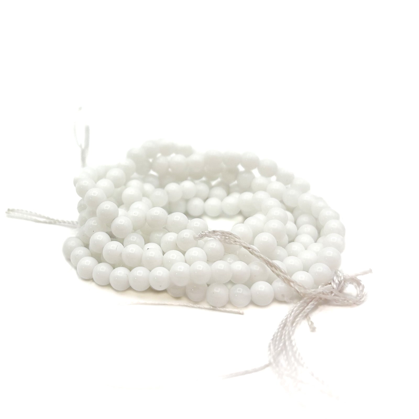Snow White Agate 4mm, 6mm, 8mm, 10mm Smooth Rounds Bead Strand