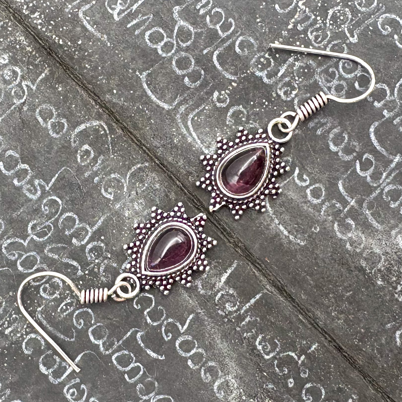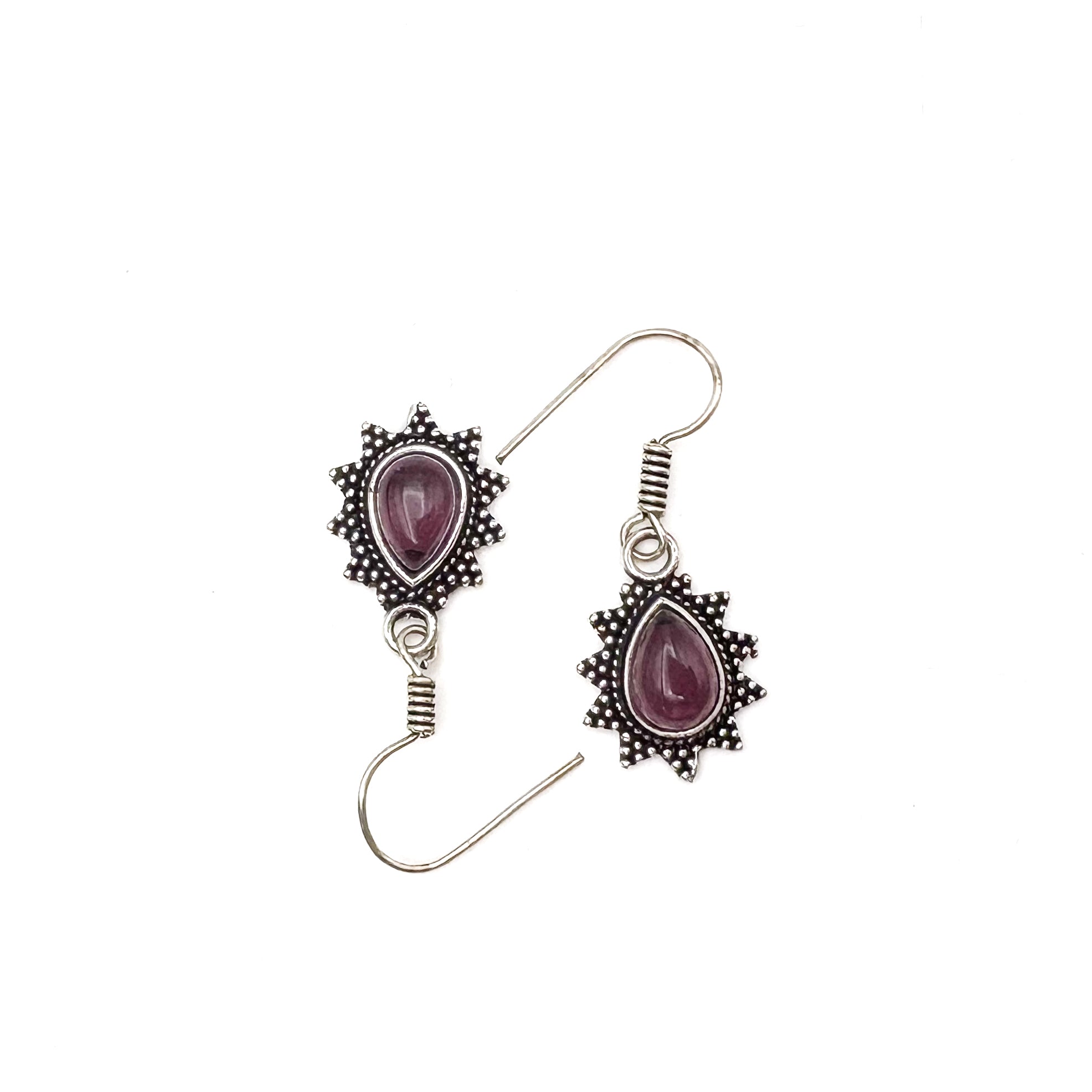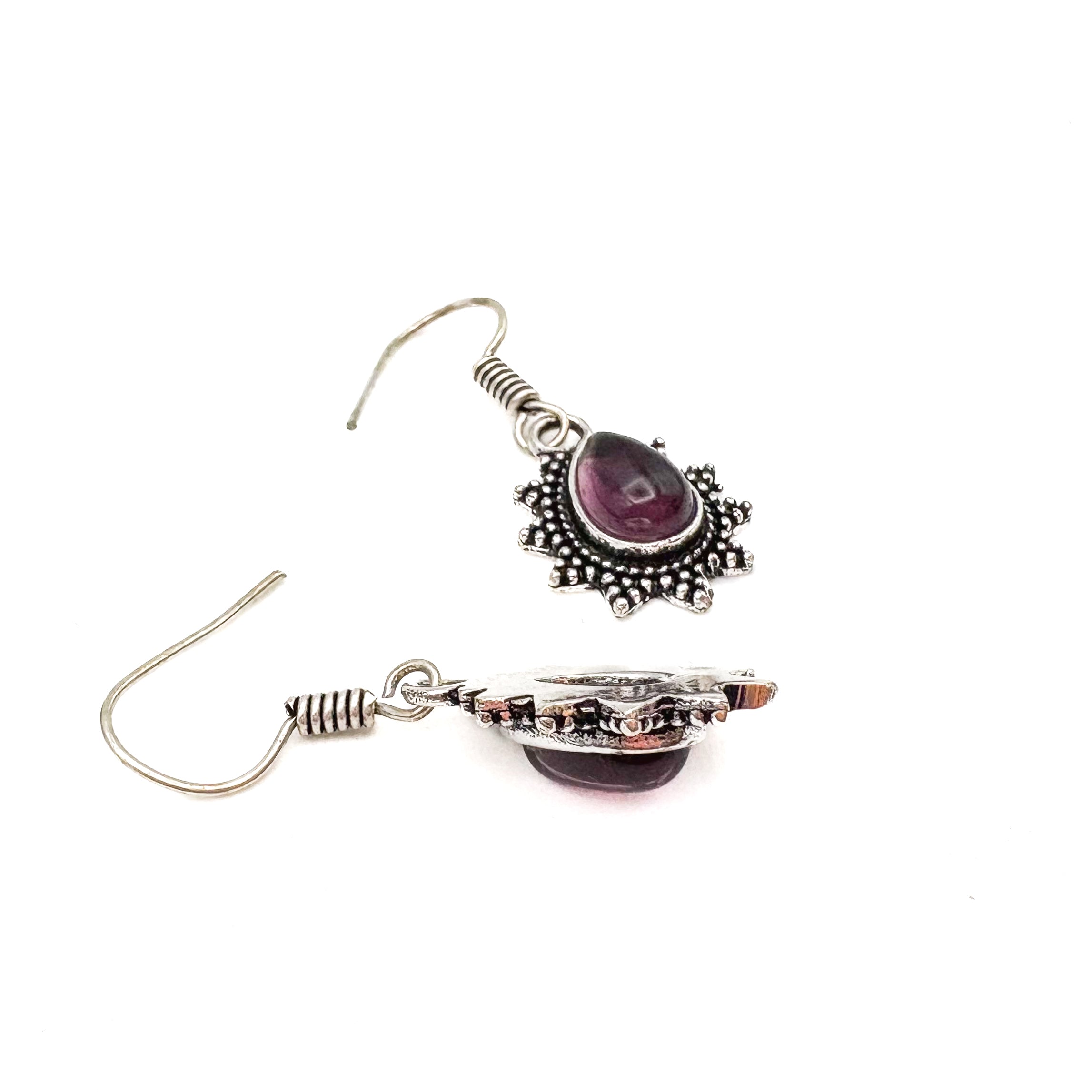 Amethyst Teardrop Dotted Rays White Brass Earrings