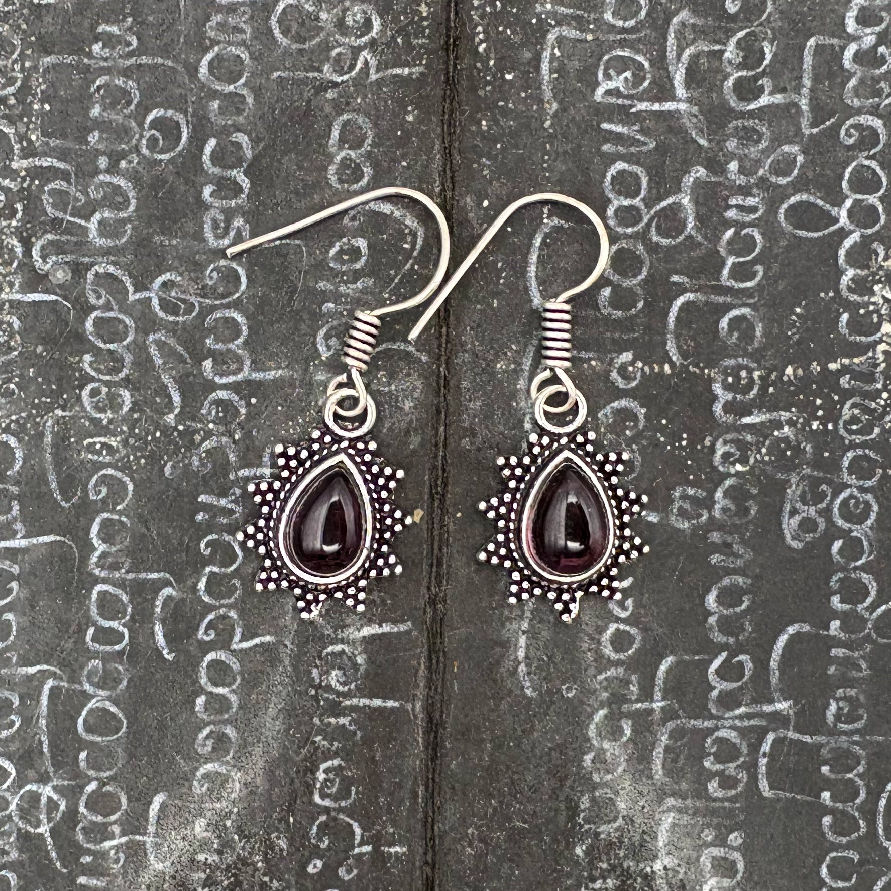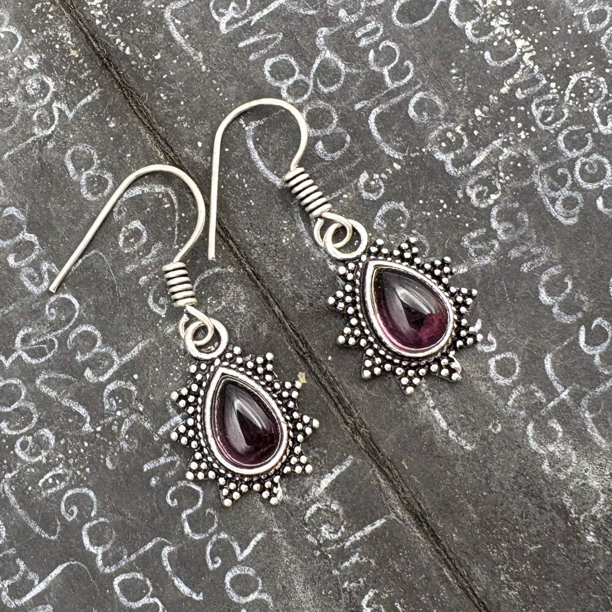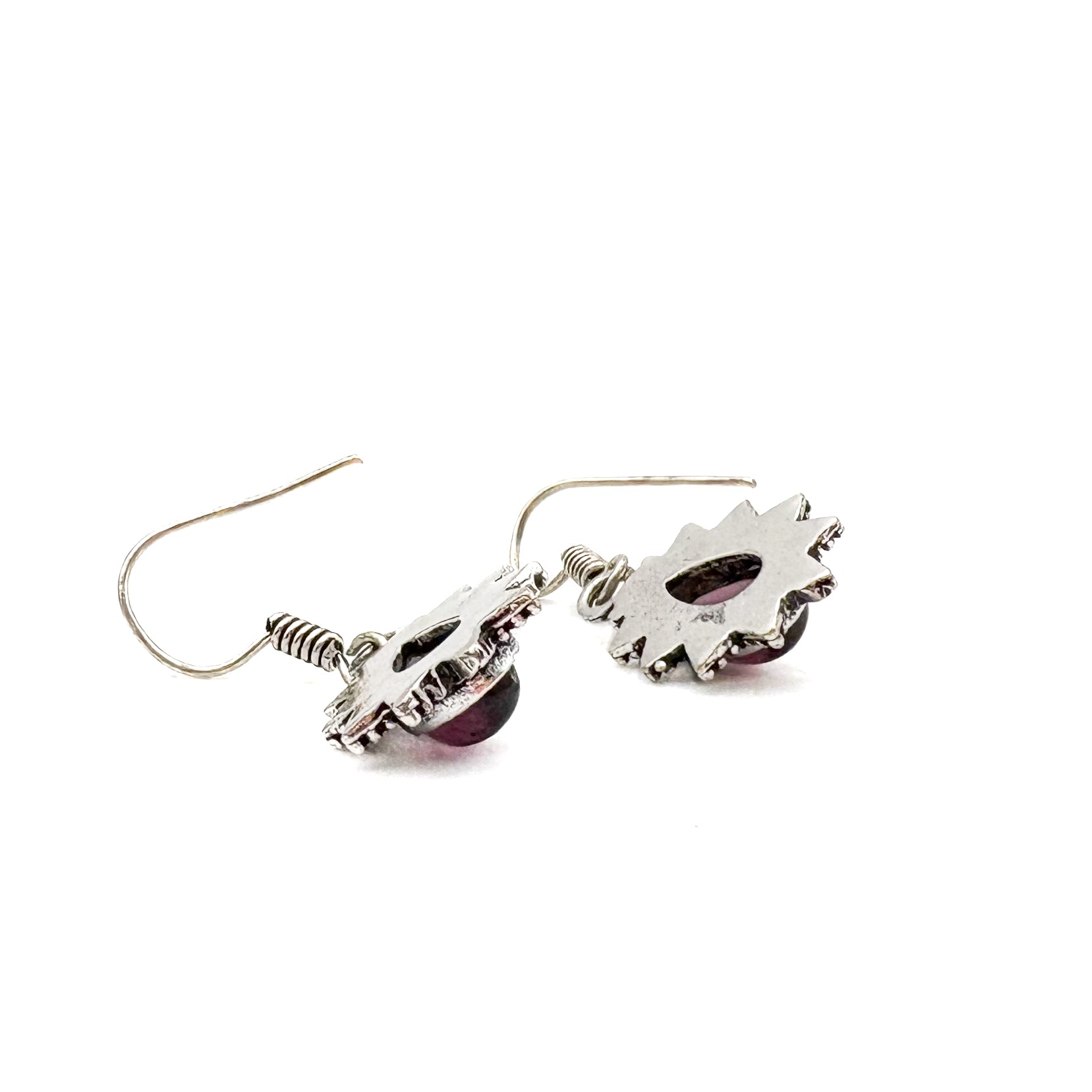 Amethyst Teardrop Dotted Rays White Brass Earrings