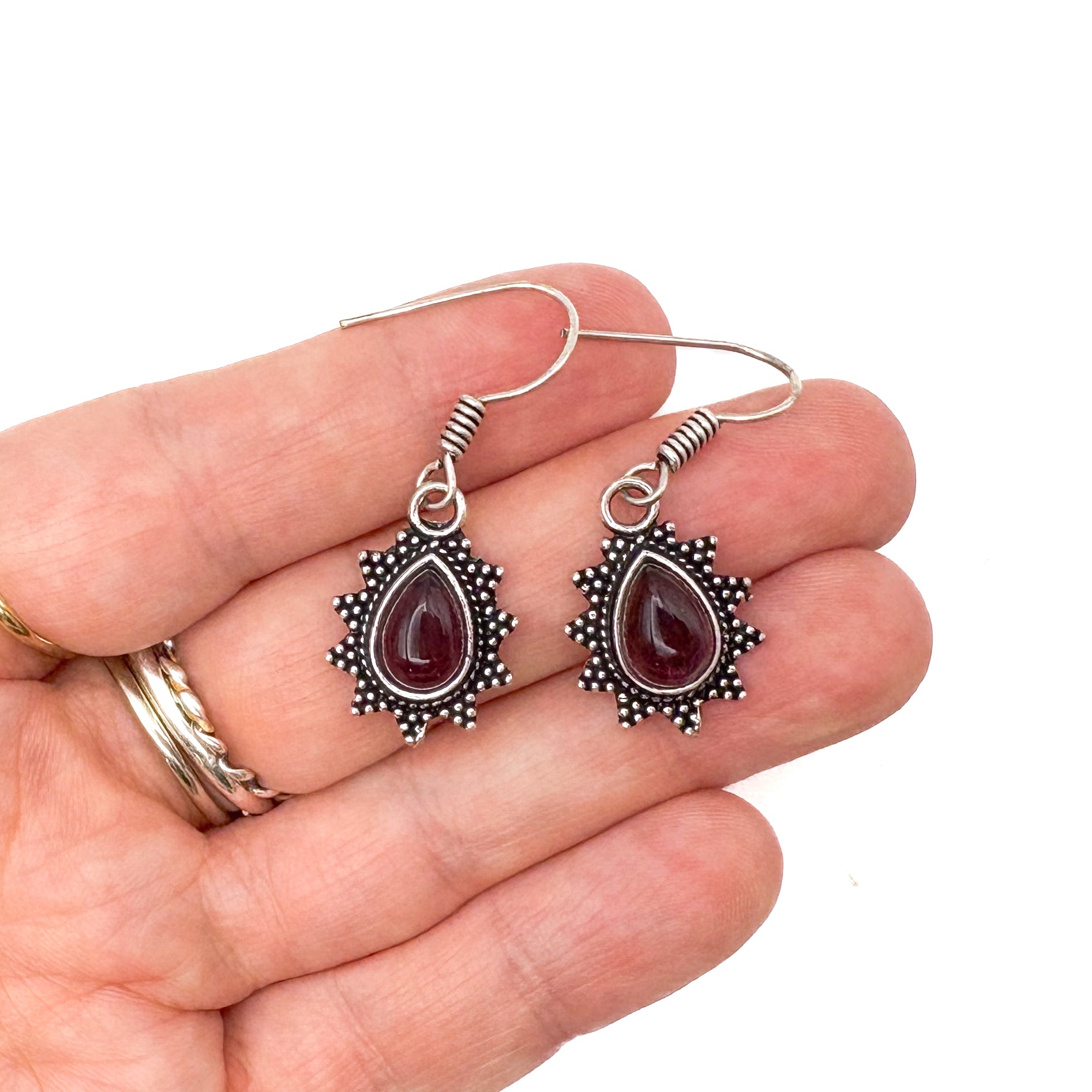 Measurements: 20mm x 13mm ; Stone 9 x 6mm; dangles 3/4”