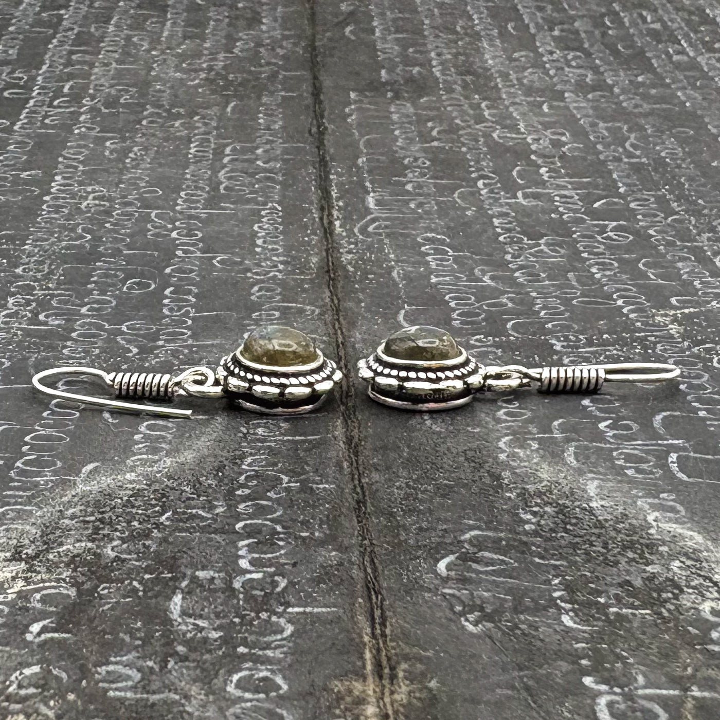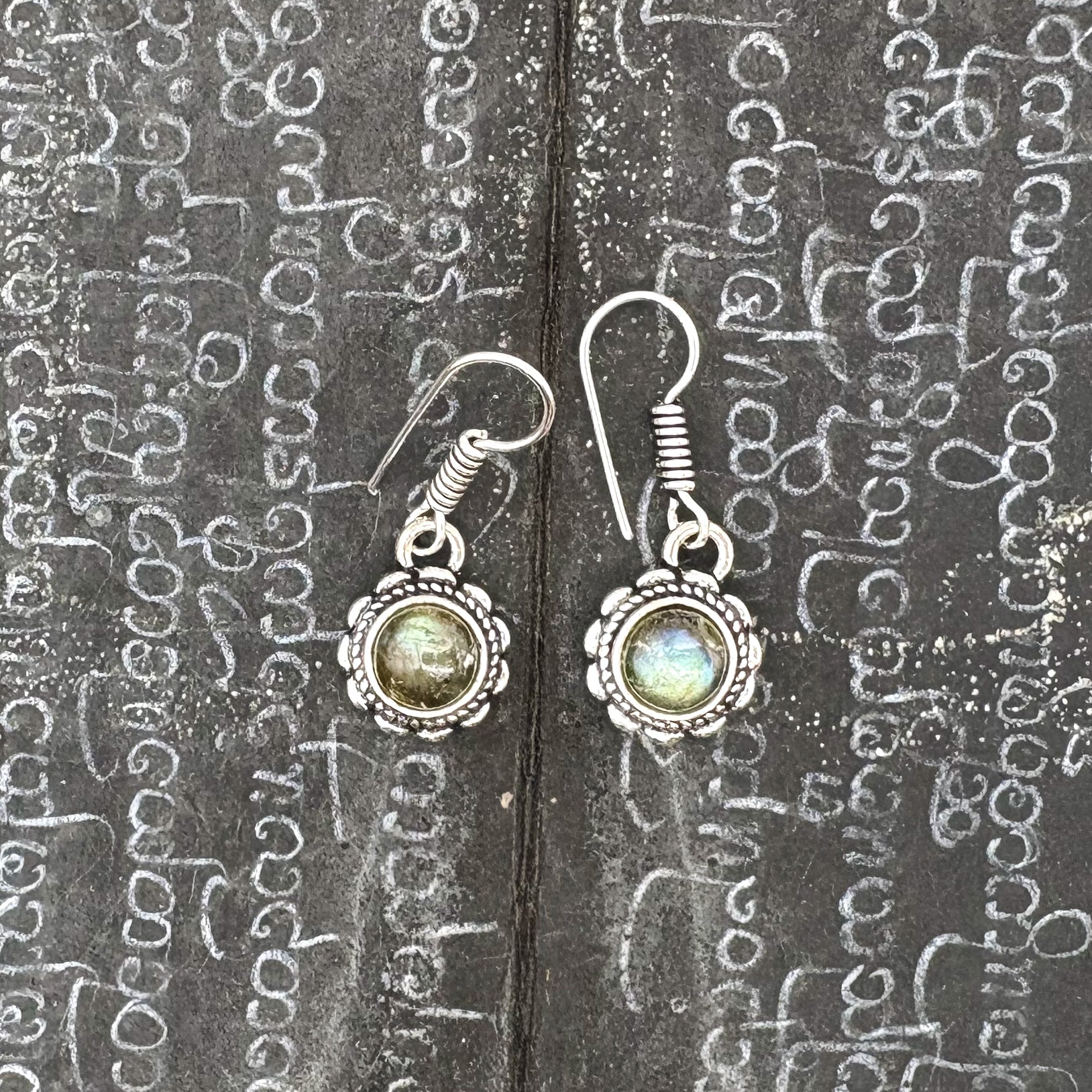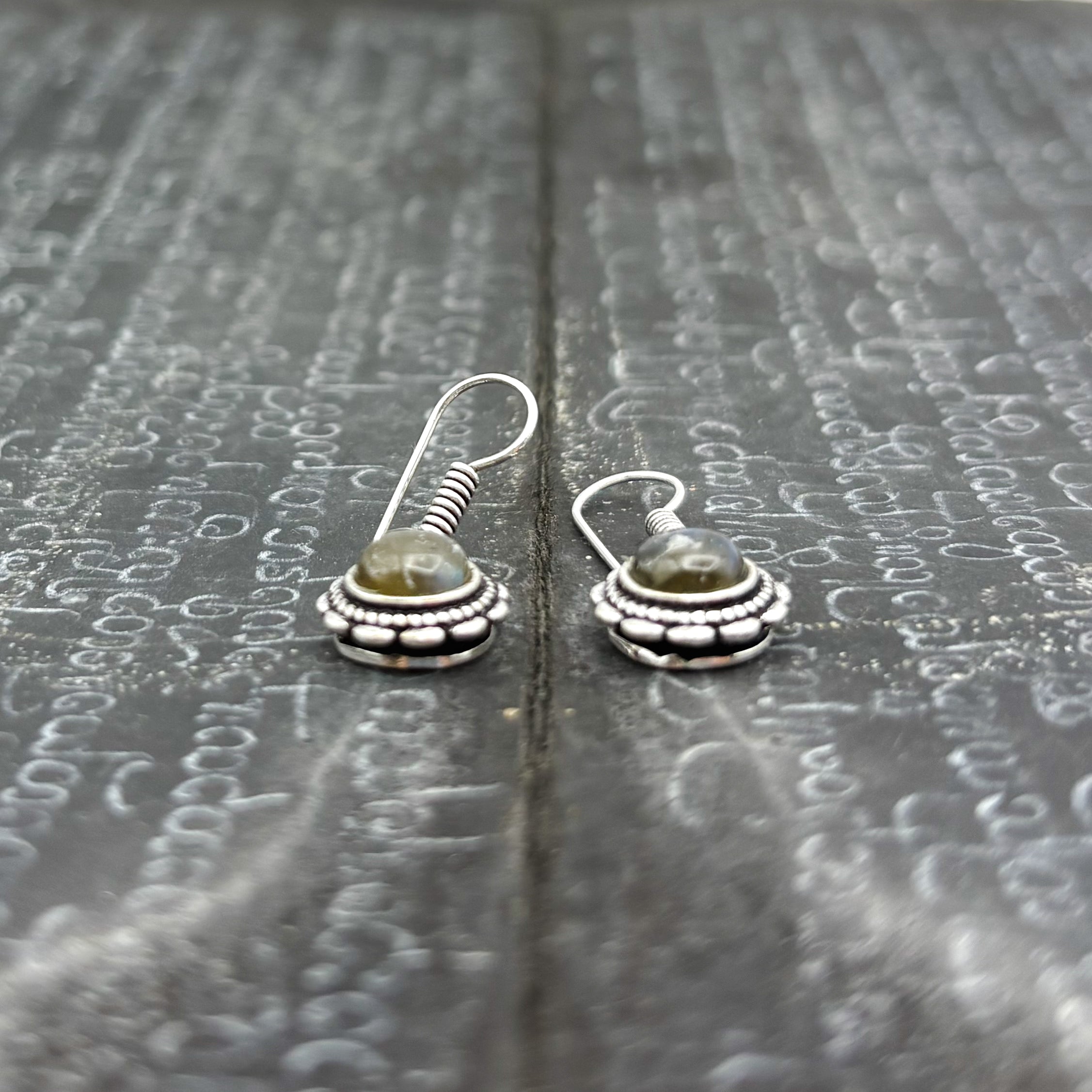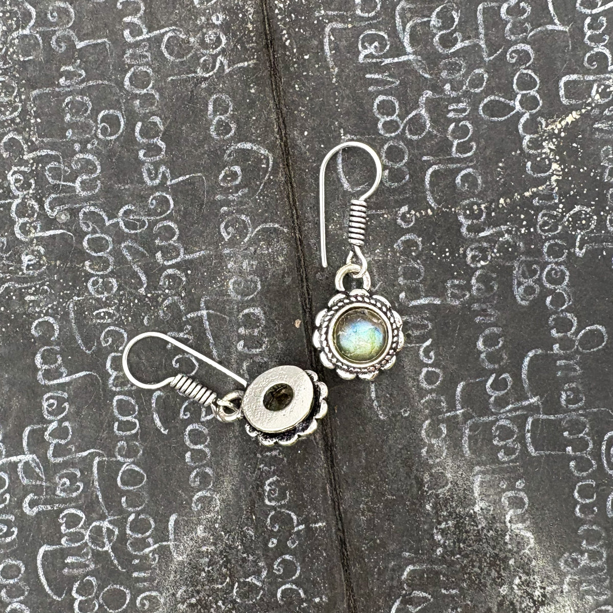 Labradorite Circle Flower White Brass Earrings