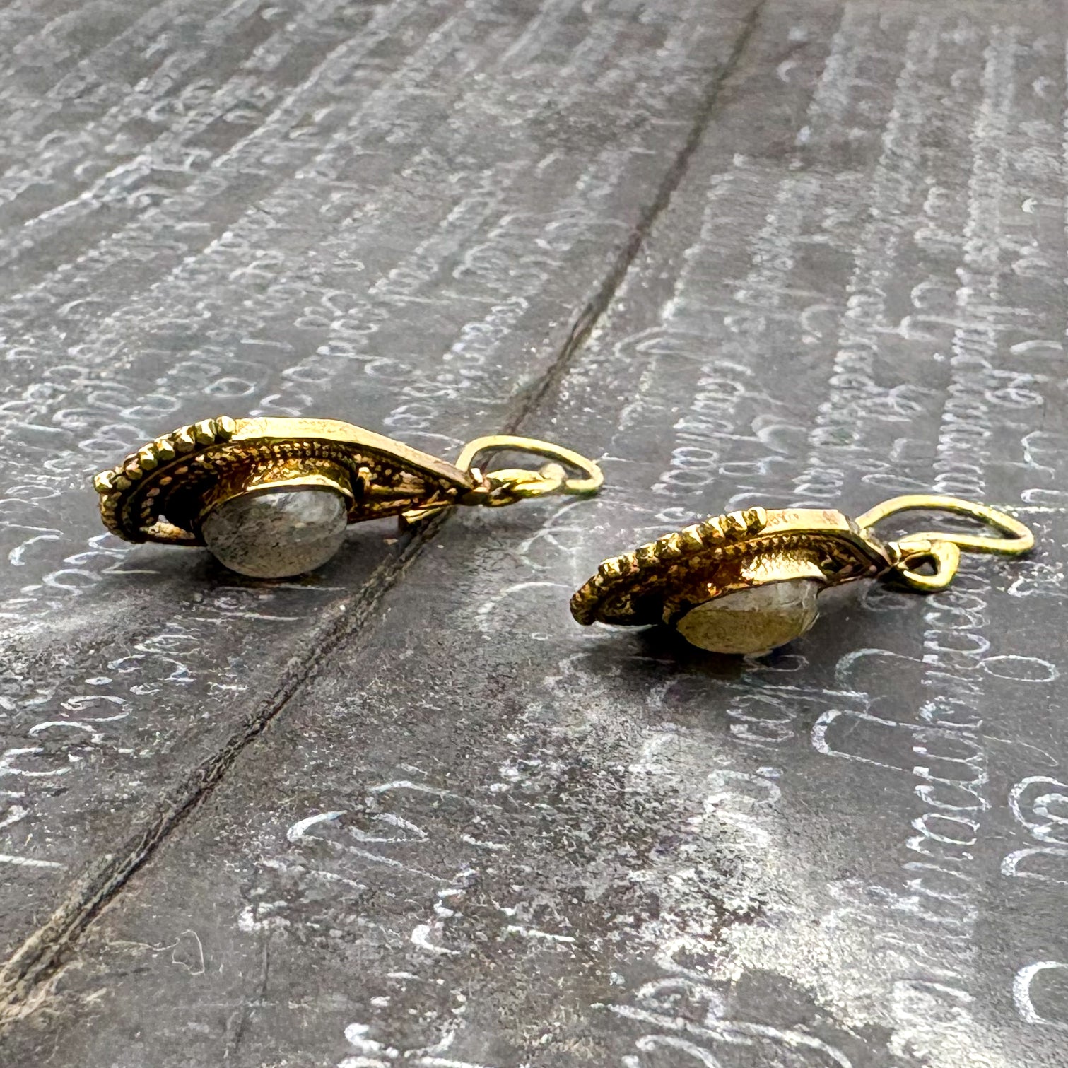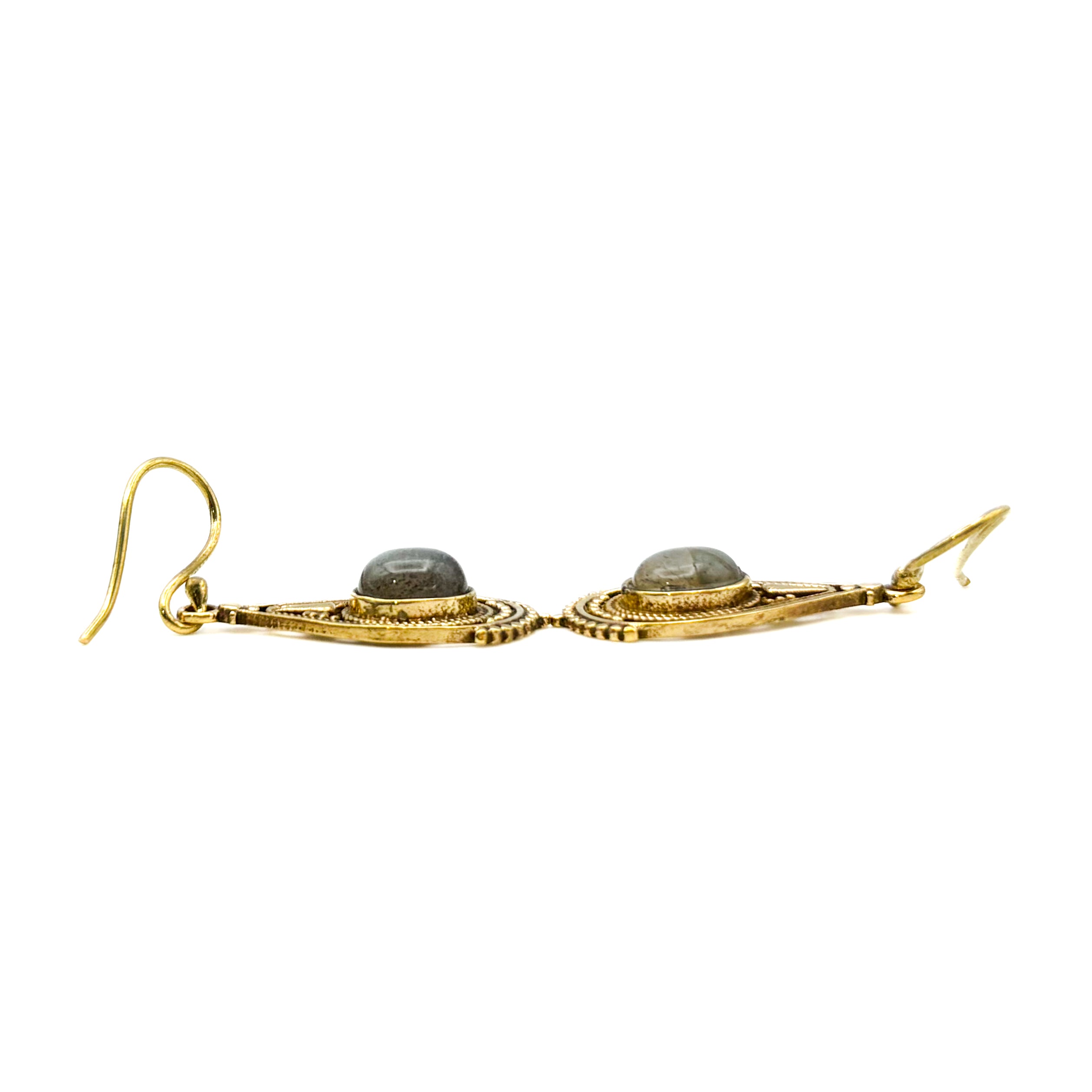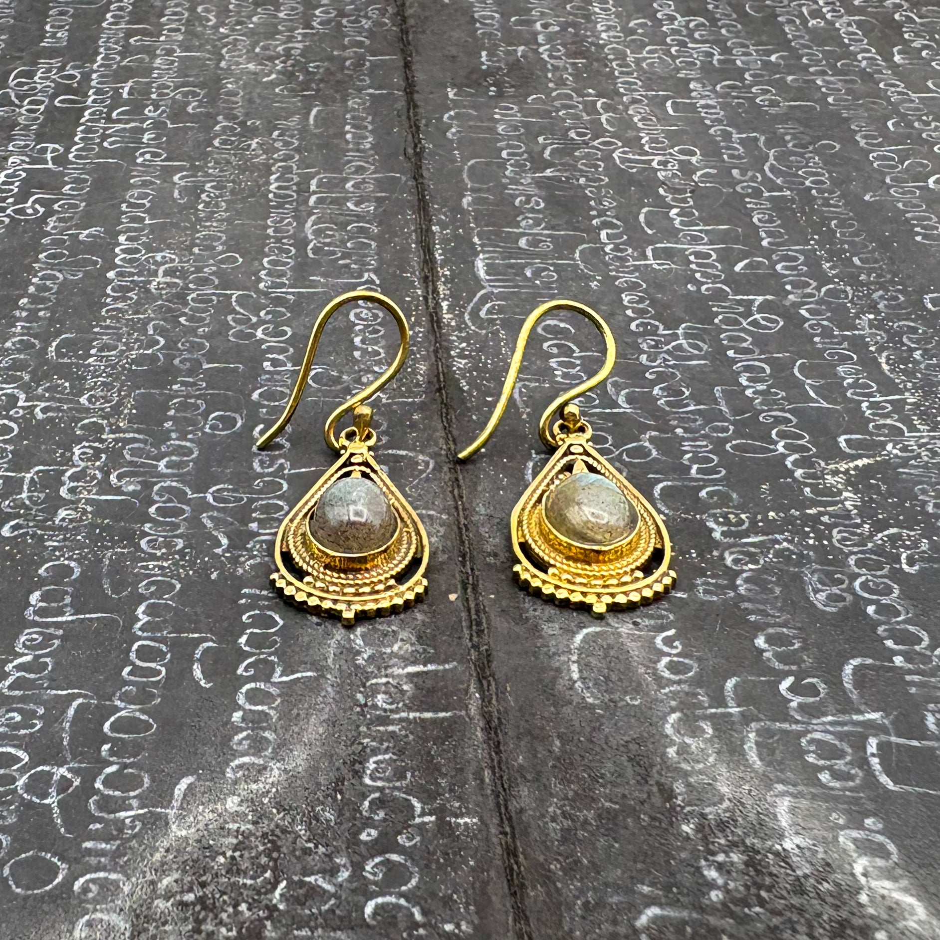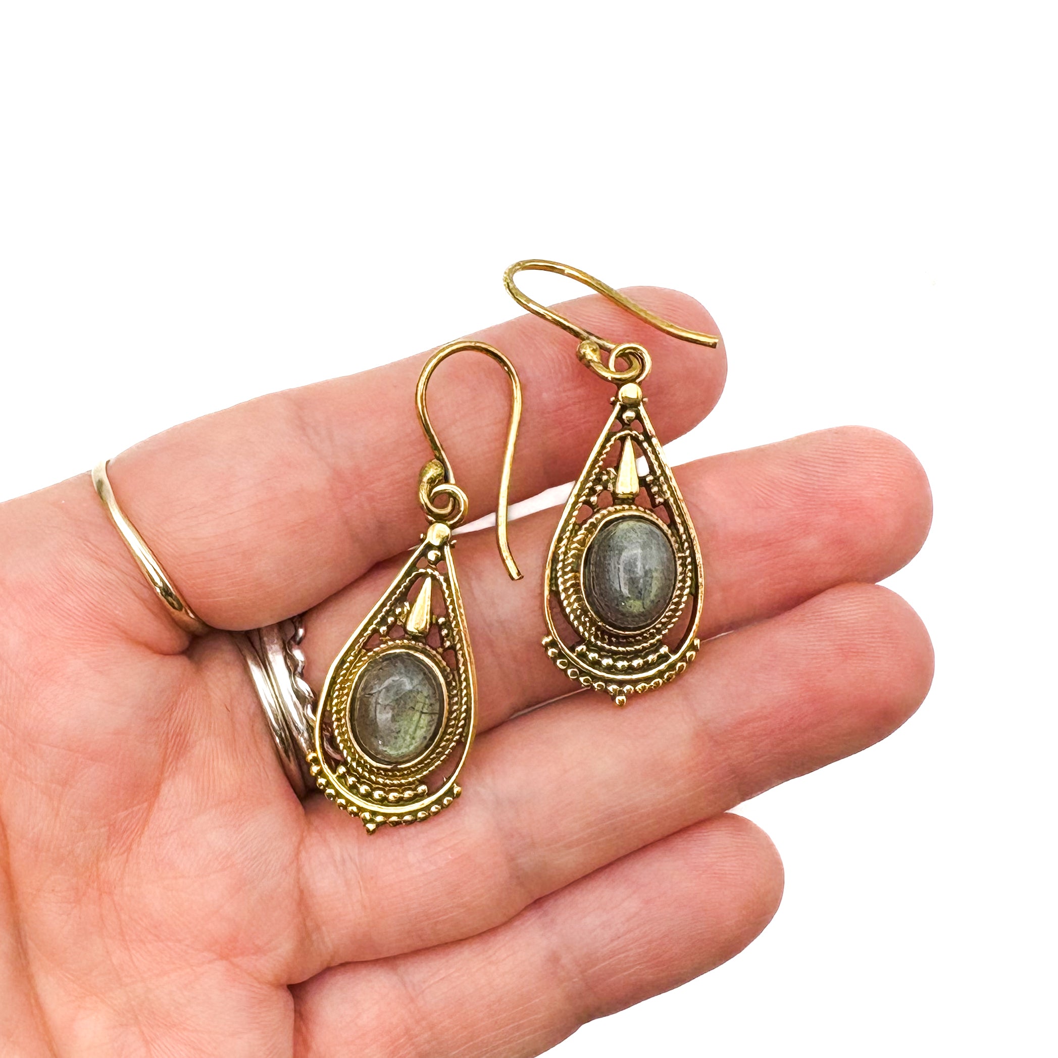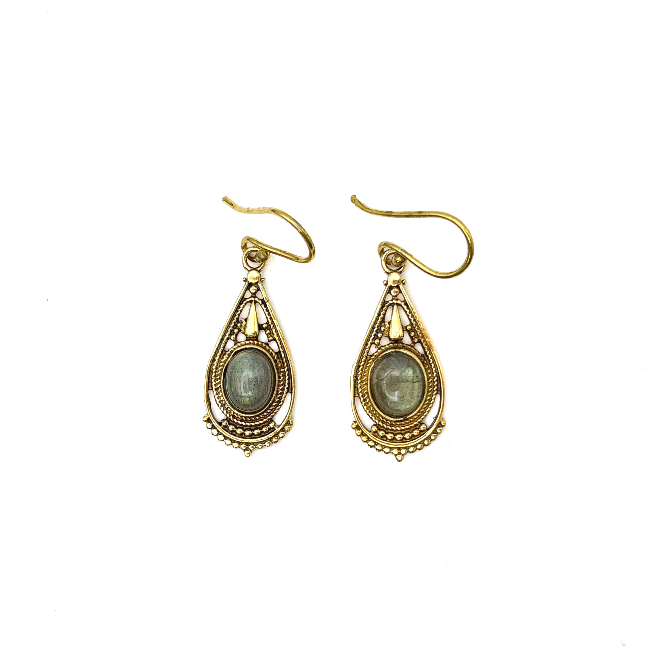 Labradorite Fancy Filagree Teardrop Brass Earrings