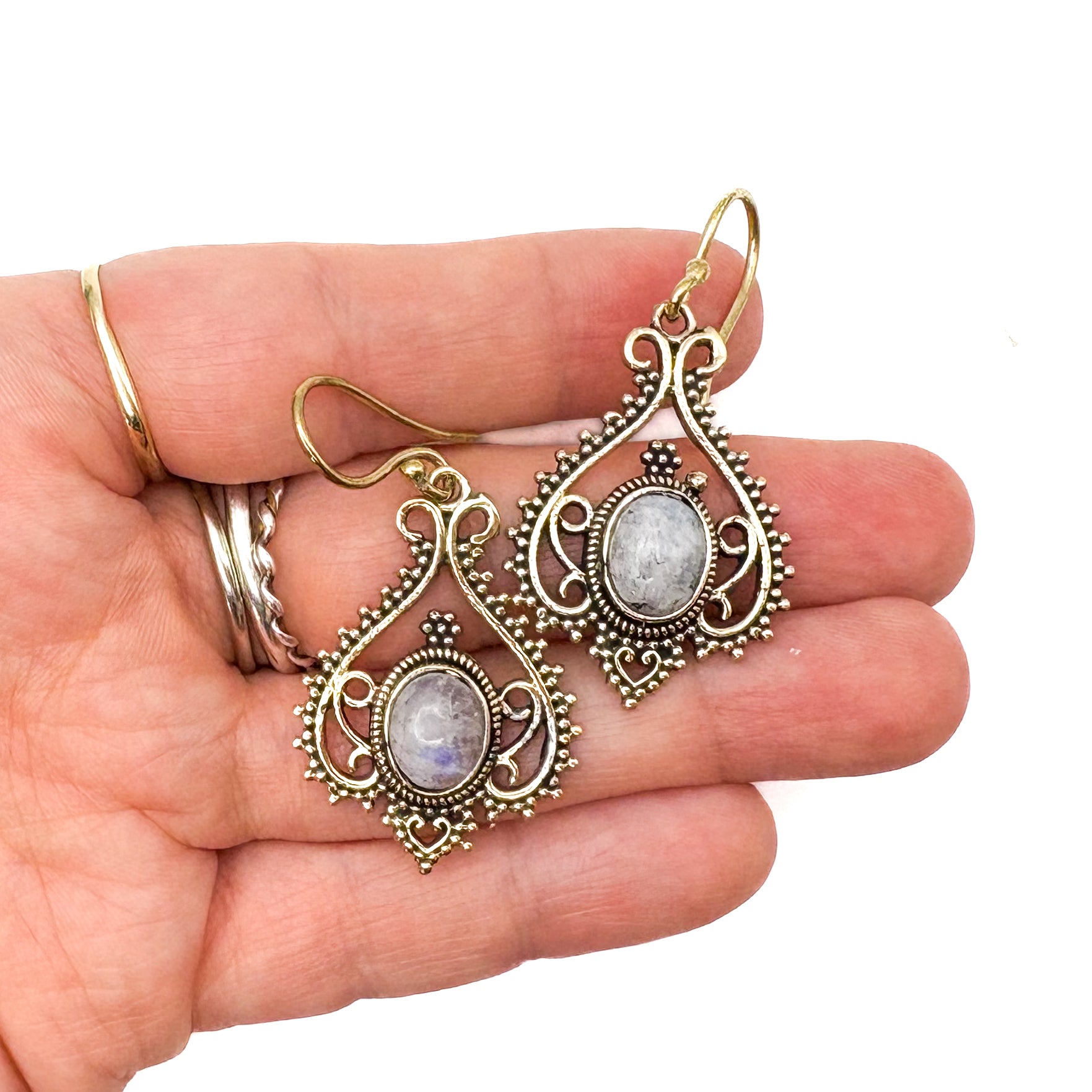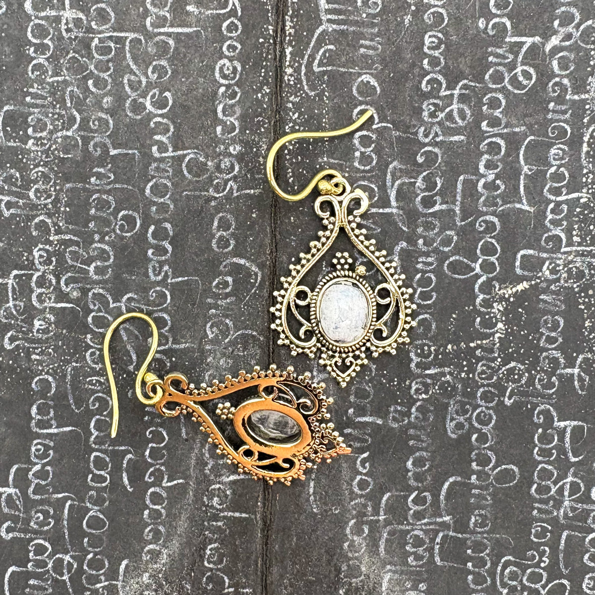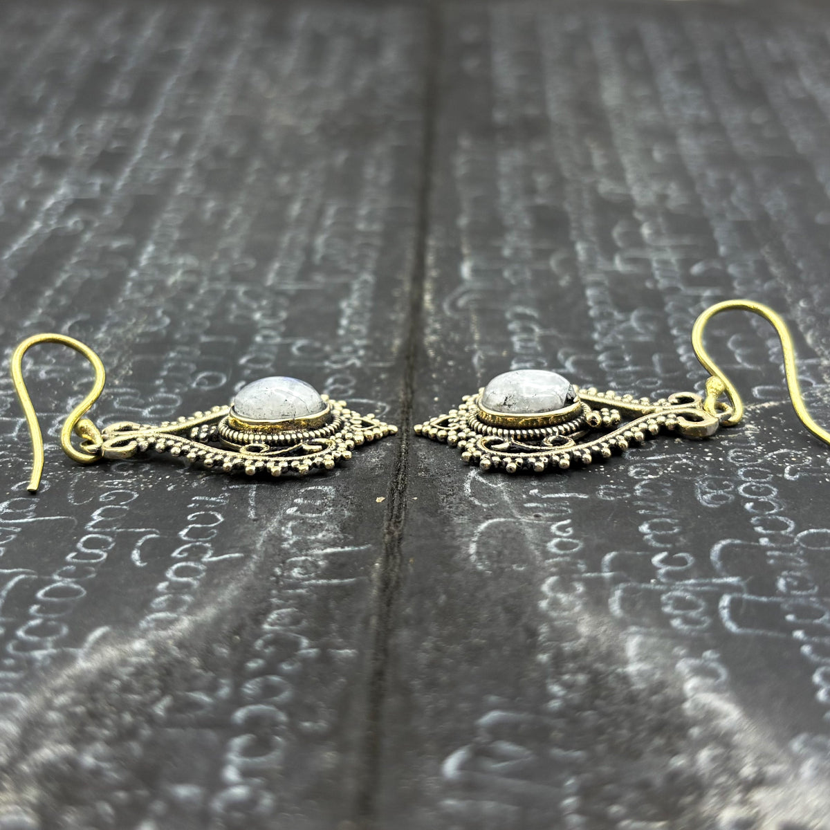 Measurements: stone: 9mm x 7mm ; 22mm x 32mm ; dangles 1.25”