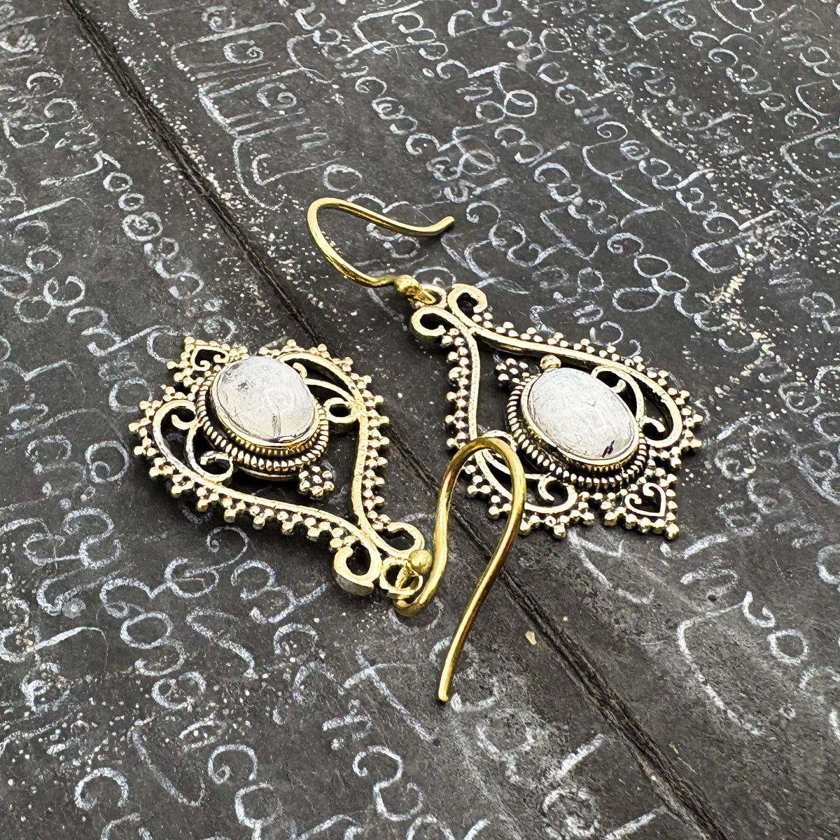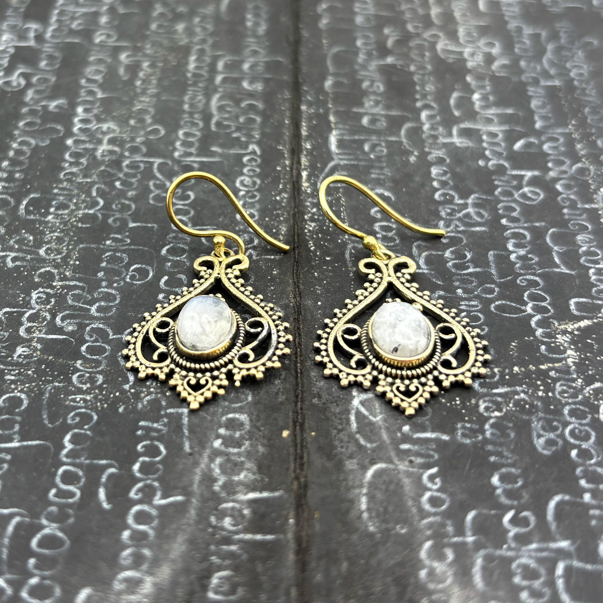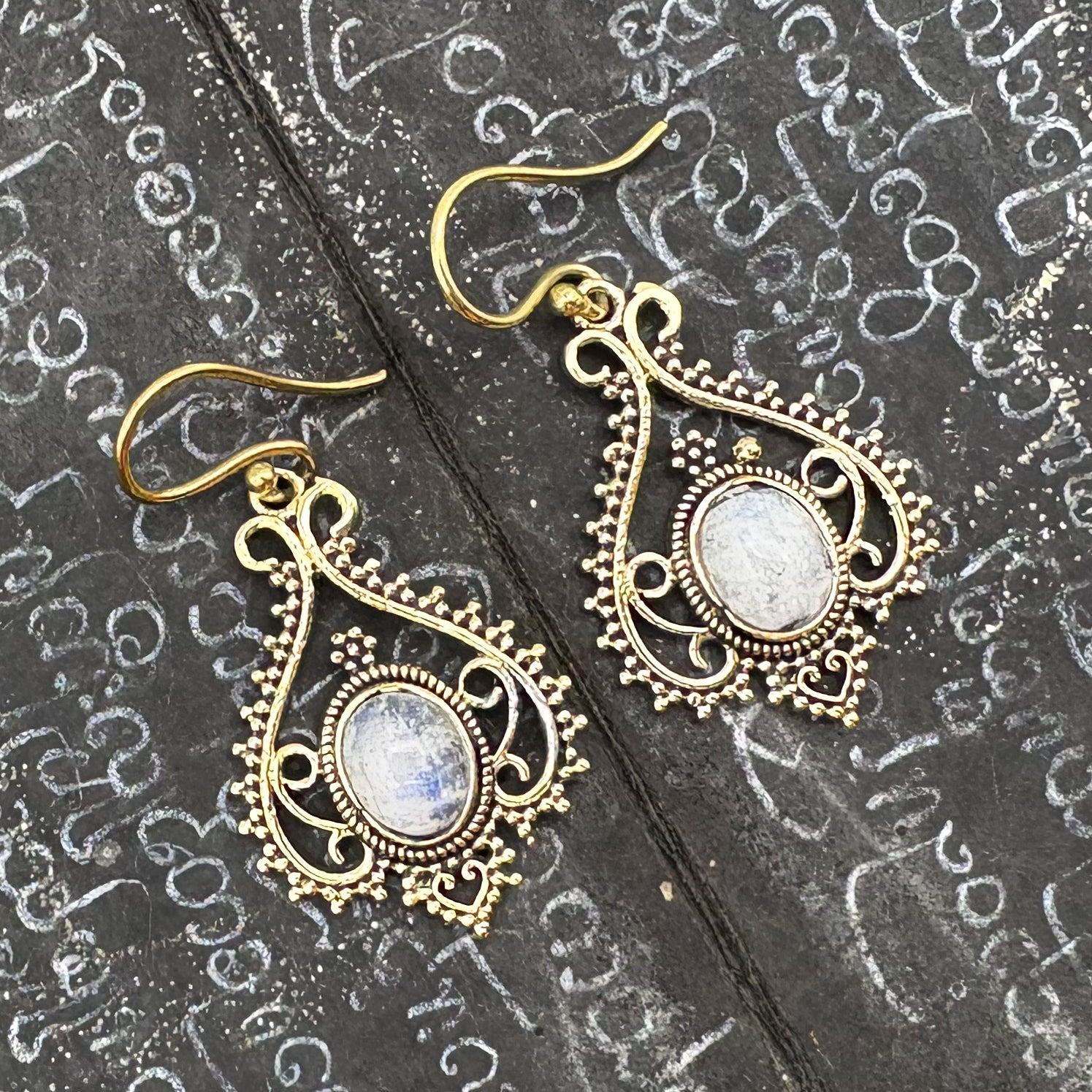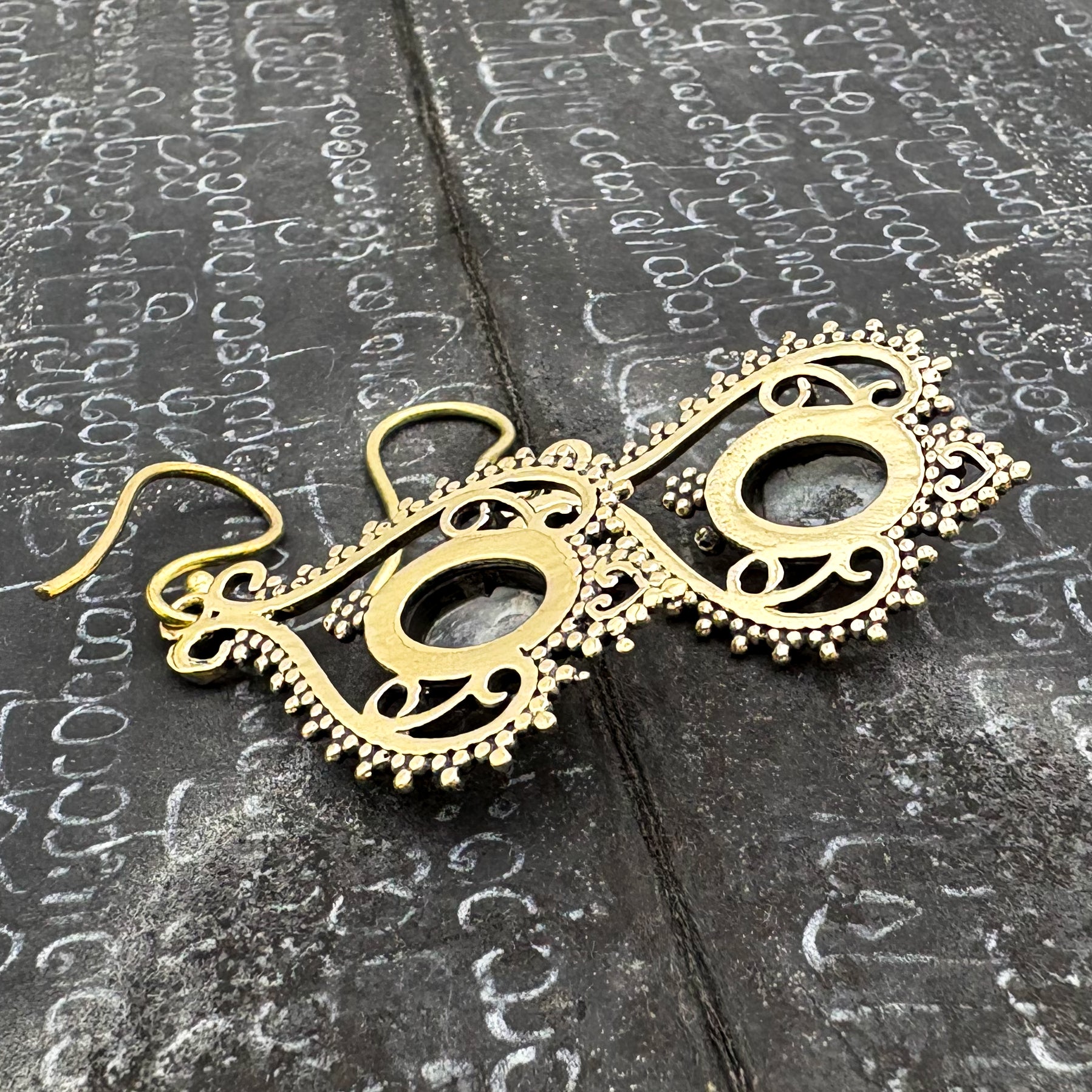 Measurements: stone: 9mm x 7mm ; 22mm x 32mm ; dangles 1.25”