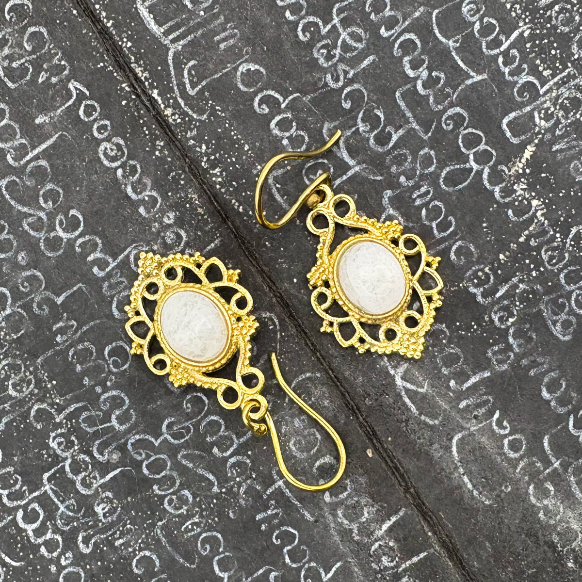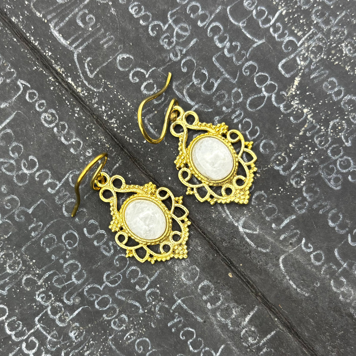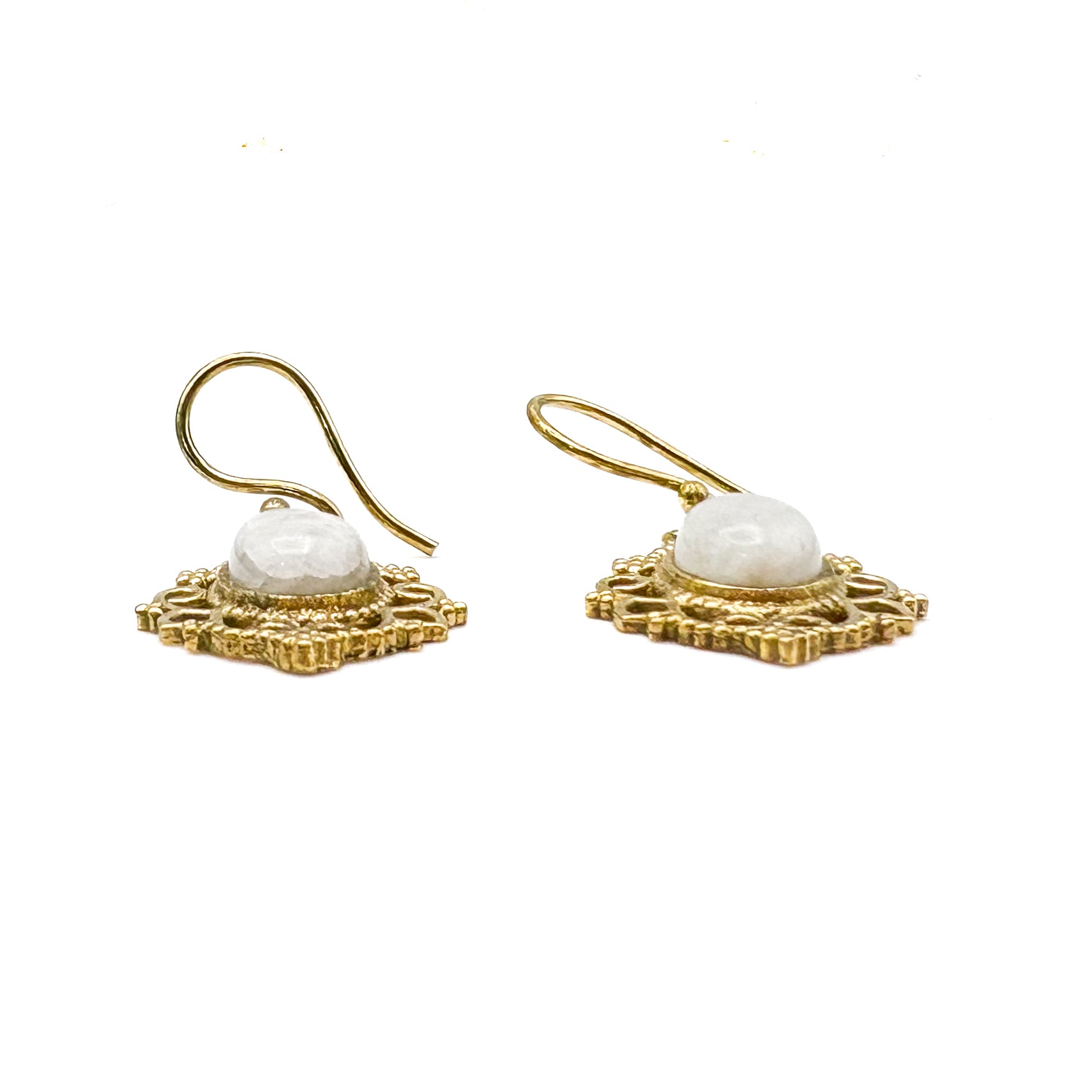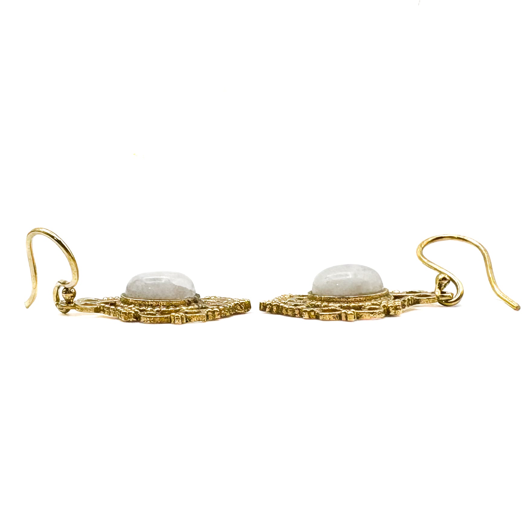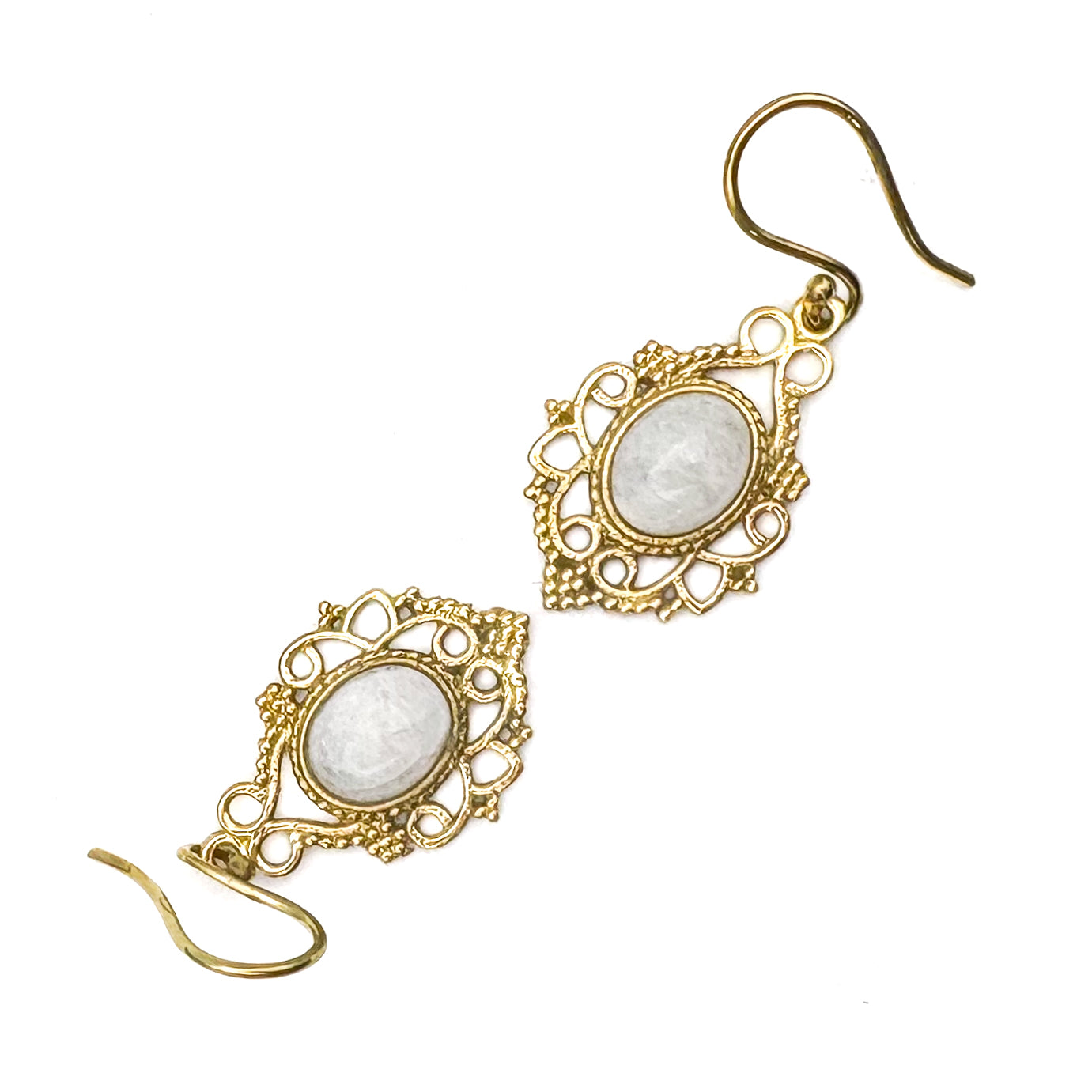 Moonstone Lace-y Swirls Brass Earrings