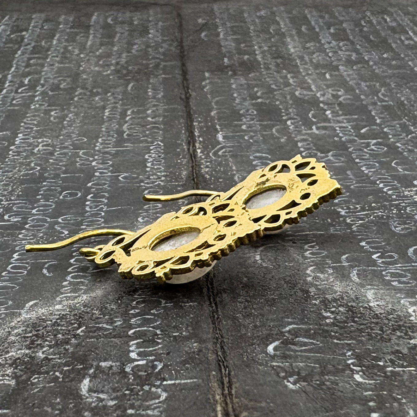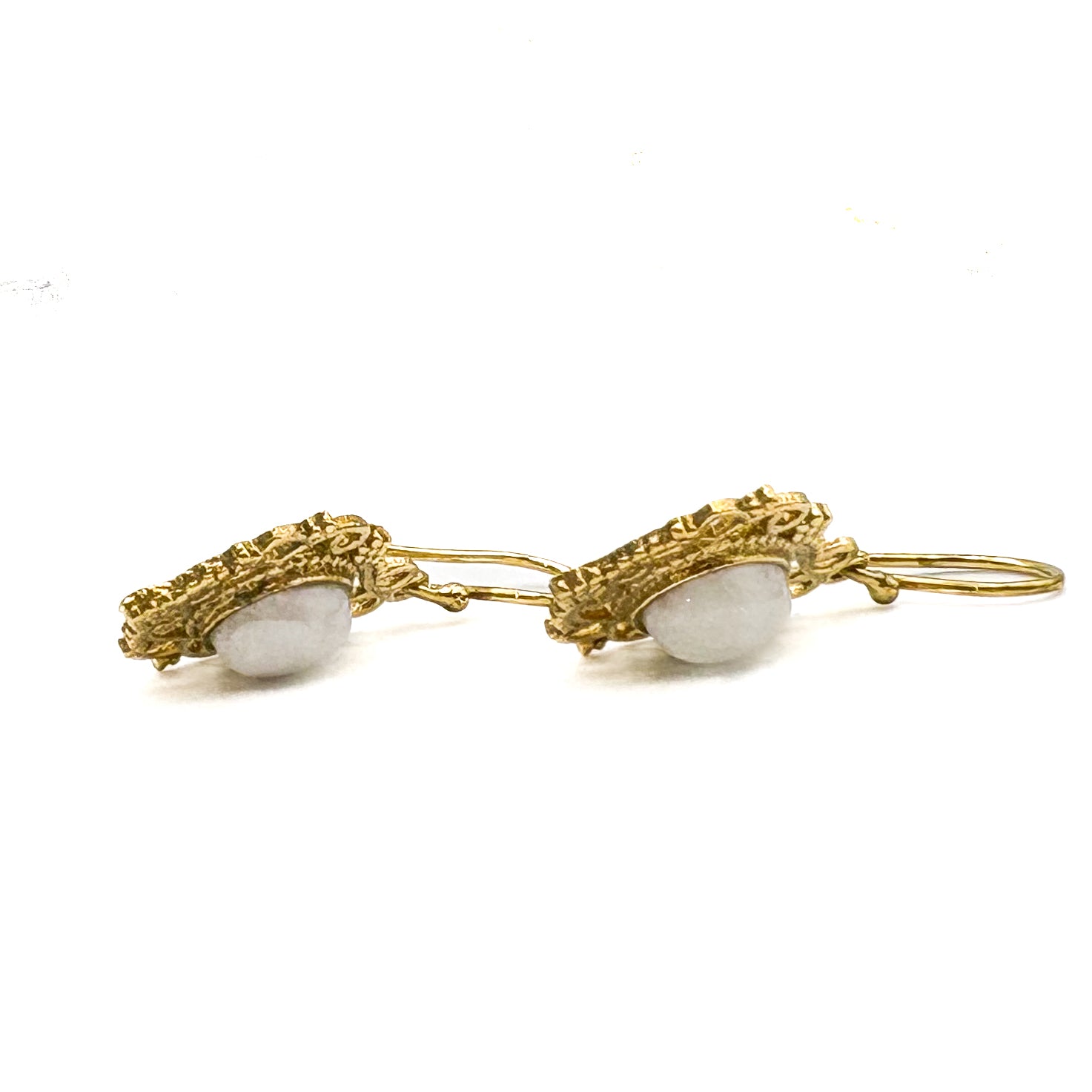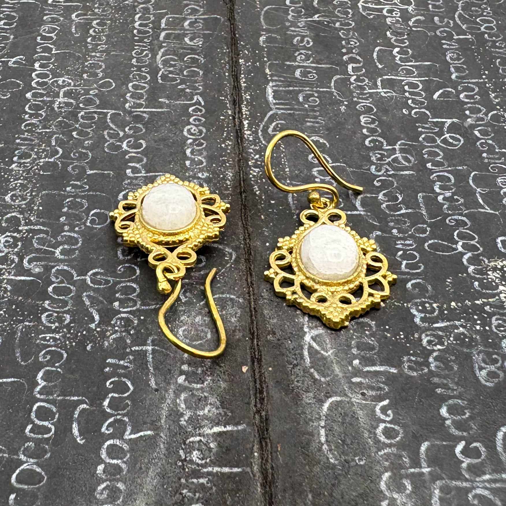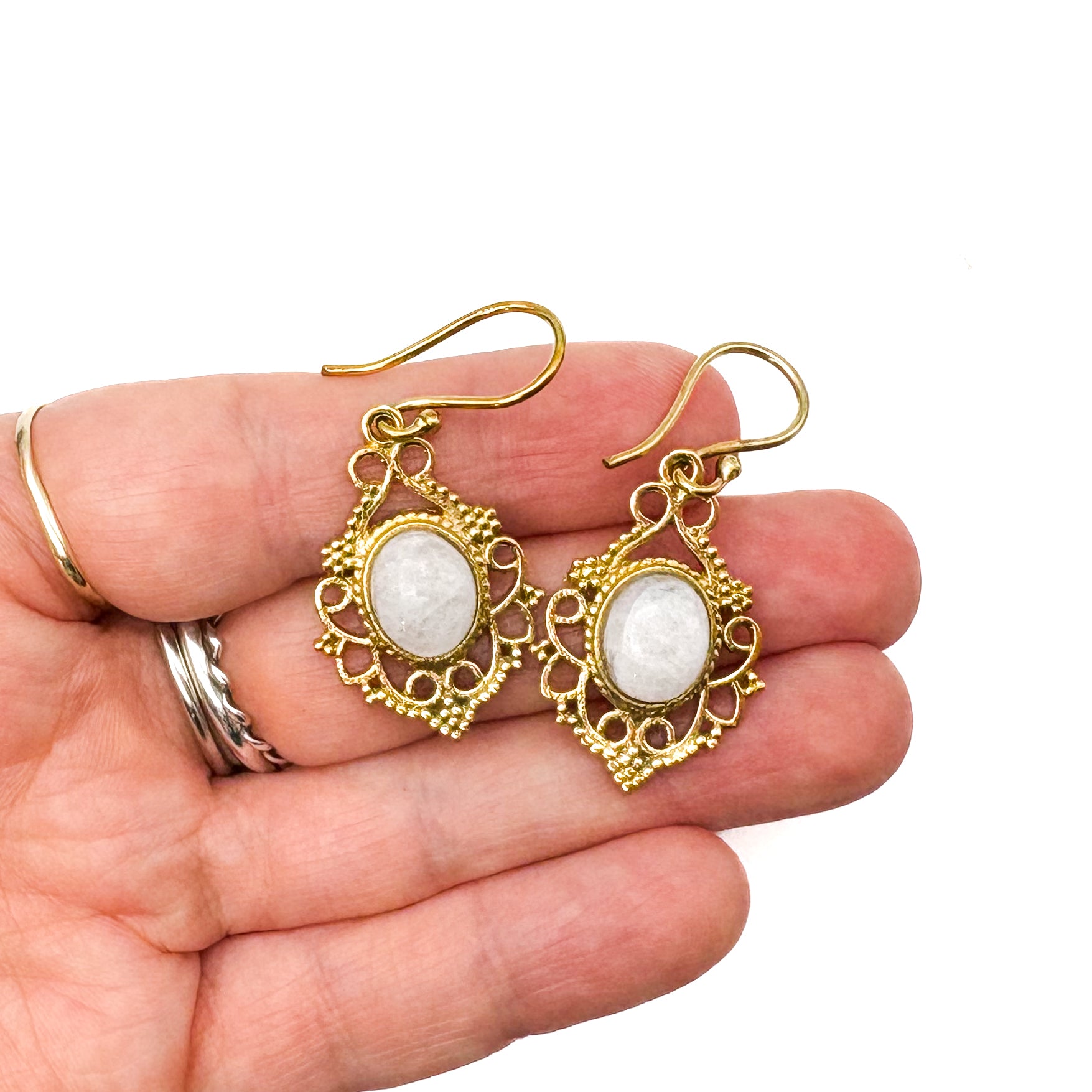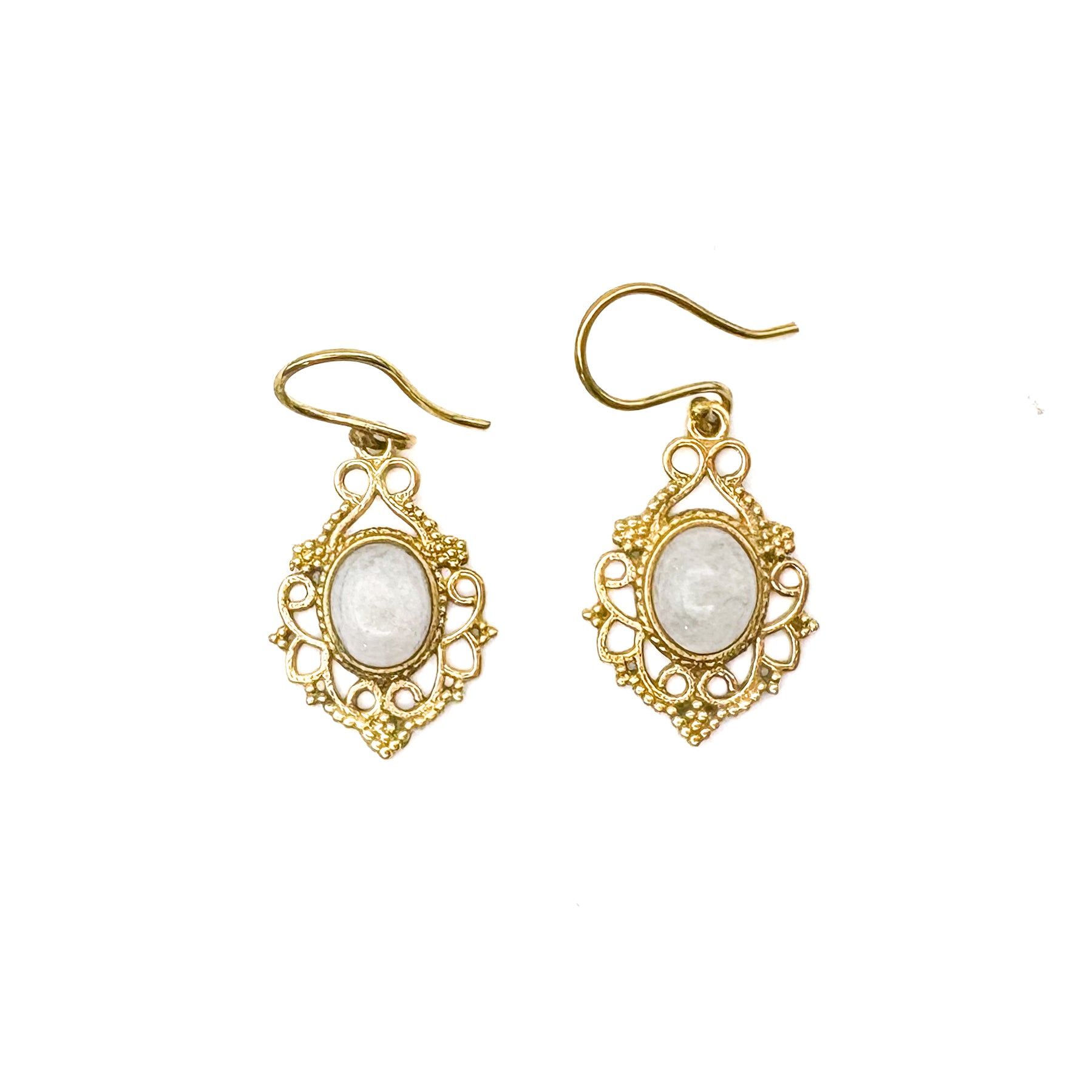 Moonstone Lace-y Swirls Brass Earrings
