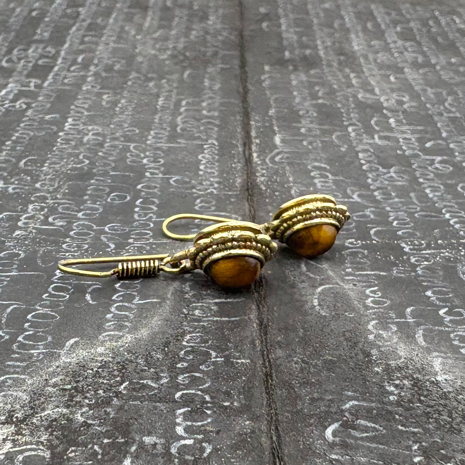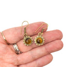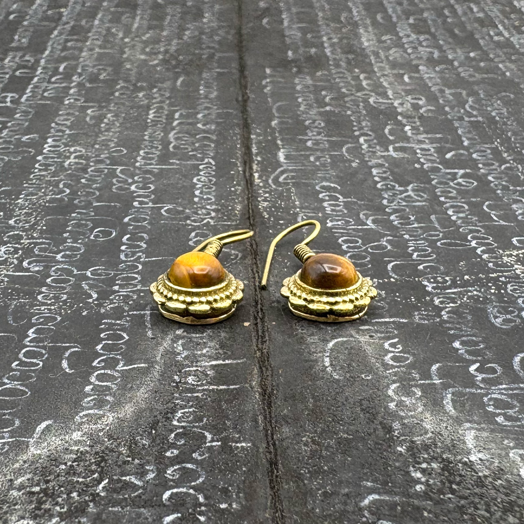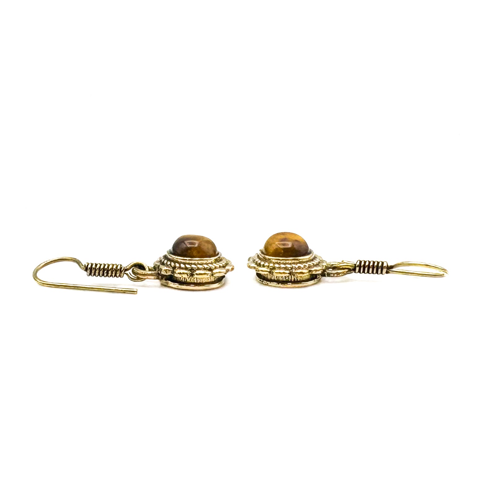 Tiger's Eye Circle Flower Brass Earrings