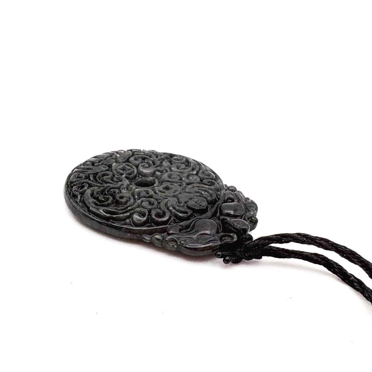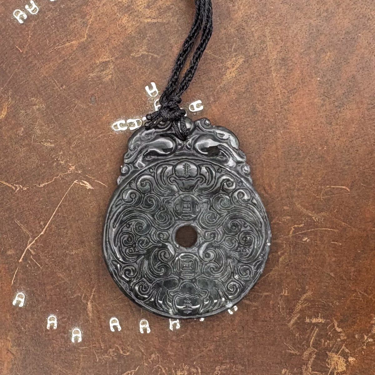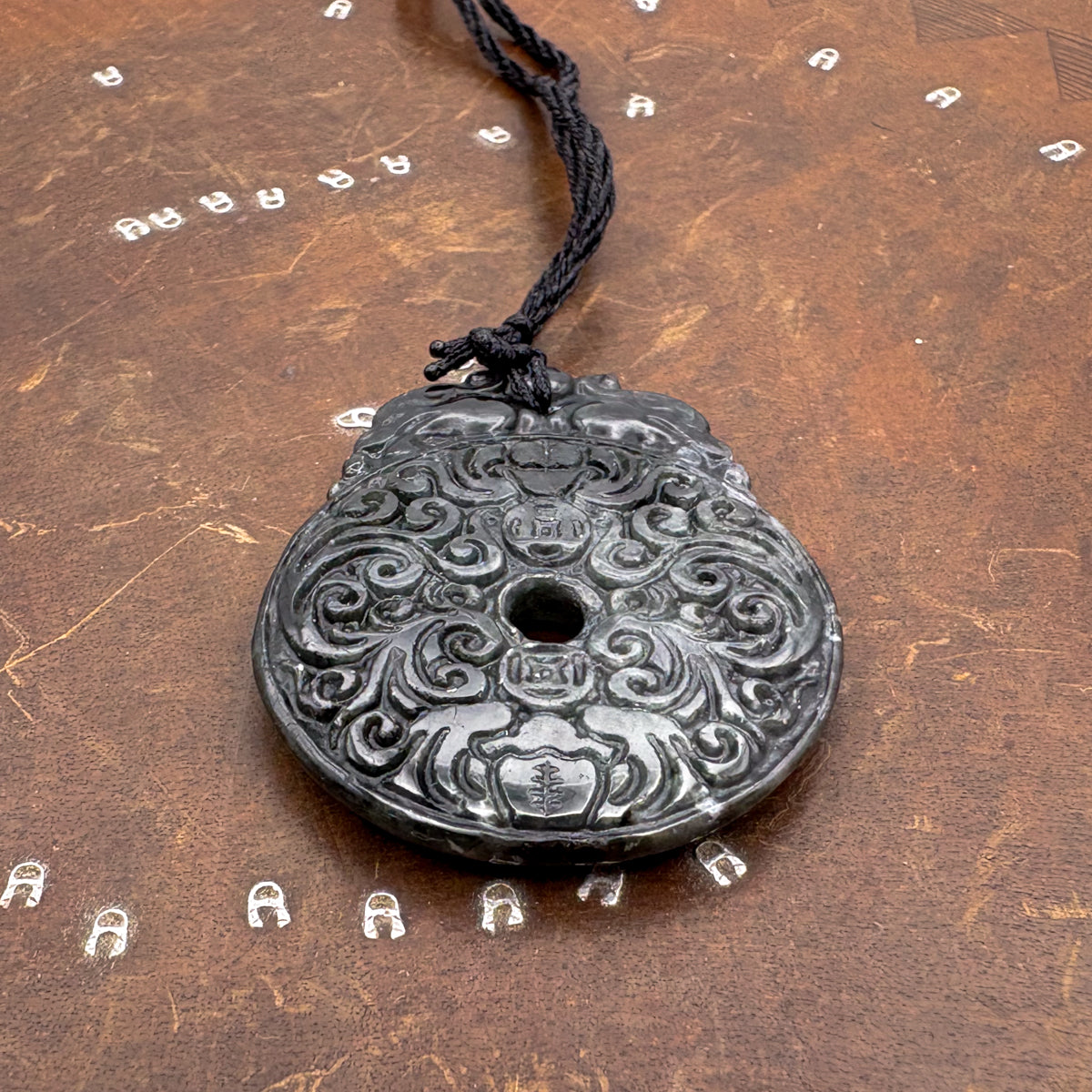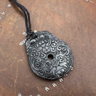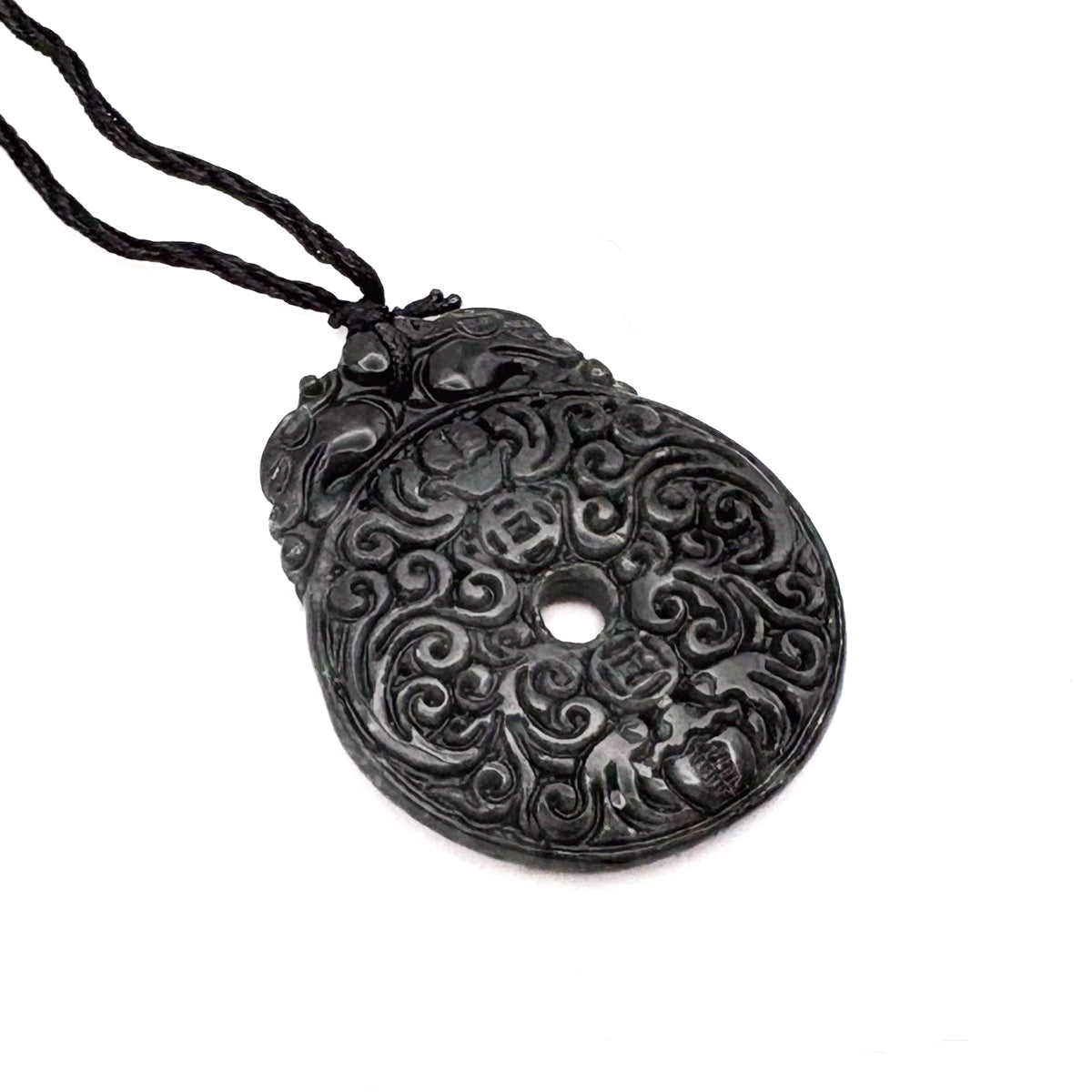 Certified Black Green Natural Type A Jade Jadeite Carved Bat Coin Moire Pendant