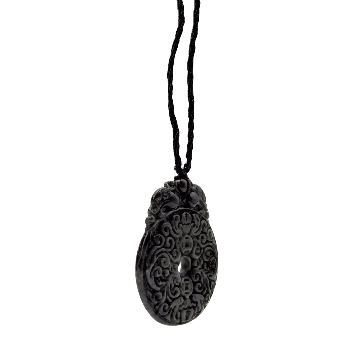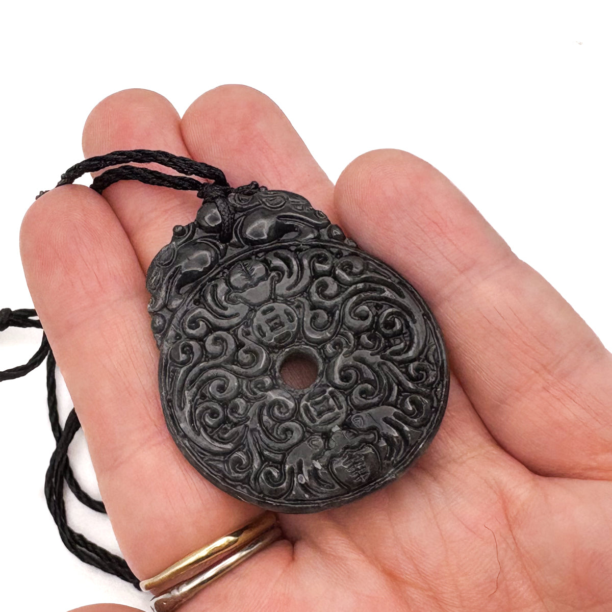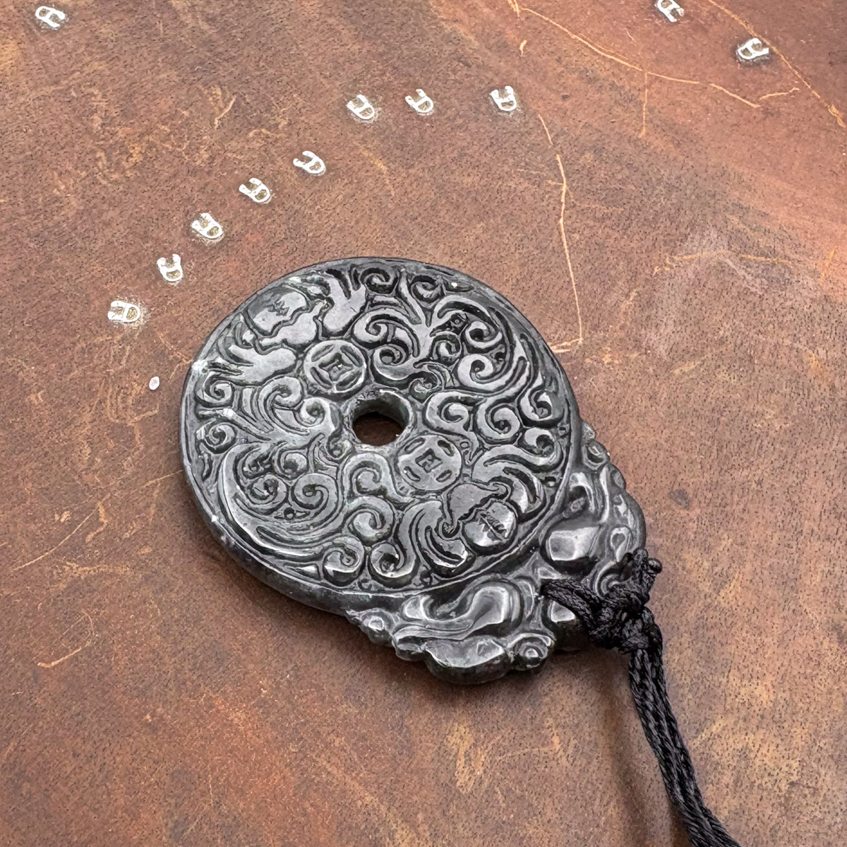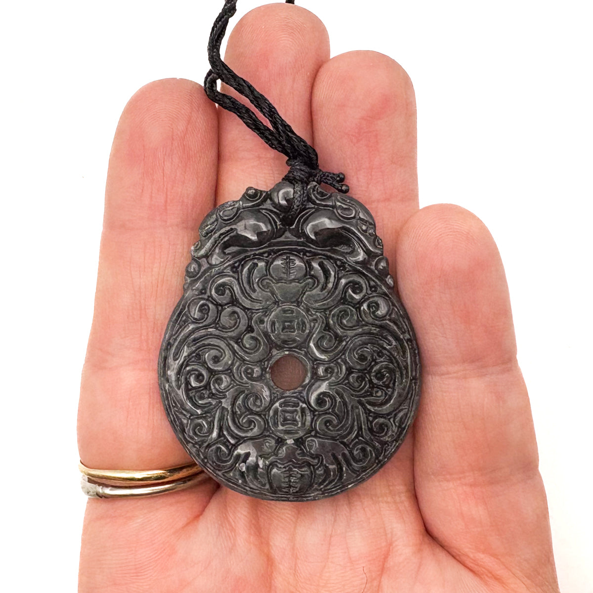 Certified Black Green Natural Type A Jade Jadeite Carved Bat Coin Moire Pendant