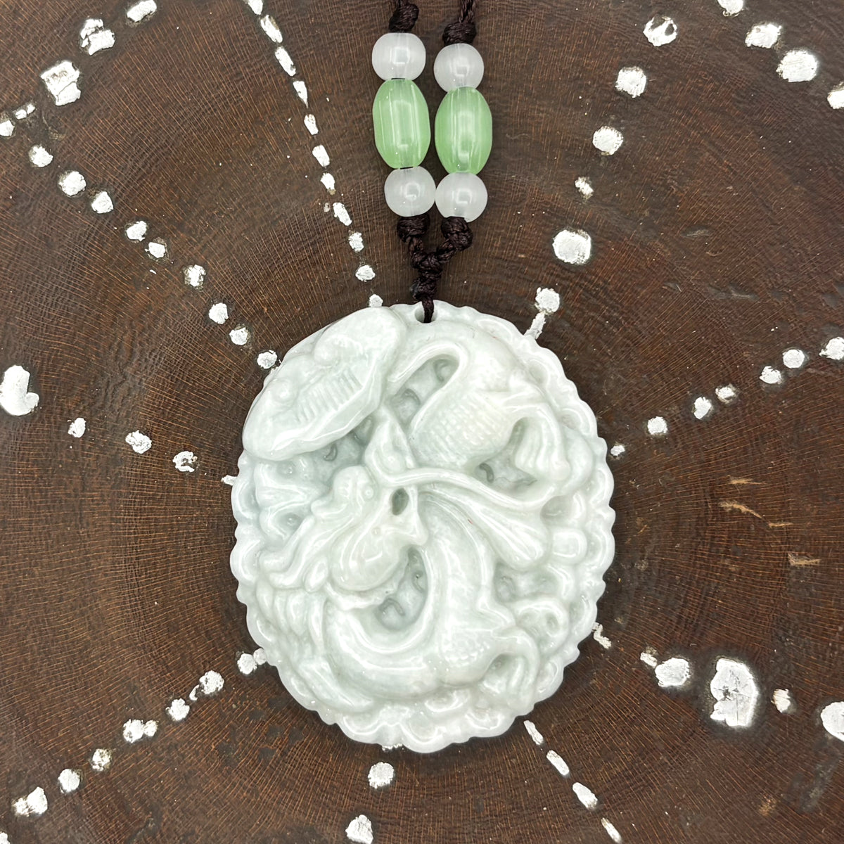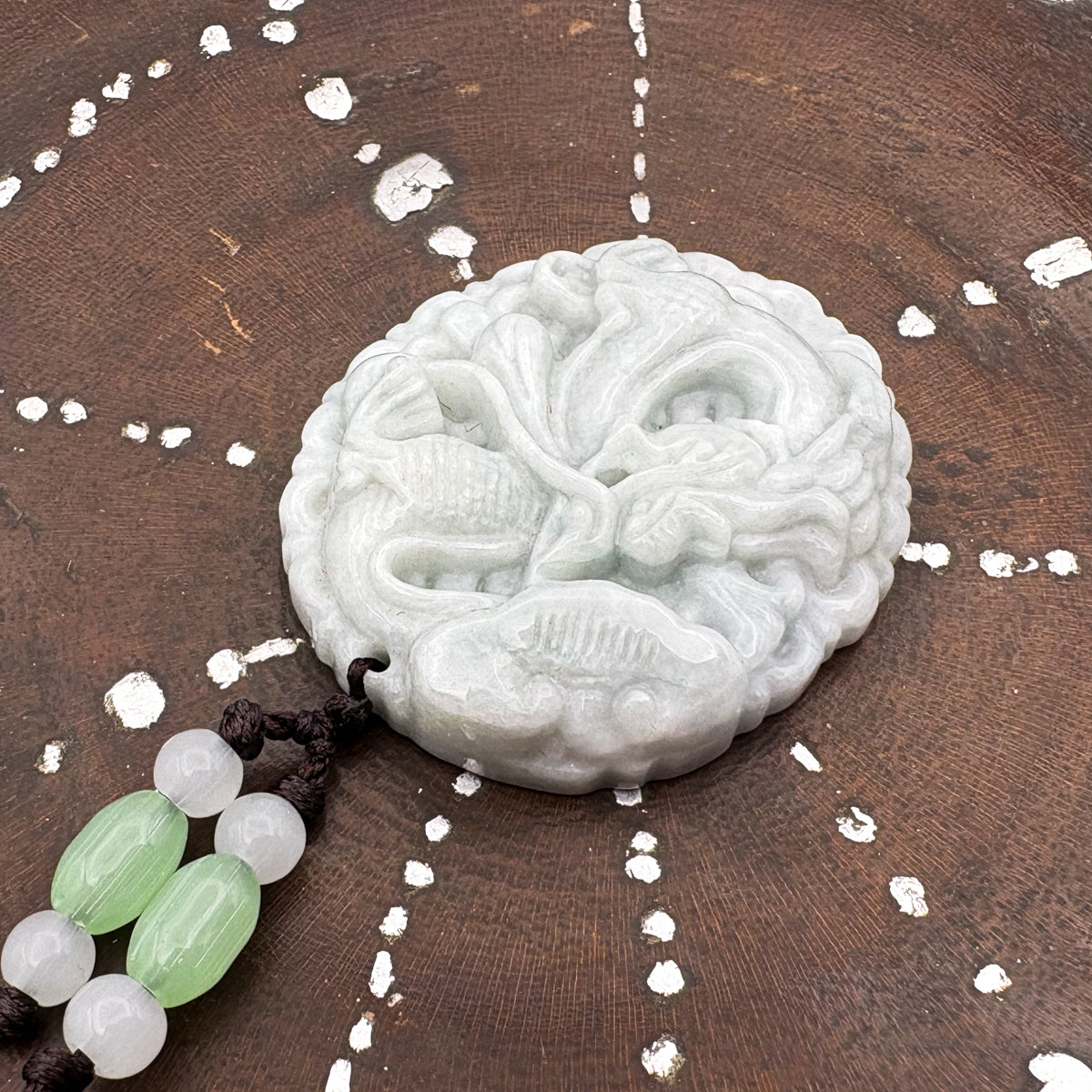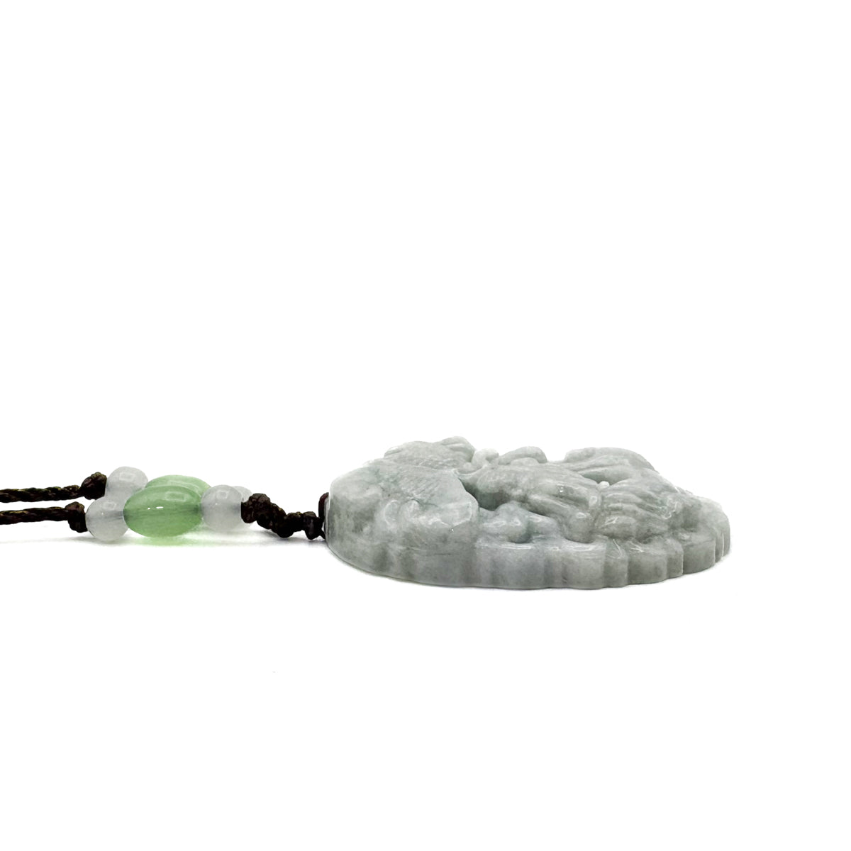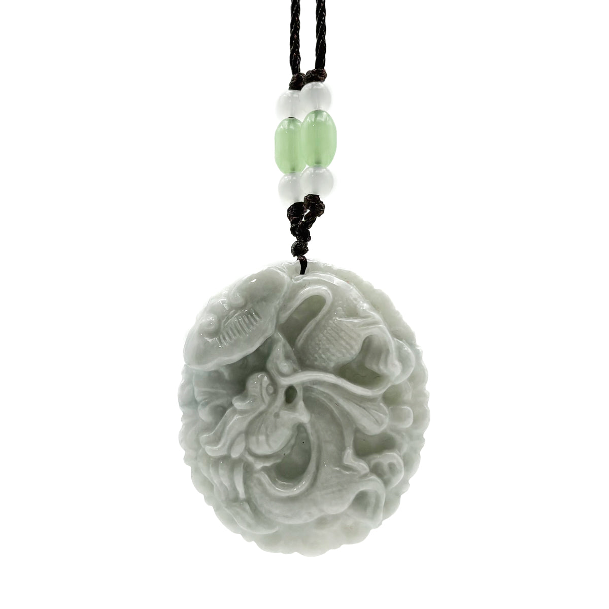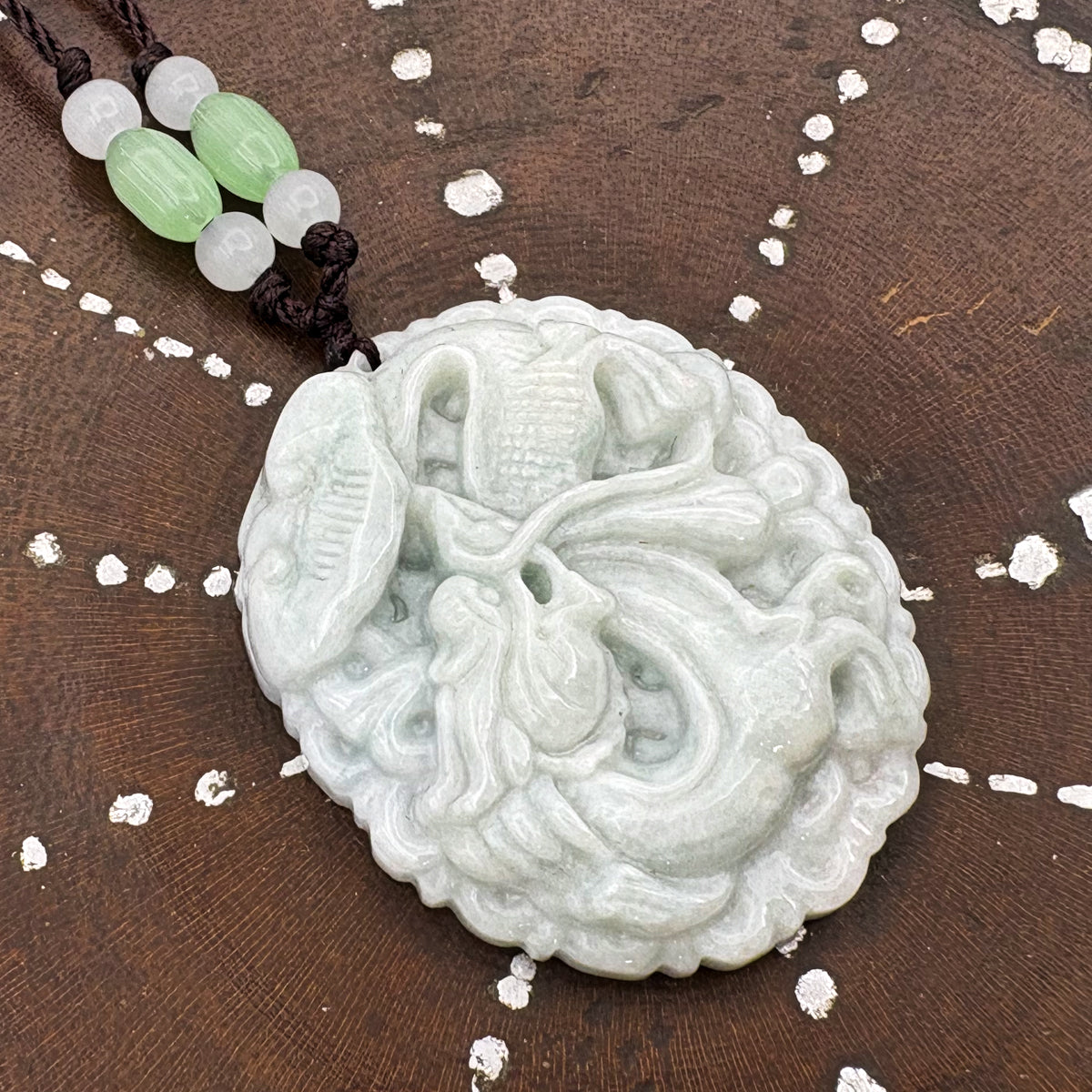 Certified Green Natural Type A Jade Jadeite Carved Dragon Ruyi Pendant