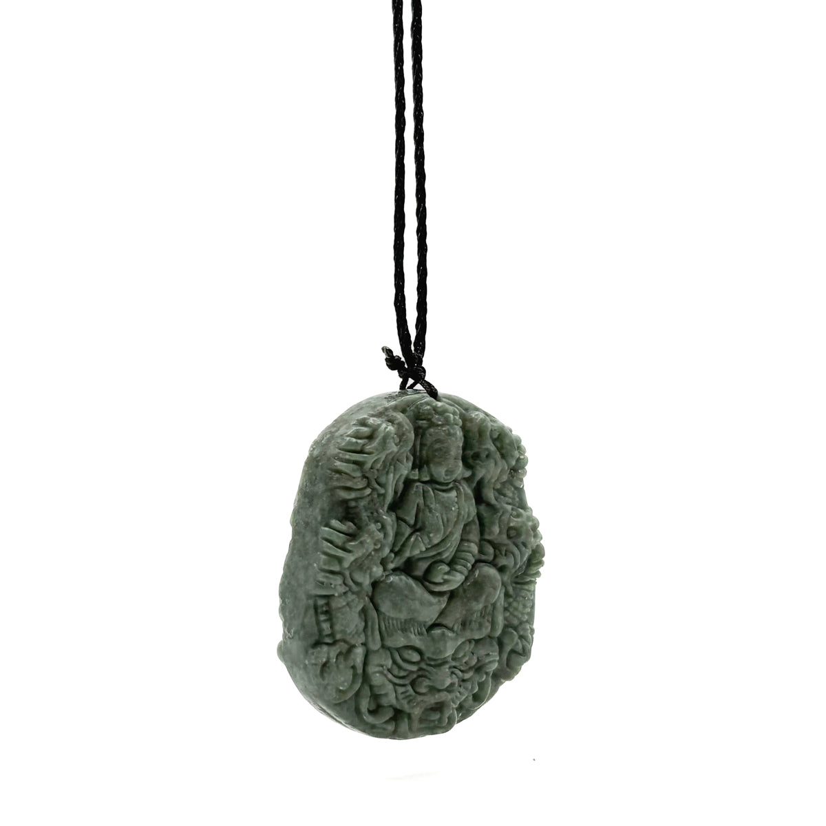 Certified Green Natural Type A Jadeite Guanyin Kwan Yin God Nine Dragons Pendant