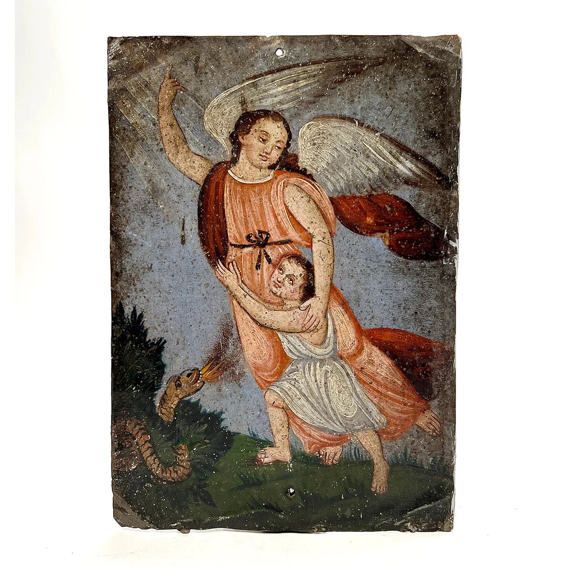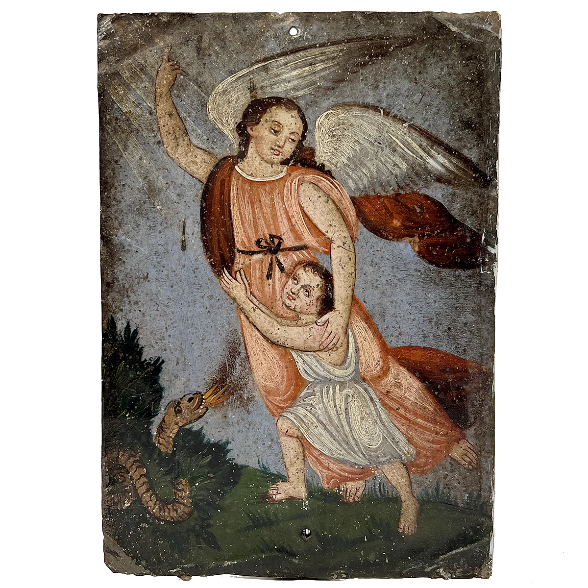 19th Century Mexican Guardian Angel Retablo by Concepción Ávila