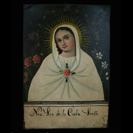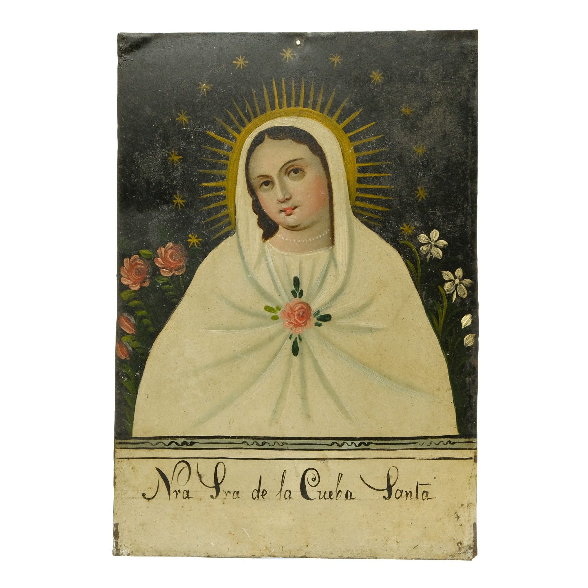 • Late 19th Century Original Retablo Oil Painting on Tin created in Mexico.