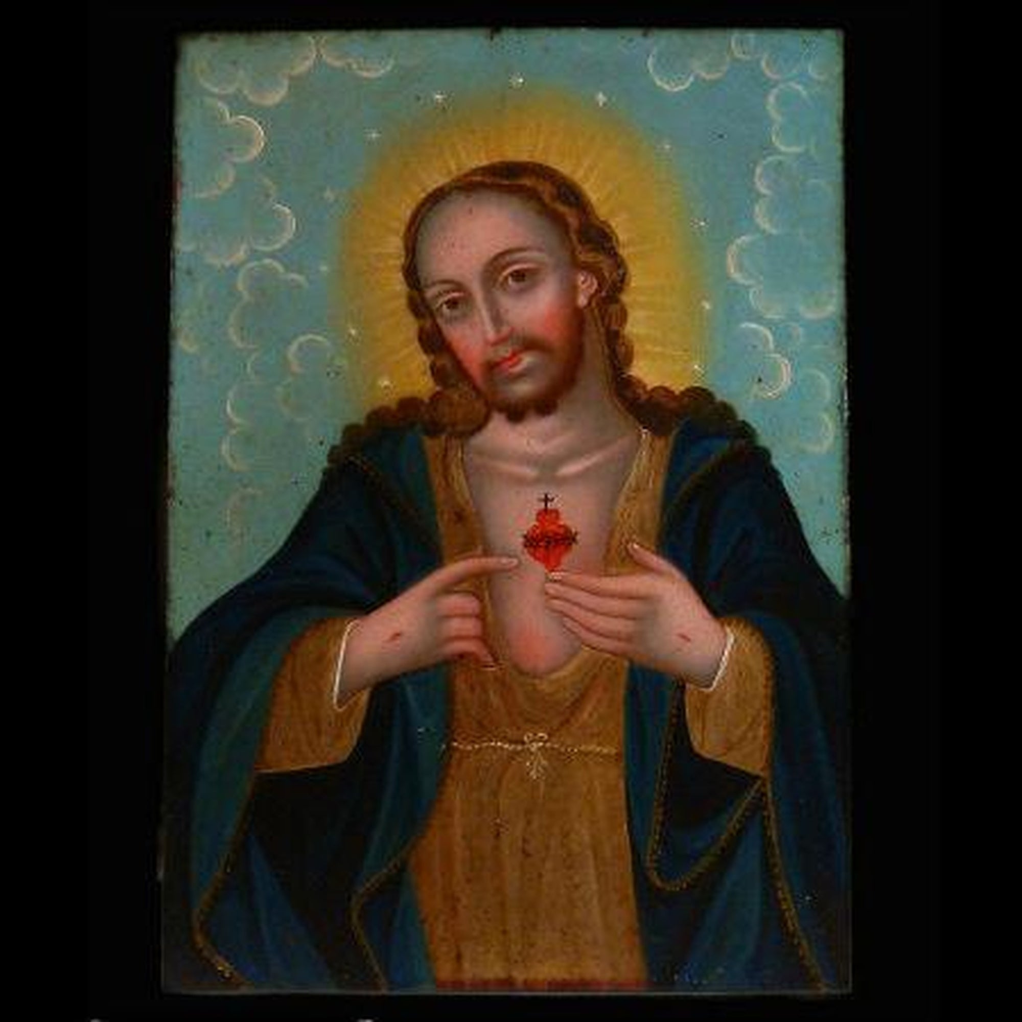 Late 19th Century Mexican Sagrada Corazon de Jesus / The Sacred Heart of Jesus Retablo