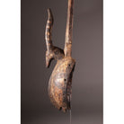 Both of these masks by Mossi artists portray a being that combines human and animal characteristics. The tall, plank-like mask suggests a human-antelope hybrid, while the horizontal mask has both antelope and birdlike features.
