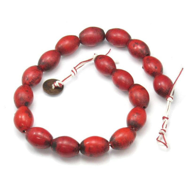 Early 20th C. Chinese Hand Wound Glass Trade Bead Necklace Red Coral Color