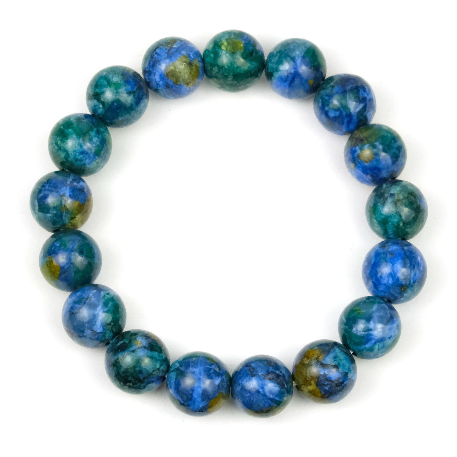 Azurite is found in Australia, Chile, France, Mexico, Morocco, Nambia, the southwestern USA, and Zaire. For thousands of years this stone has been used in jewelry and ornamental objects. During the Middle Ages and Renaissance it was ground into pigment for use in paint and eye shadow Its mixture of blue and green resembles the planet earth. In contemporary stone lore, Azurite is thought to enhance creativity, reduce anger and stimulate the pursuit of the heavenly self and psychic awareness.