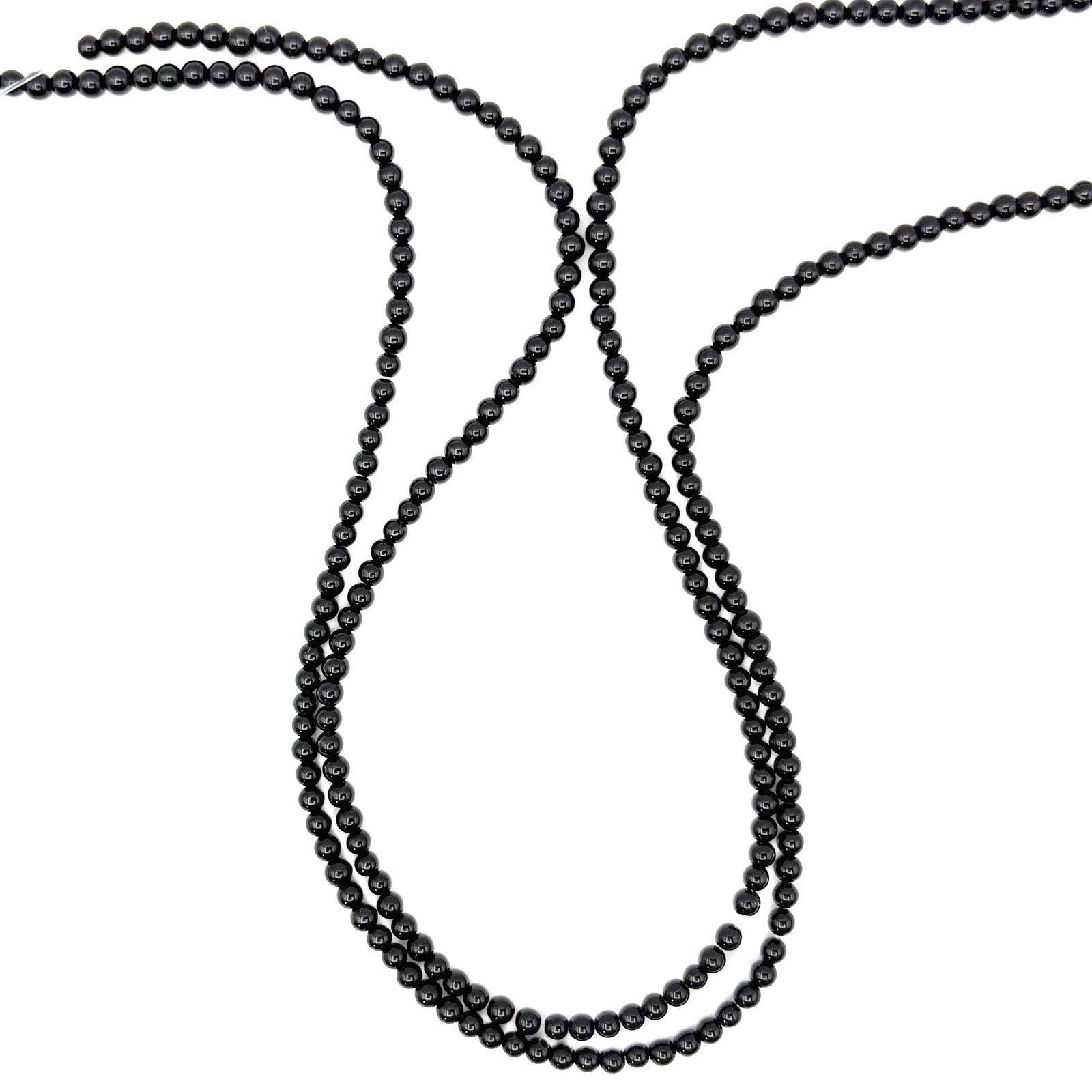Black Tourmaline 3.5mm Smooth Rounds Bead Strand