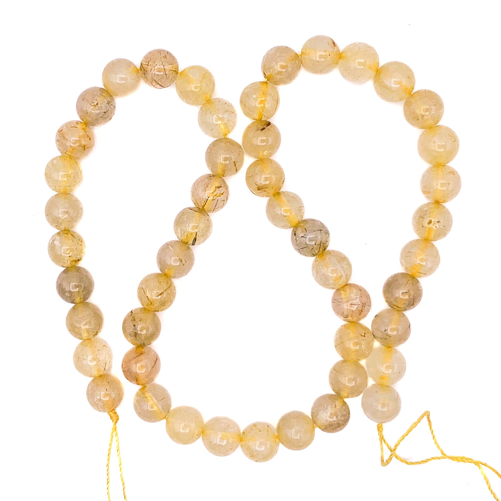 Quartz Rutilated 8.5mm Smooth Rounds Bead Strand