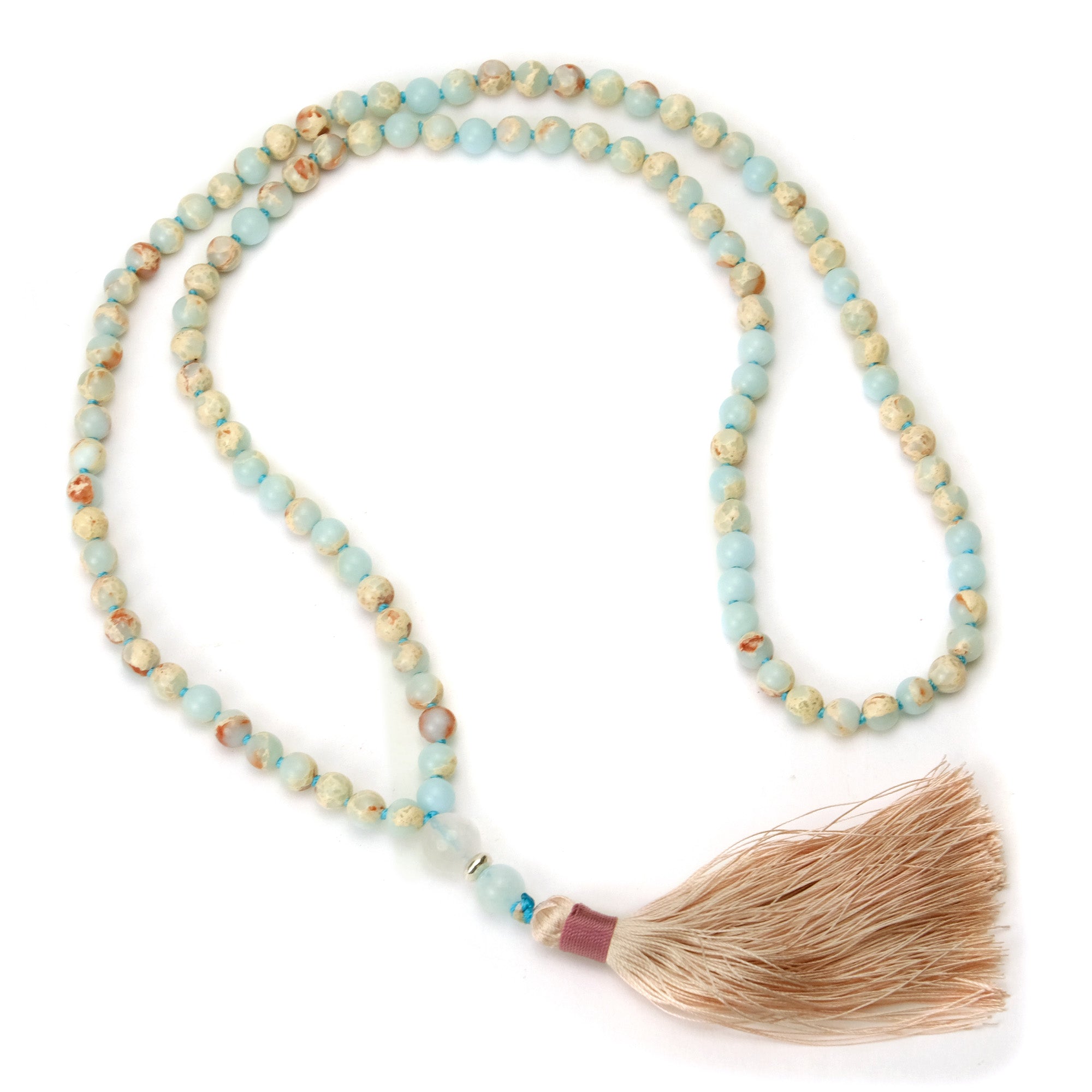 African Opal 6mm Knotted Mala with Silk Tassel #79