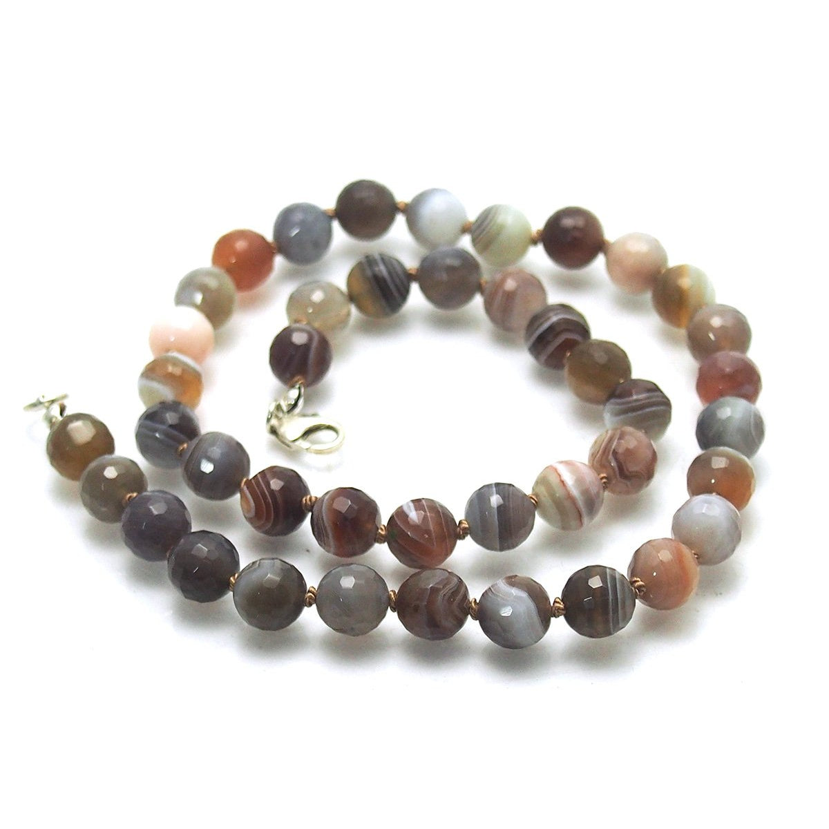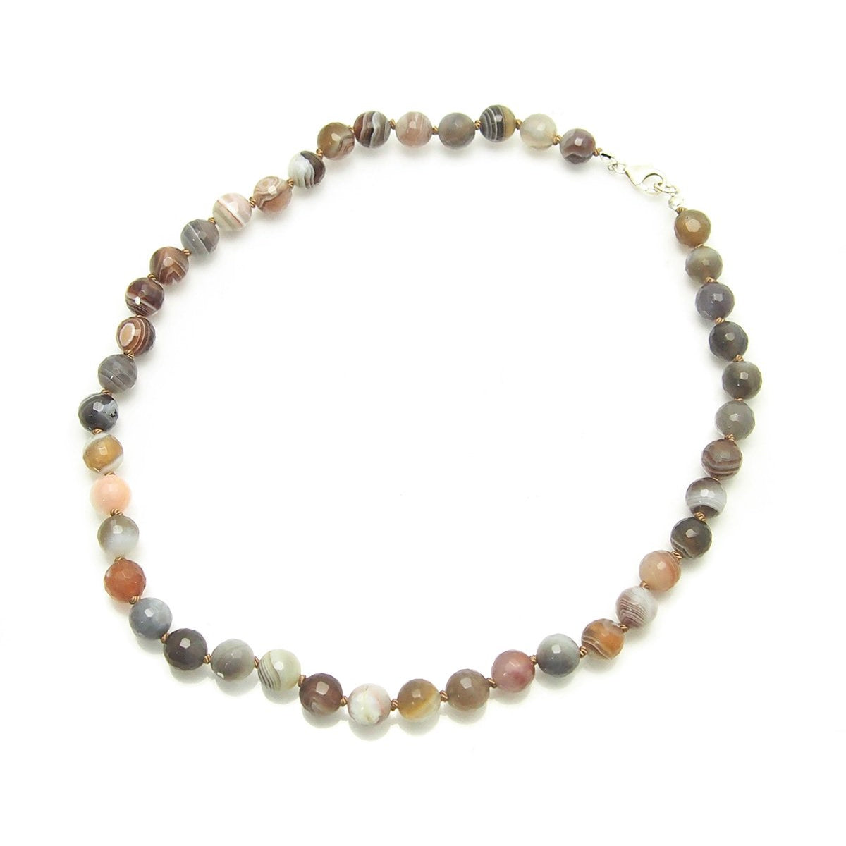 Botswana Agate Knotted Necklace with Sterling Silver Trigger Clasp