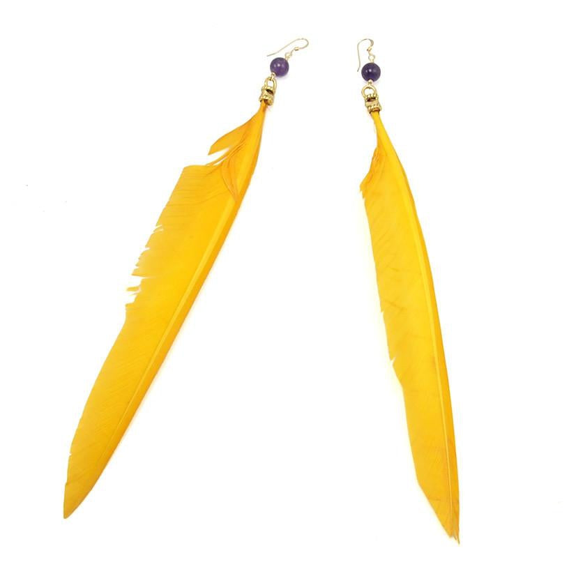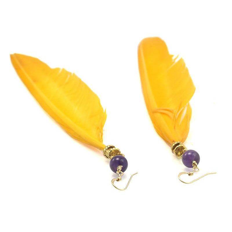 Feather Earrings with Amethyst Beads