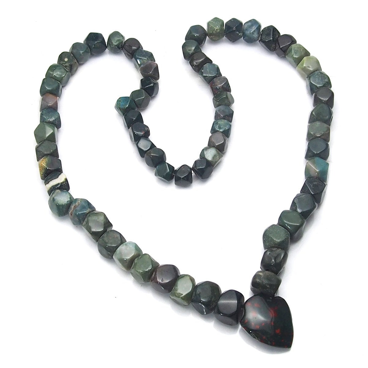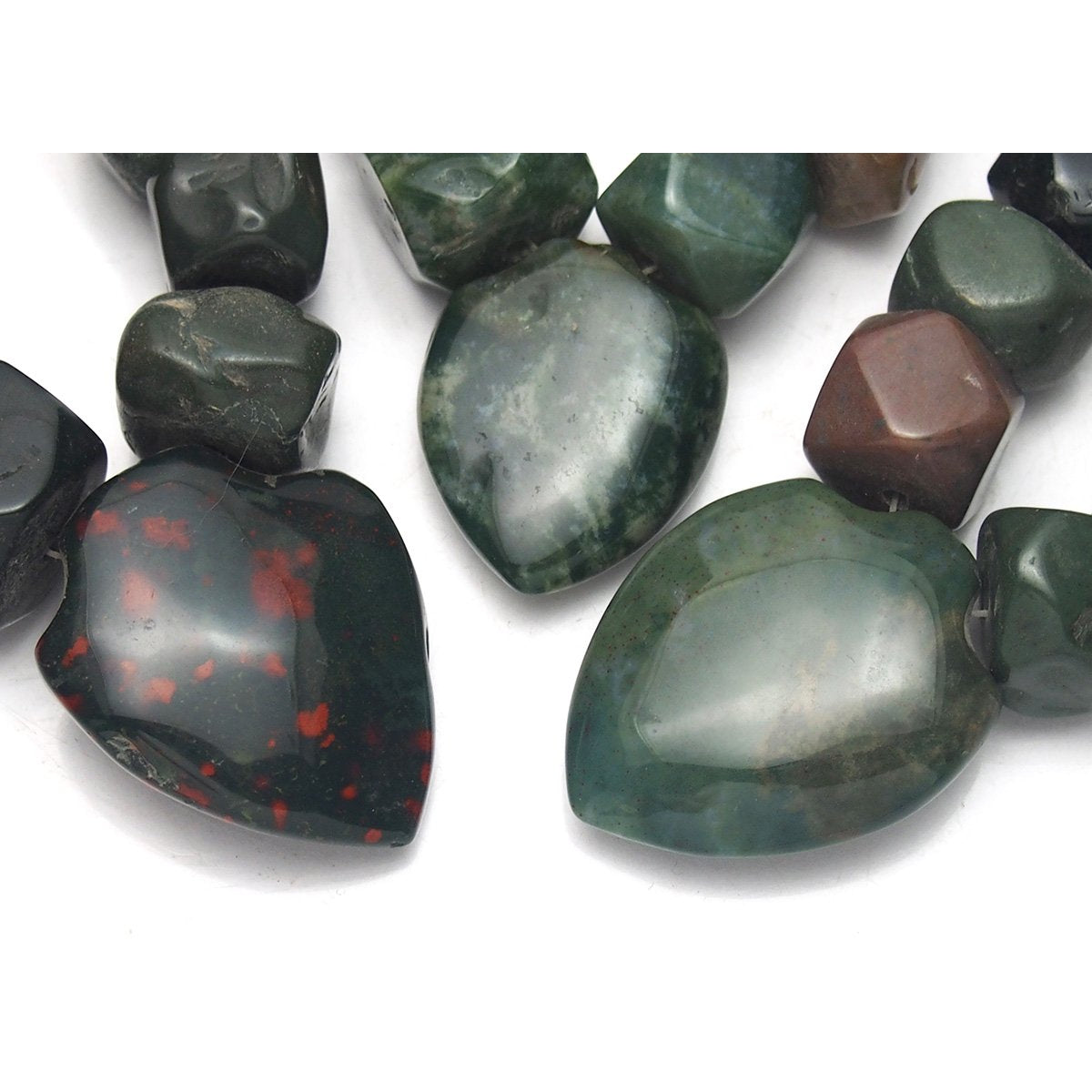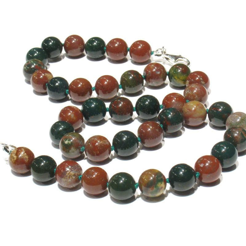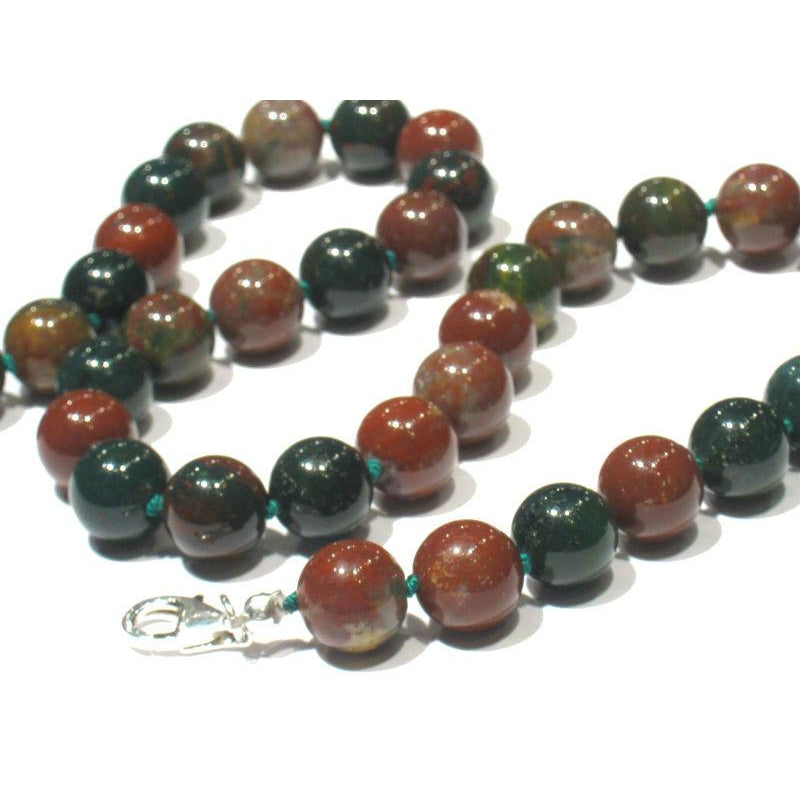 Early Christian legend is that when Jesus Christ was crucified, the dripping blood stained the green Jasper at his feet, and this was the origin of Bloodstone. Bloodstone was widely used in sculptures representing flagellation and martyrdom, and was known at one time as the "Martyr's Stone". There are also some gemological myths associated with Bloodstone. In the gem trade, the term blood jasper is sometimes used to refer to Bloodstone. Many apparently reputable sources describe bloodstone as a form of green Jasper, or as containing red Jasper. But according to the most authoritative sources, Bloodstone is not a Jasper at all. Bloodstone was the original birthstone for March but has been replaced by Aquamarine. However, Bloodstone is still regarded as the astrological gem for Aries. The largest Bloodstone deposits are in India. Some believe the reason for the shortage of high quality Bloodstone is due to the fact that finely powdered Bloodstone is used as both a medicine and an aphrodisiac in India. Due to its name and appearance, many myths became associated with Bloodstone. It was once thought in folklore to be able to stop hemorrhages with the merest touch, and to relieve stomach and bowel pain. It was said to strengthen blood purifying organs and improve blood circulation.