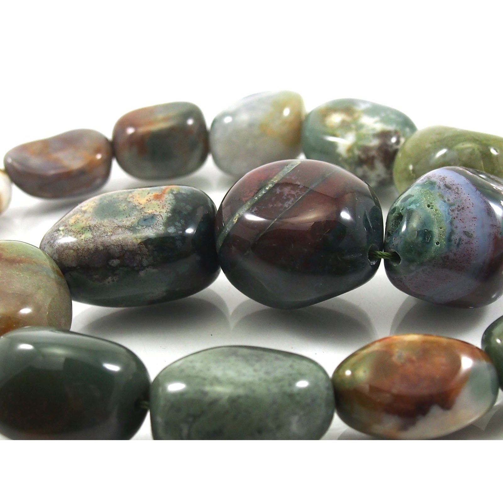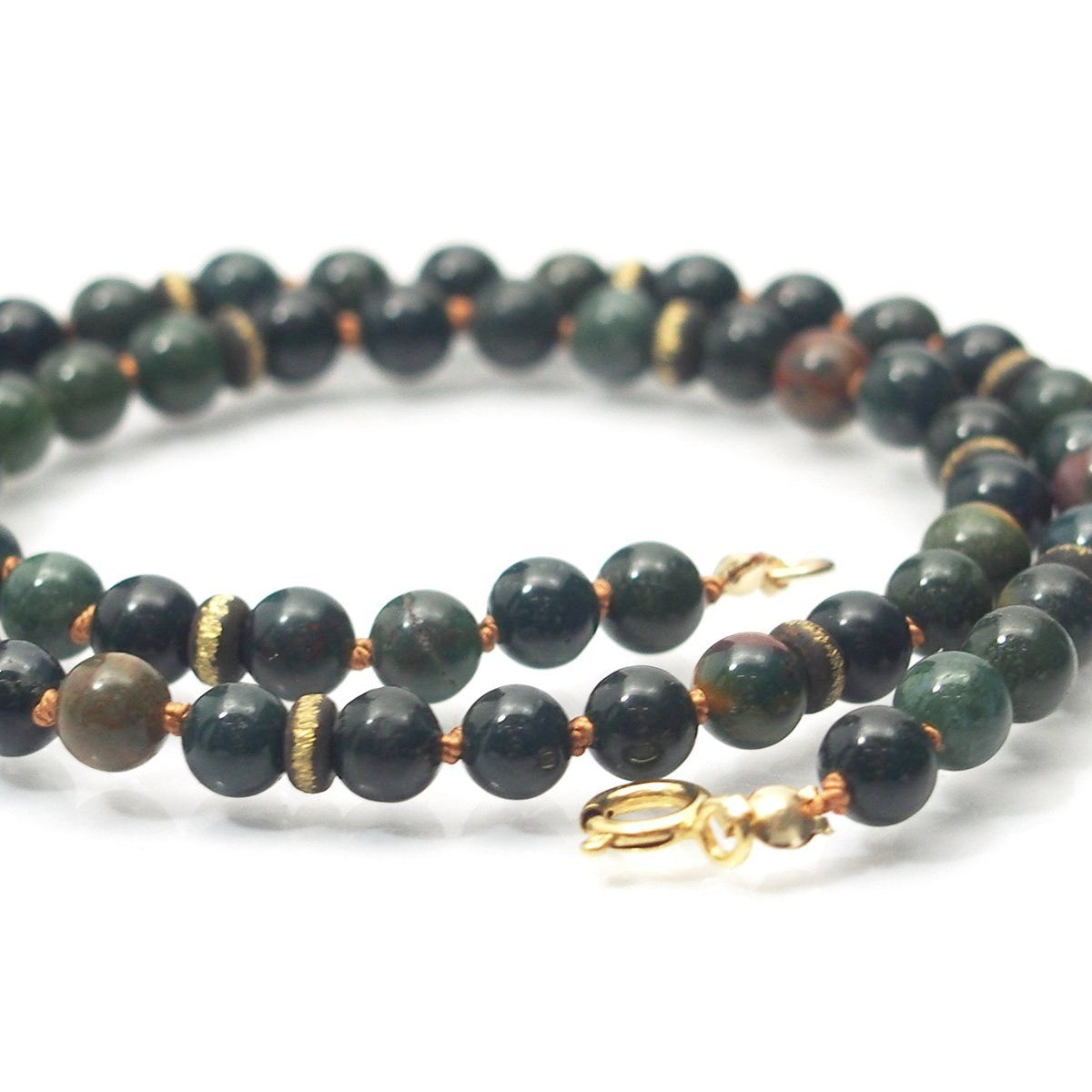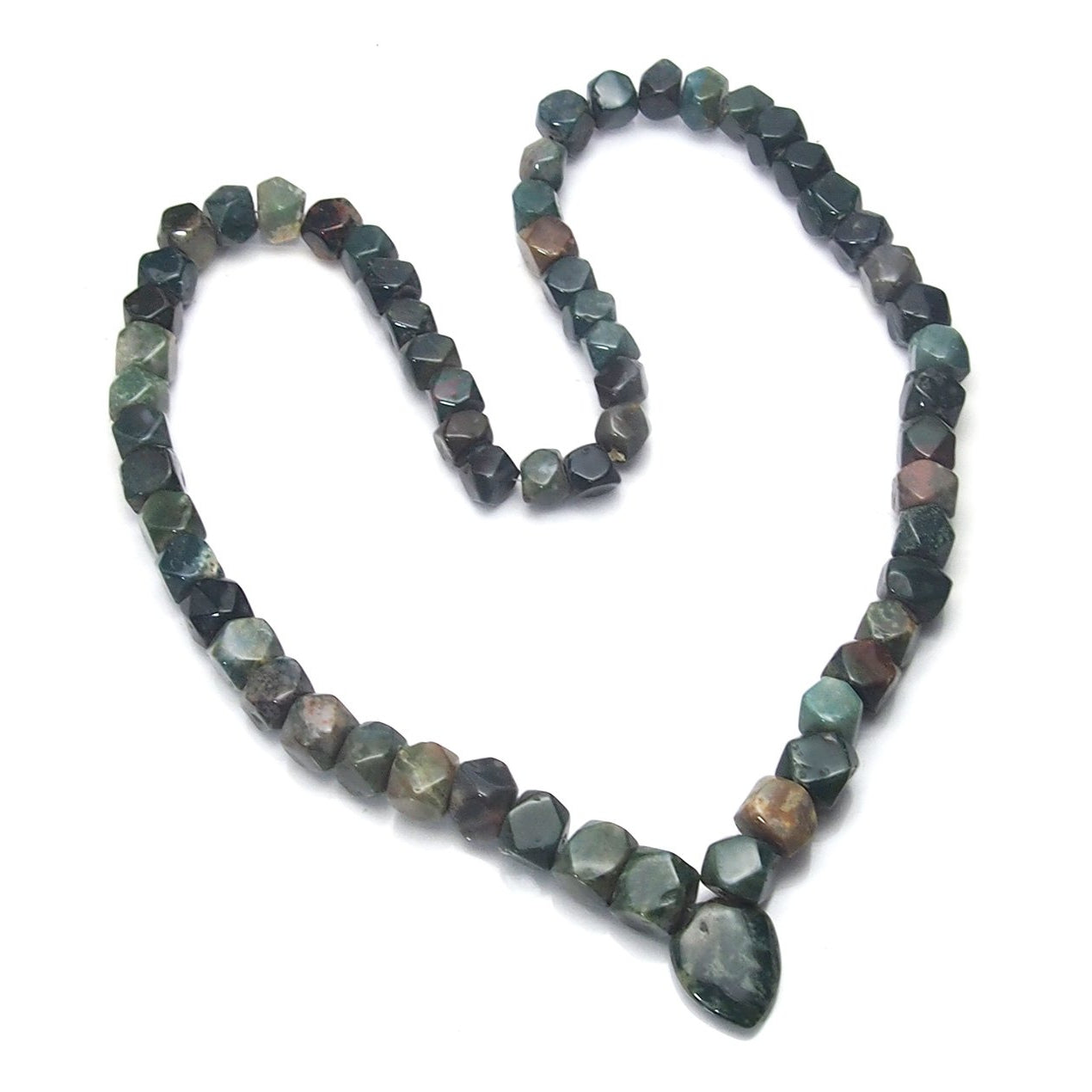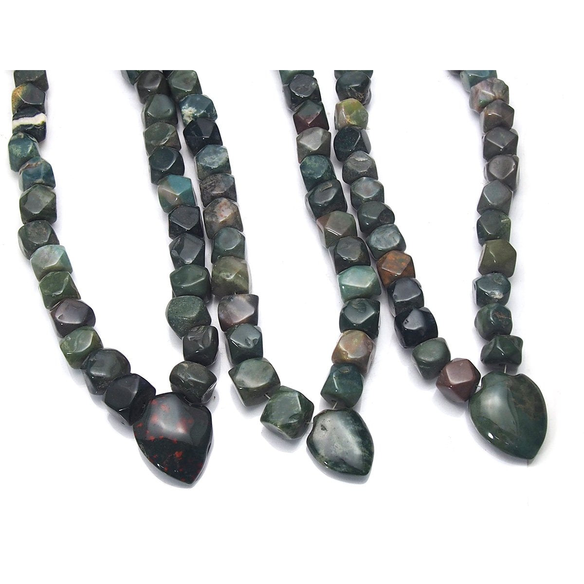 Early Christian legend is that when Jesus Christ was crucified, the dripping blood stained the green Jasper at his feet, and this was the origin of Bloodstone. Bloodstone was widely used in sculptures representing flagellation and martyrdom, and was known at one time as the "Martyr's Stone". There are also some gemological myths associated with Bloodstone. In the gem trade, the term blood jasper is sometimes used to refer to Bloodstone. Many apparently reputable sources describe bloodstone as a form of green Jasper, or as containing red Jasper. But according to the most authoritative sources, Bloodstone is not a Jasper at all. Bloodstone was the original birthstone for March but has been replaced by Aquamarine. However, Bloodstone is still regarded as the astrological gem for Aries. The largest Bloodstone deposits are in India. Some believe the reason for the shortage of high quality Bloodstone is due to the fact that finely powdered Bloodstone is used as both a medicine and an aphrodisiac in India. Due to its name and appearance, many myths became associated with Bloodstone. It was once thought in folklore to be able to stop hemorrhages with the merest touch, and to relieve stomach and bowel pain. It was said to strengthen blood purifying organs and improve blood circulation.