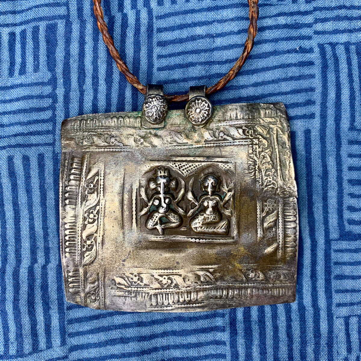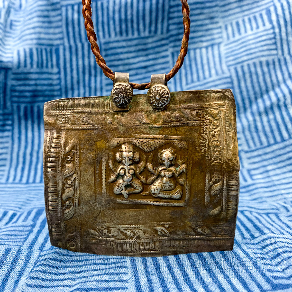 Hand Stamped 80% Silver Sheet Ganesha and Lakshmi Large Pectoral Pendant