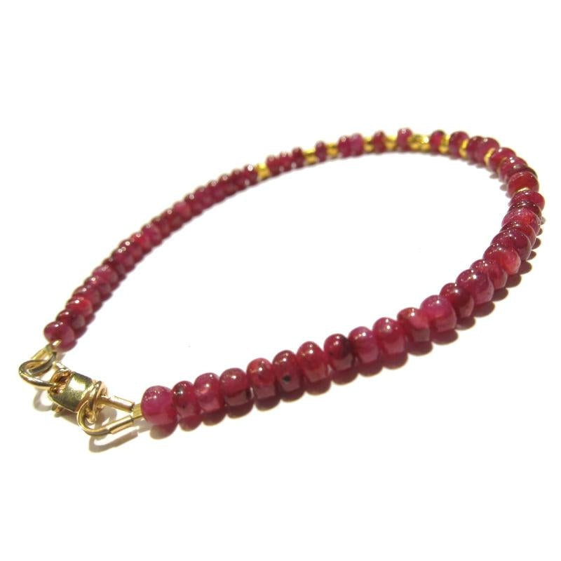 Ruby Bracelet with Faceted Gold Plated Beads and Gold Filled Lobster Claw Clasp