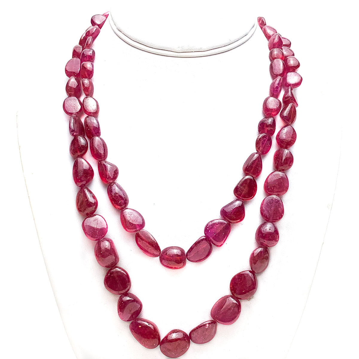 Ruby Smooth Graduated Nugget Double Strand Necklace