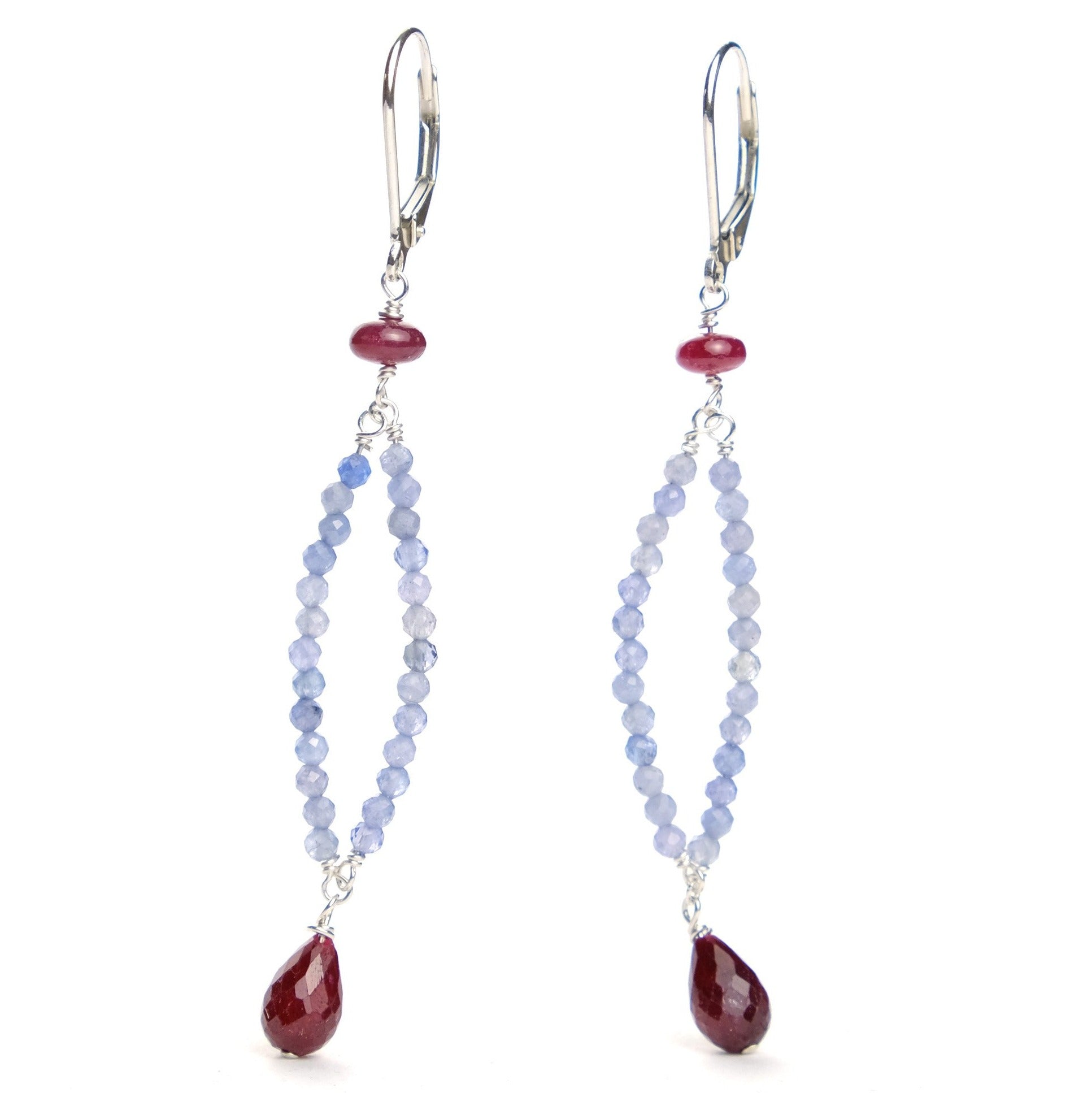 Tanzanite + Ruby Earrings with Sterling Silver Latch Back