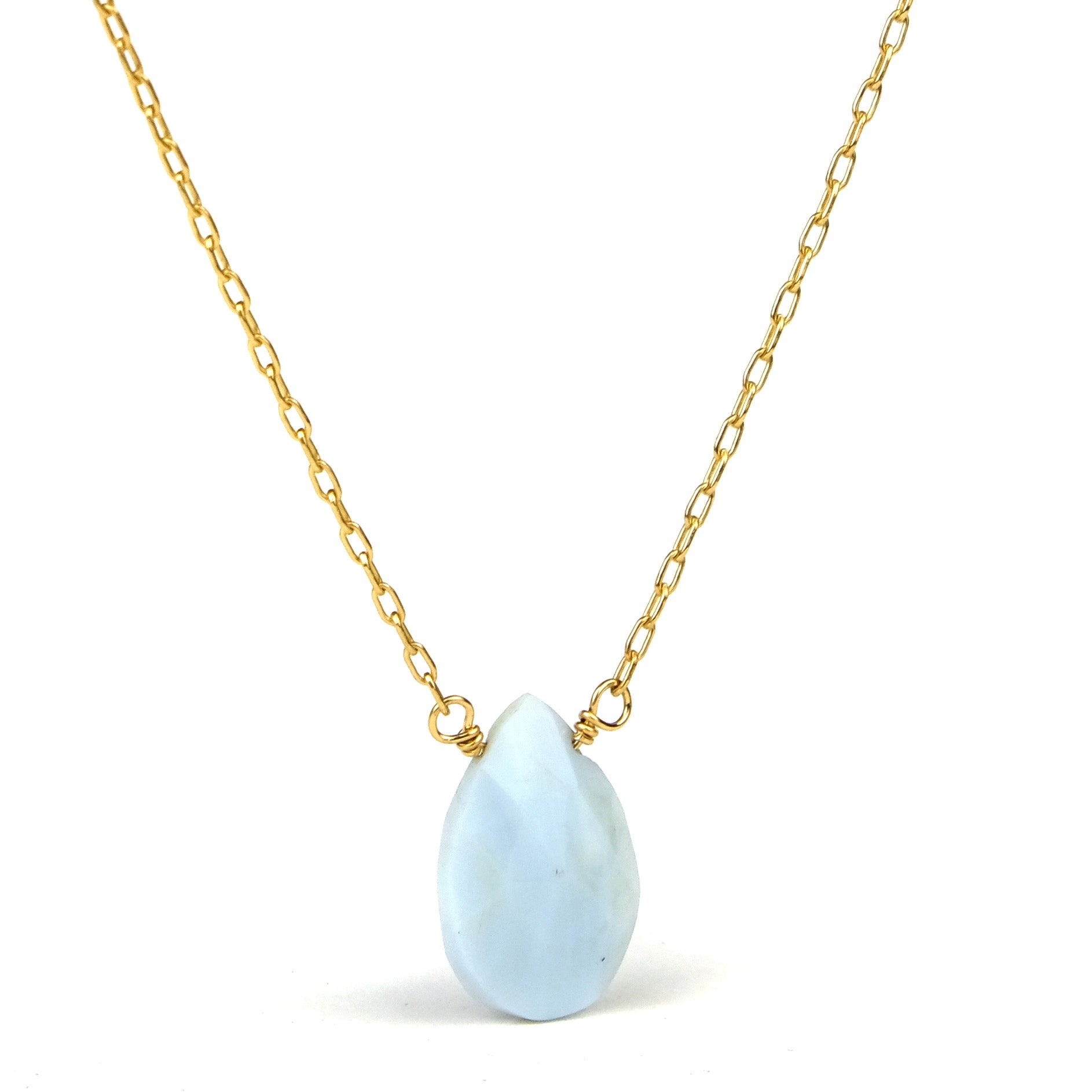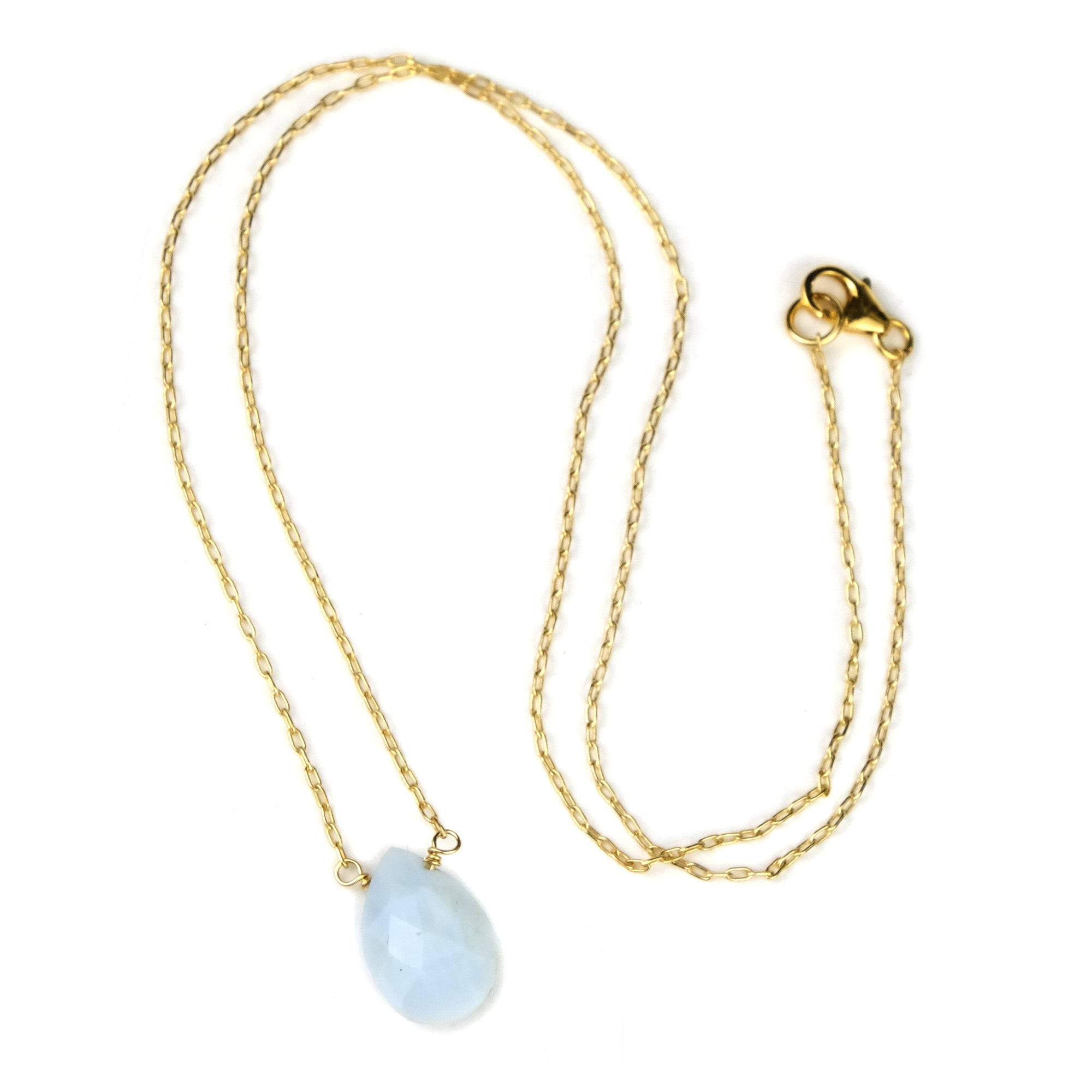 Blue Chalcedony on Gold Filled Chain with Gold Filled Trigger Clasp Necklace