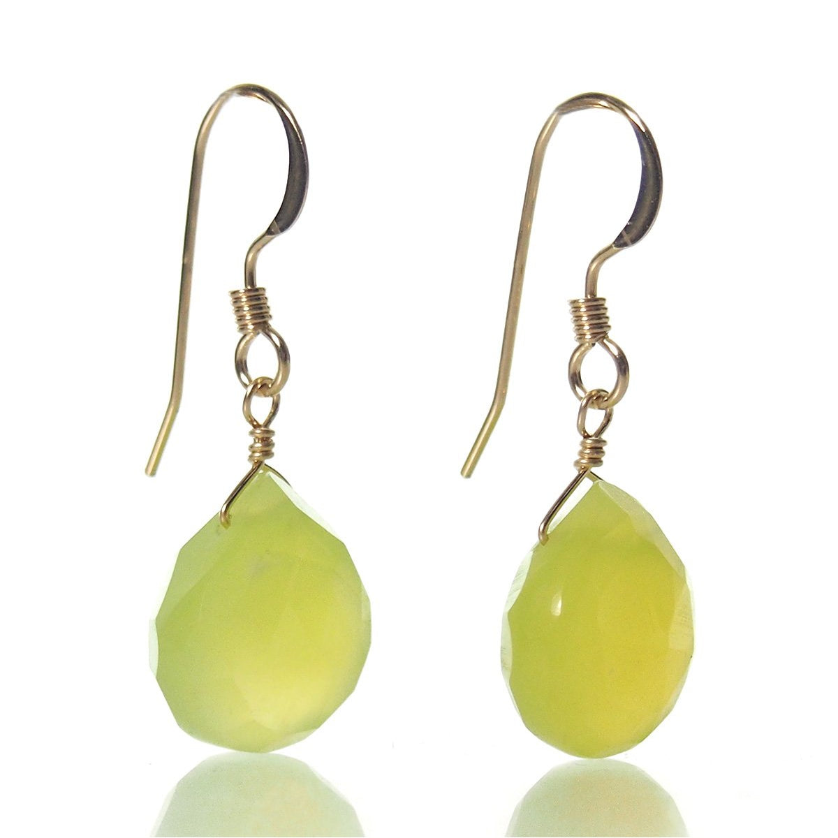 Green Apple Chalcedony Earrings with Gold Filled French Earwires