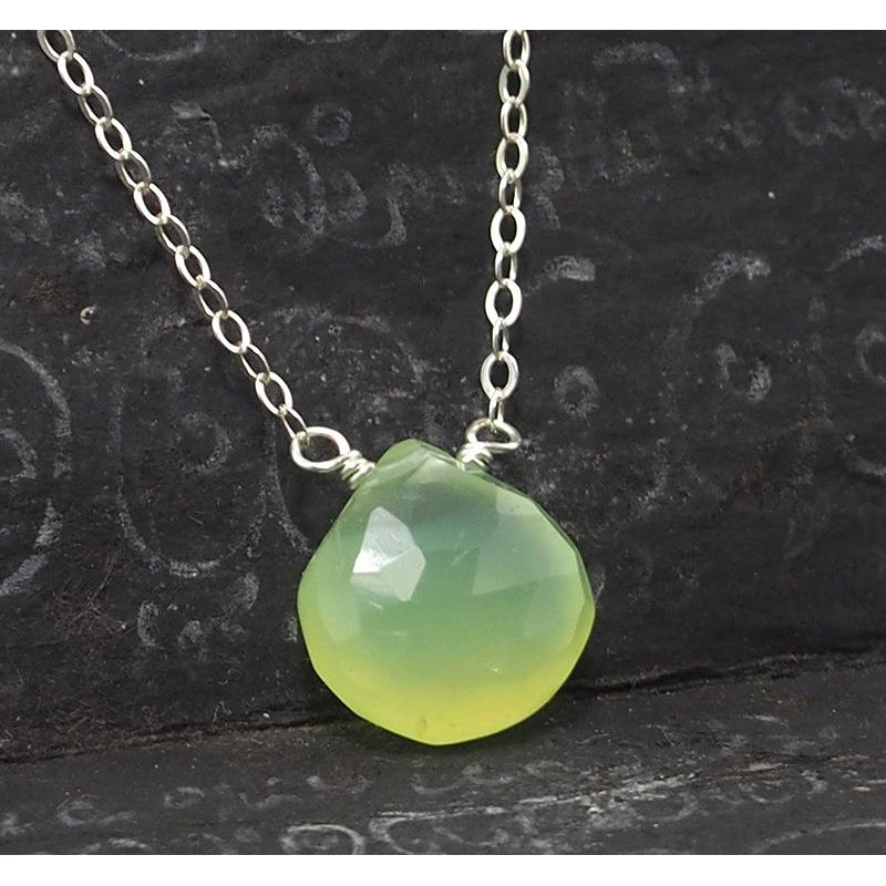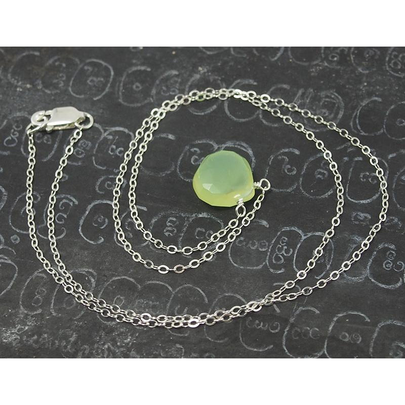 Green Apple Chalcedony Necklace On Sterling Silver Chain With Sterling Silver Lobster Claw Clasp