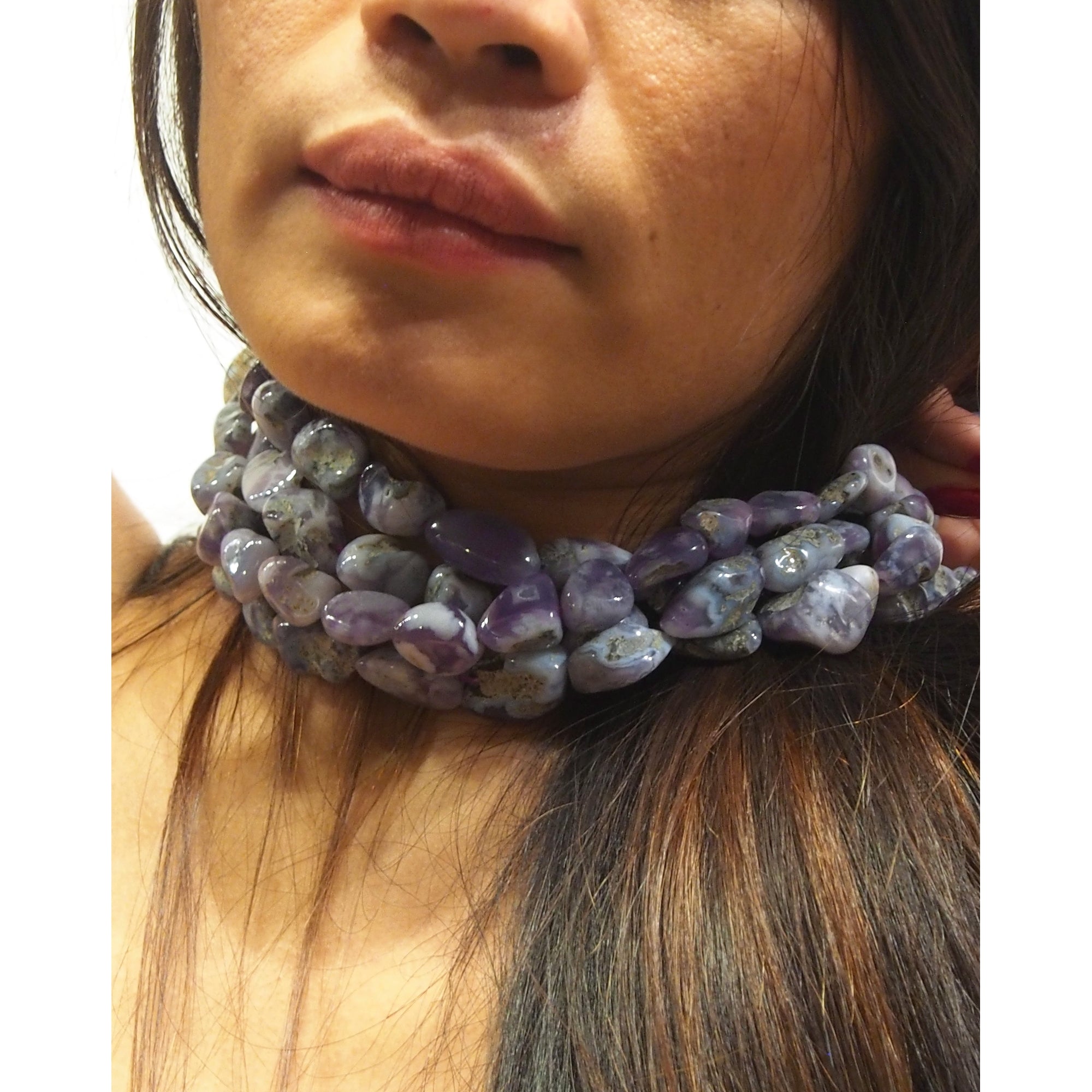 • Chalcedony is used as a variety name to refer specifically to the bluish-gray or lavender color of cryptocrystalline quartz. This color is sometimes called "True Chalcedony" but the name can be confusing; most of the other Chalcedonies are referred to by different names, such as Agate, Bloodstone or Carnelian due to color and elements variation which alter their appearance.