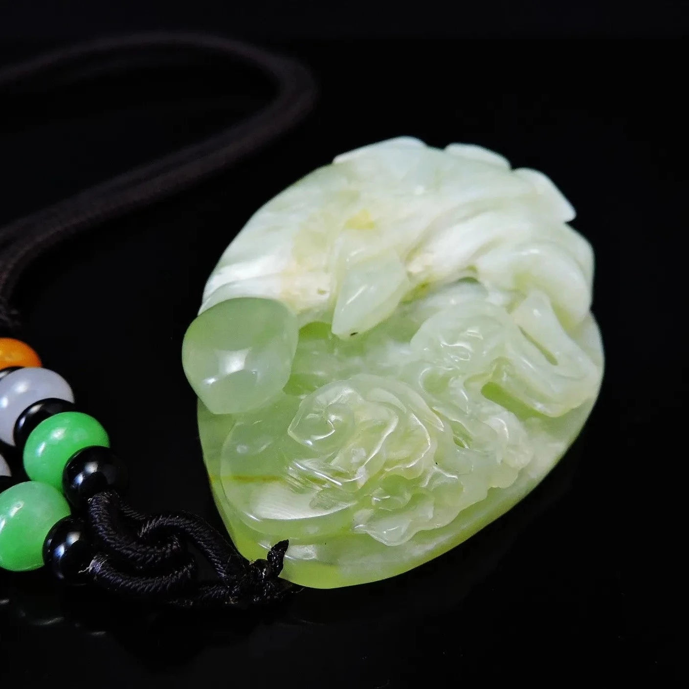100% Natural Hand-Carved Jade Pendant Jadeite Necklace Buddha