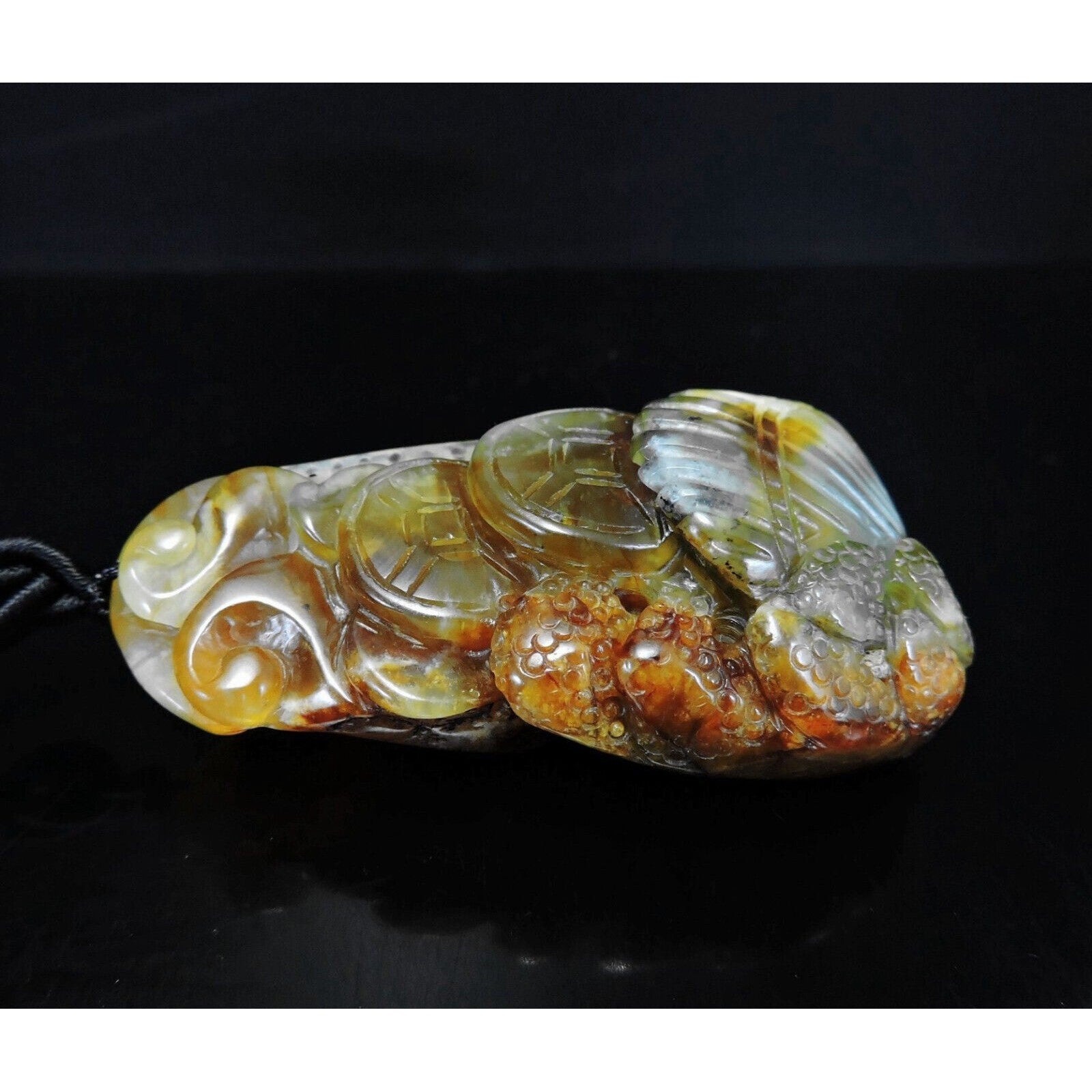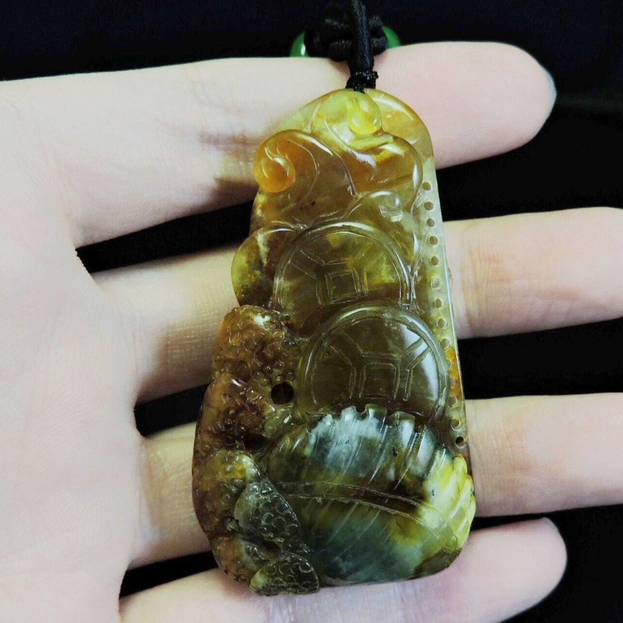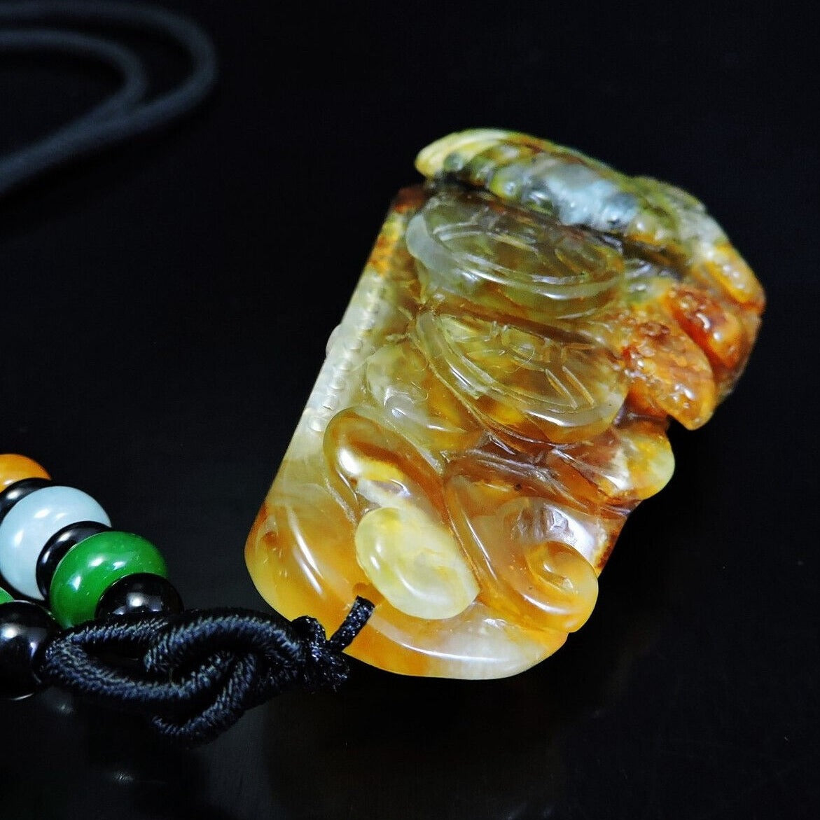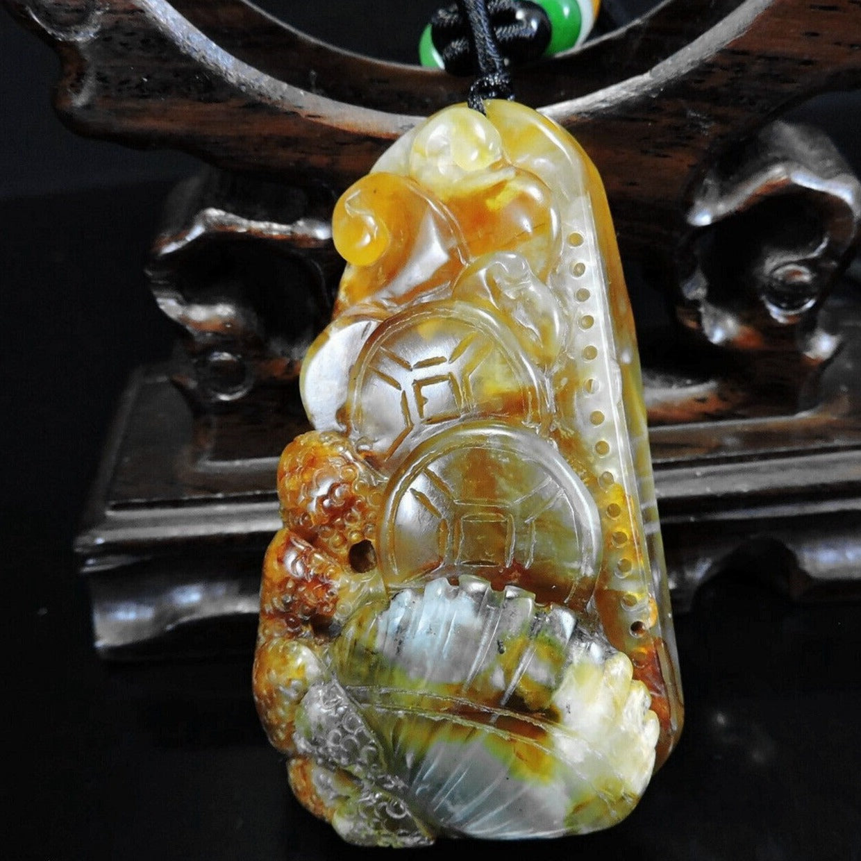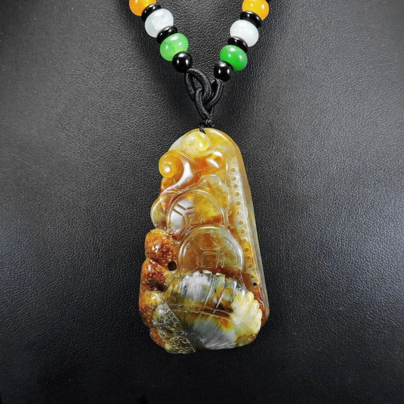 100% Natural Hand-Carved Jade Pendant Jadeite Necklace Coral & Seashell & Ruyi