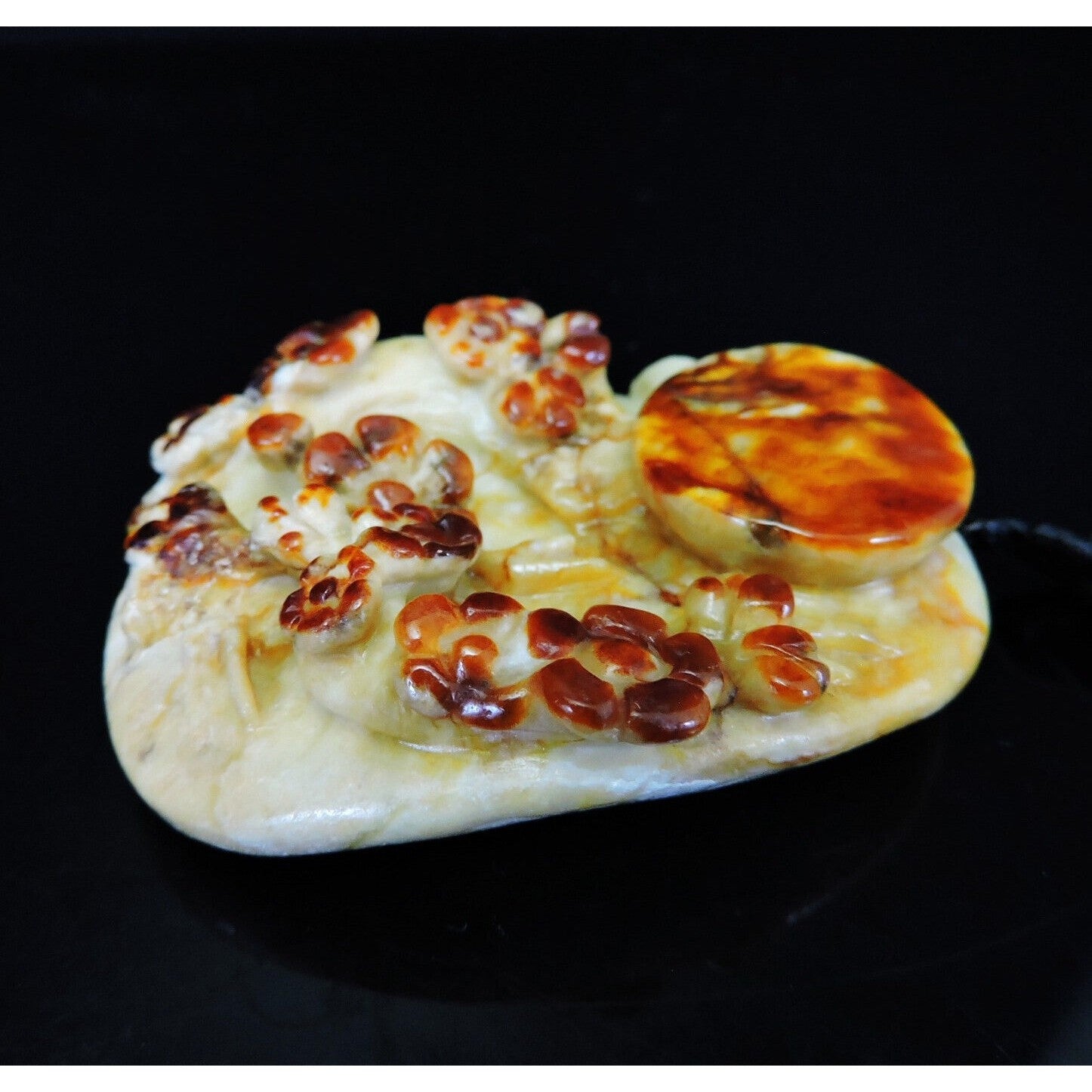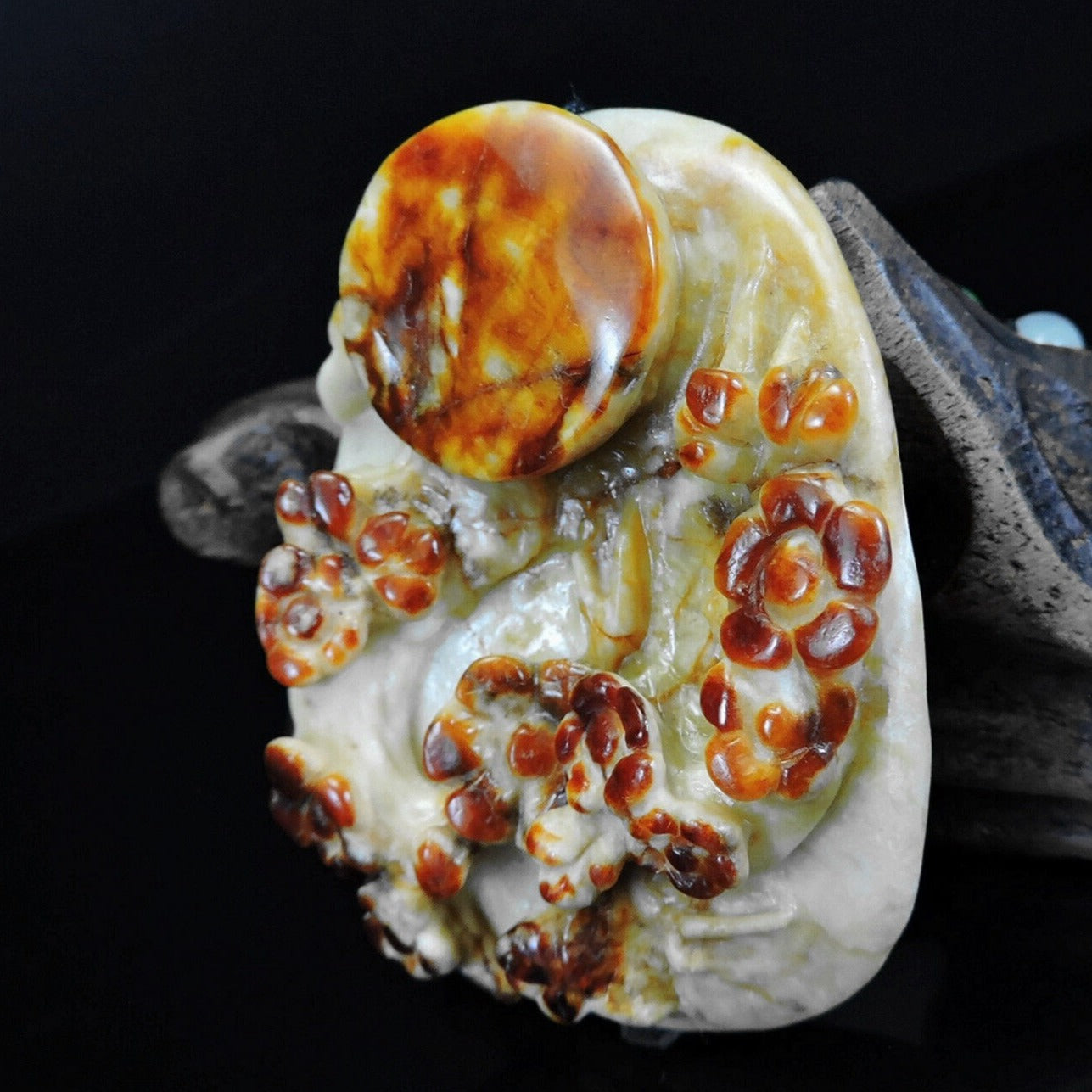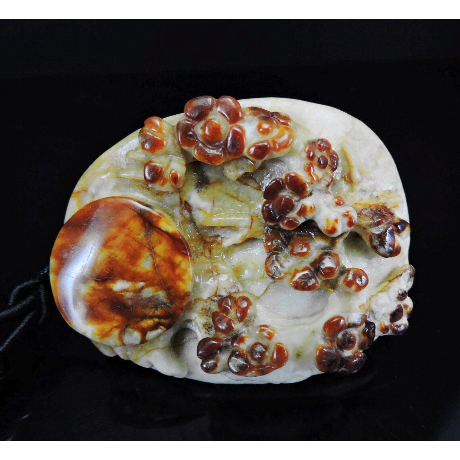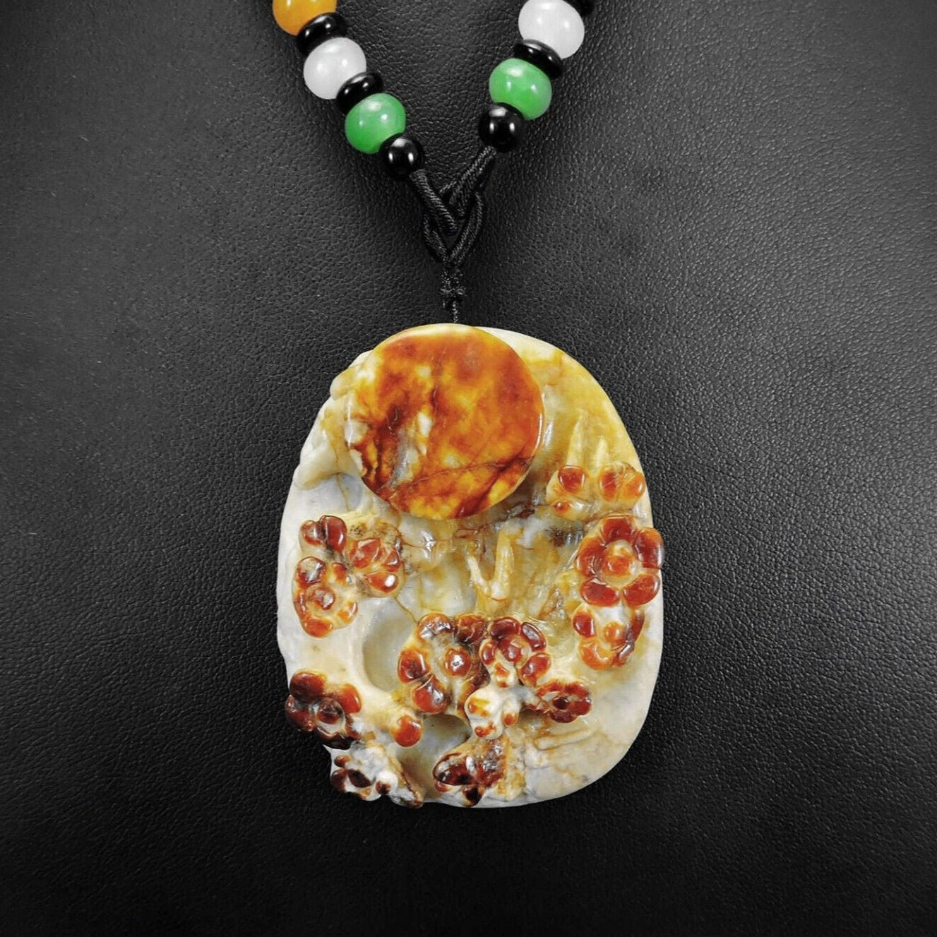 100% Natural Hand-carved Jade Pendant Jadeite Necklace Moon & Plum Flower
