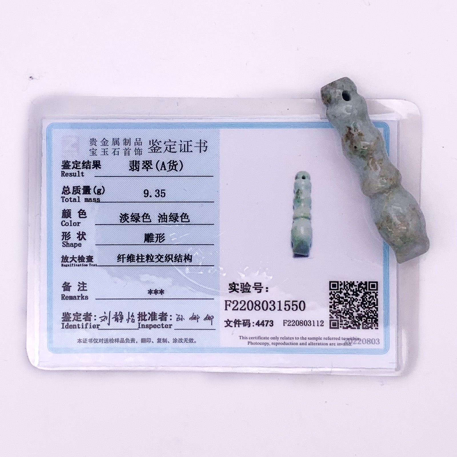 Certified 100% Natural Burma Jadeite Carved Luck Writing Brush Pendant