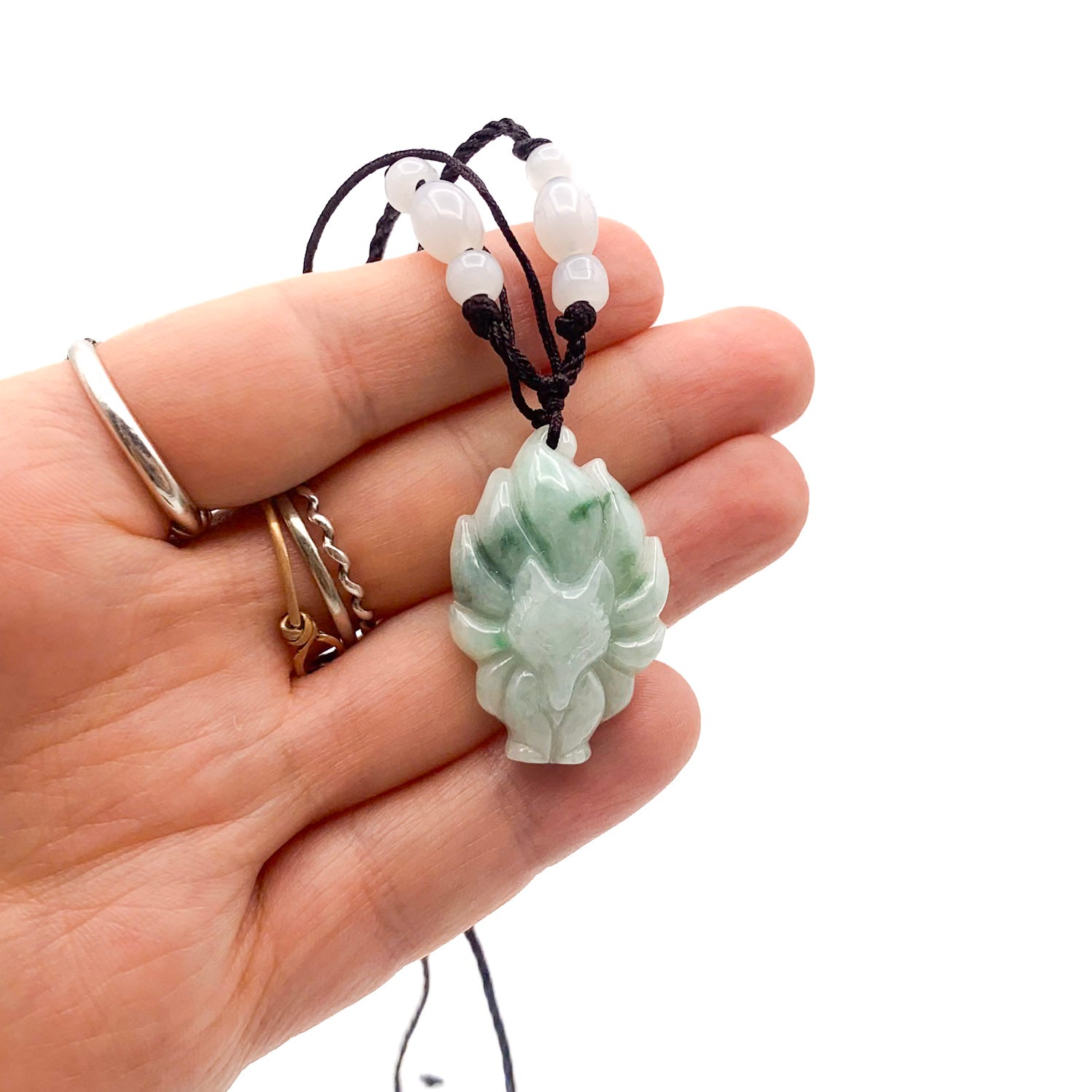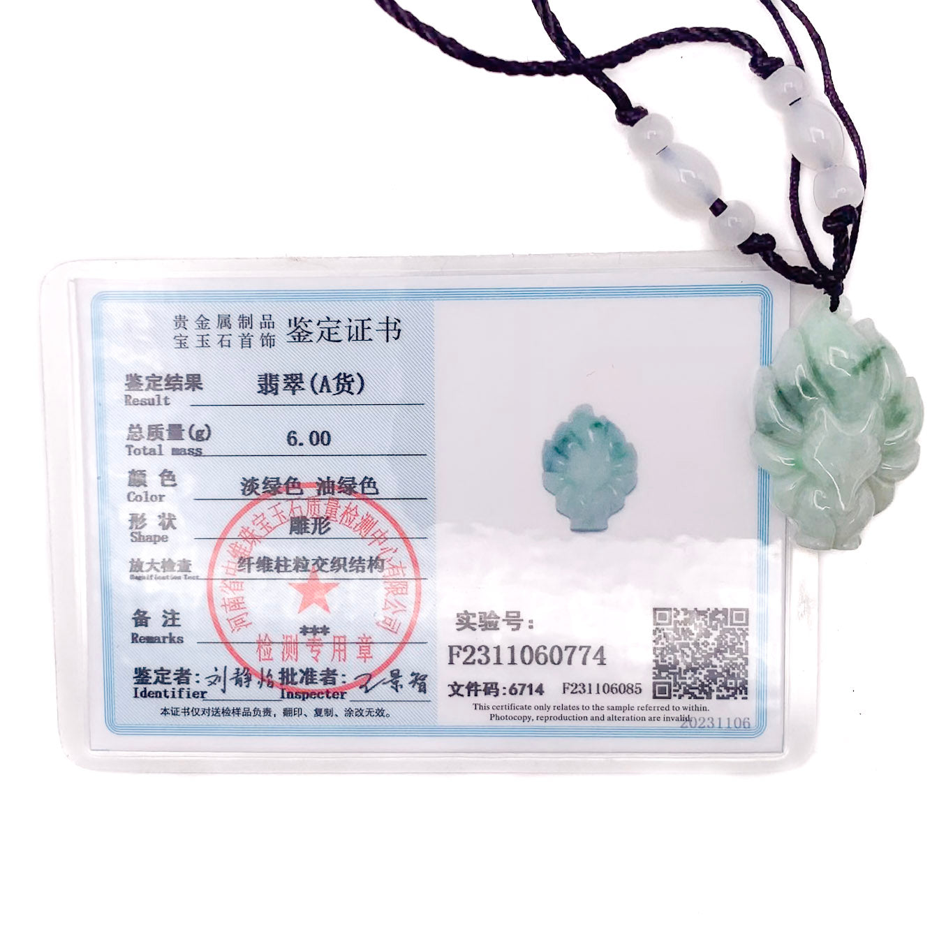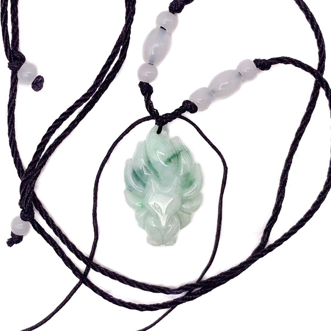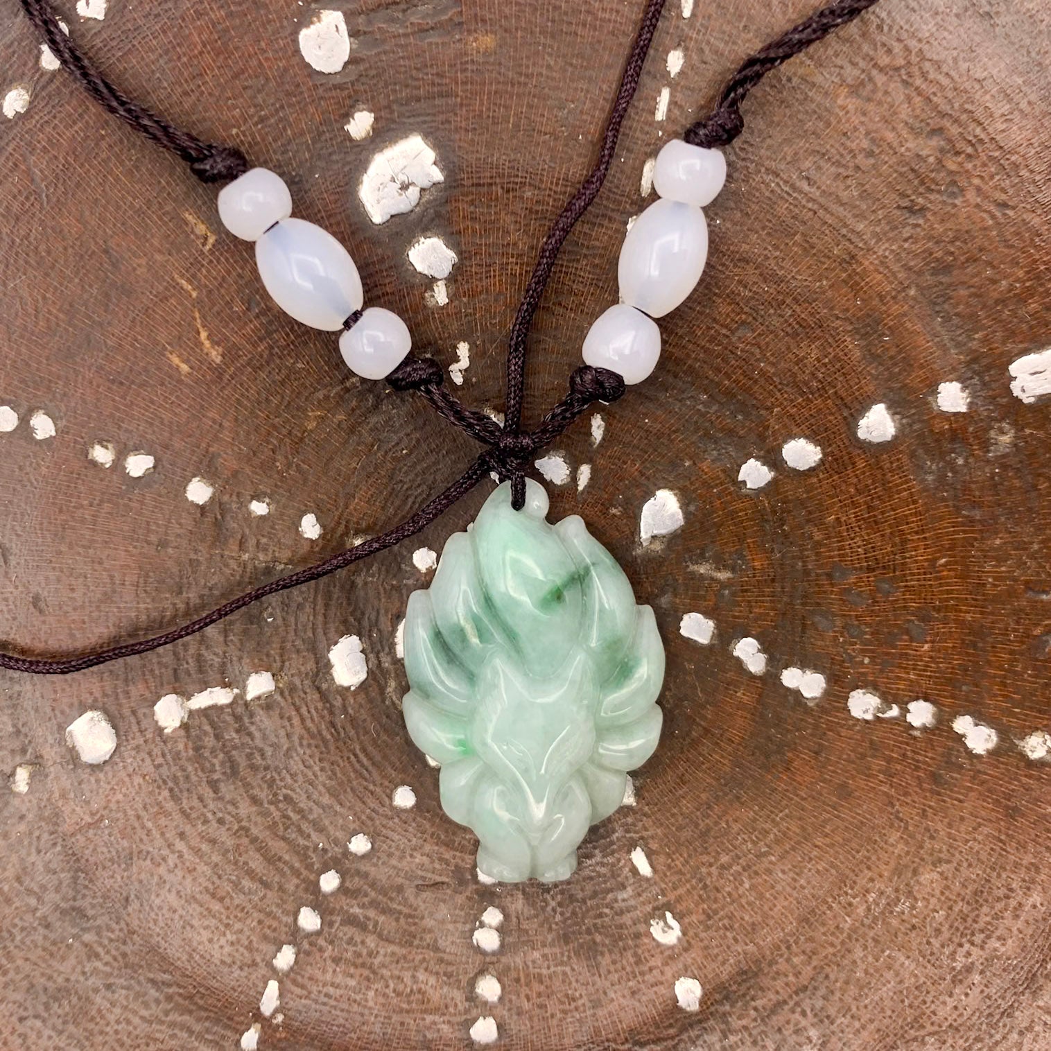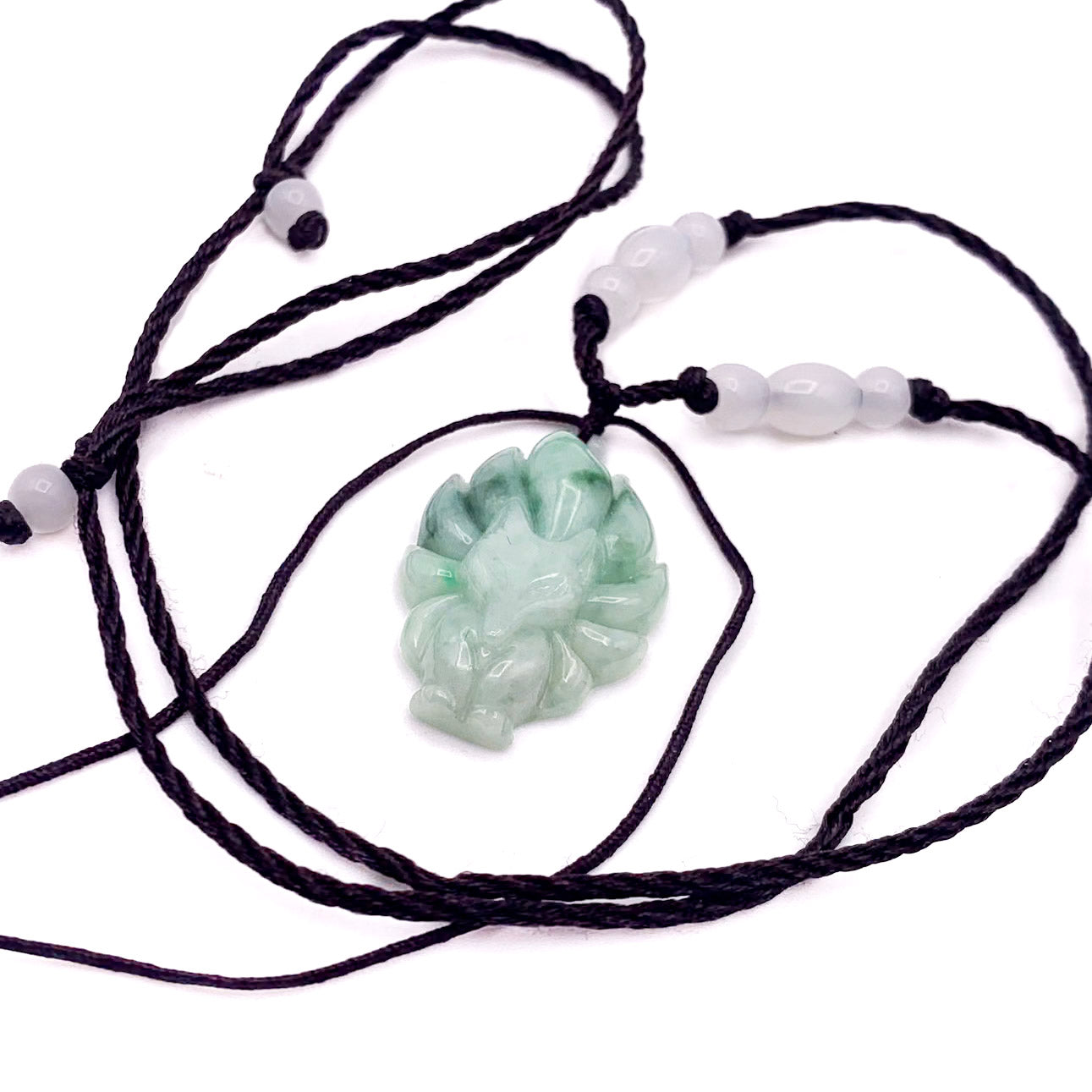 Certified 100% Natural Jadeite Nine Tail Fox Kitsune Pendant