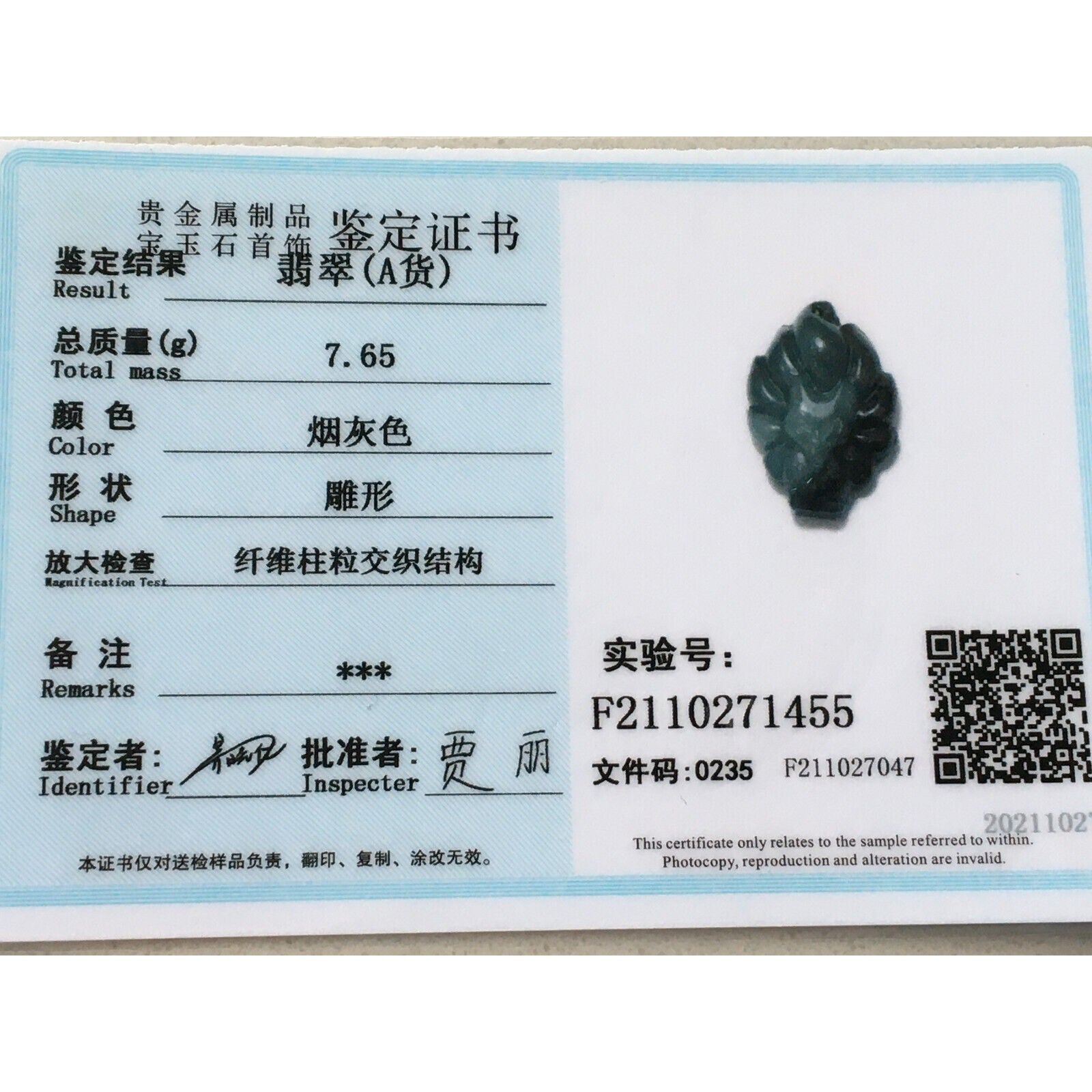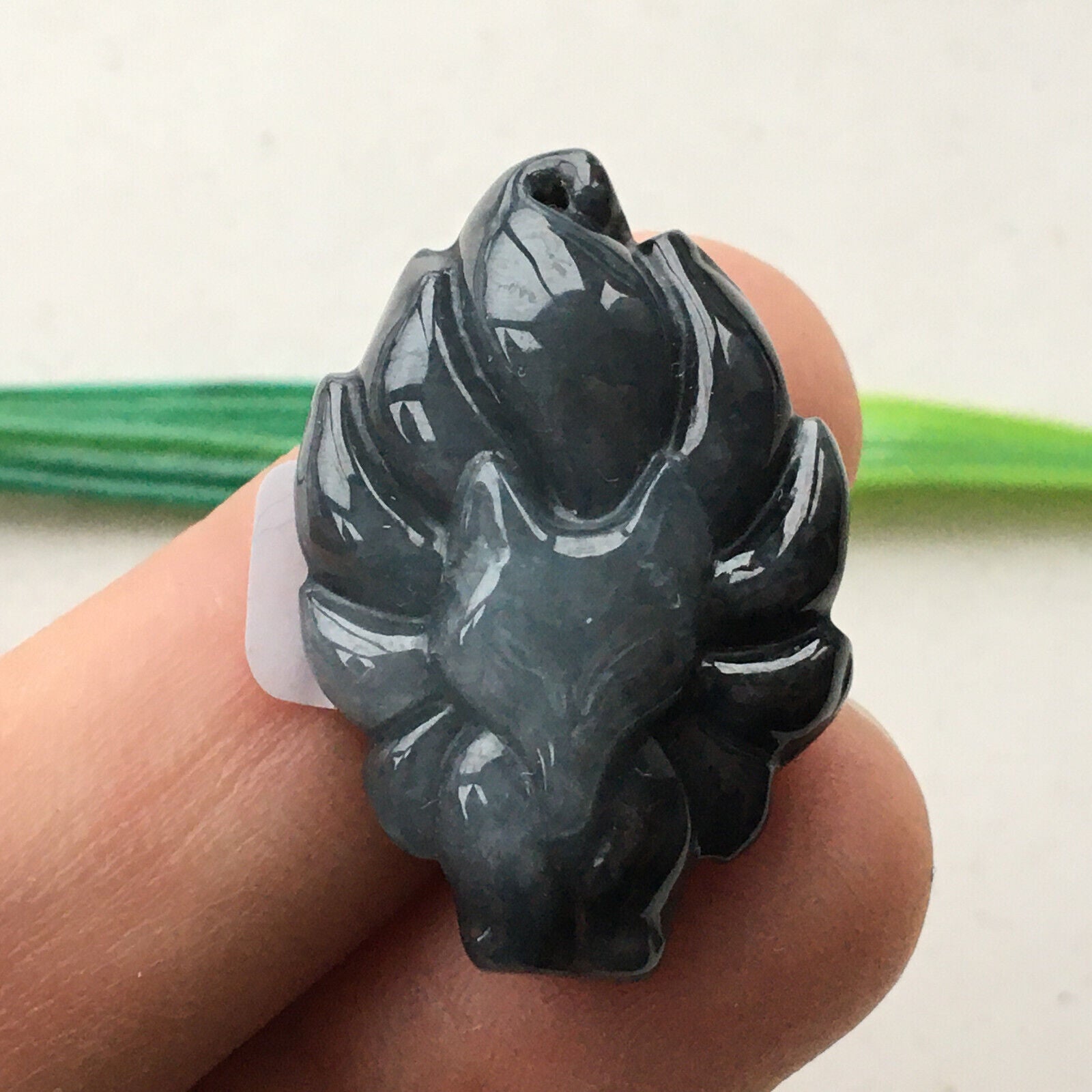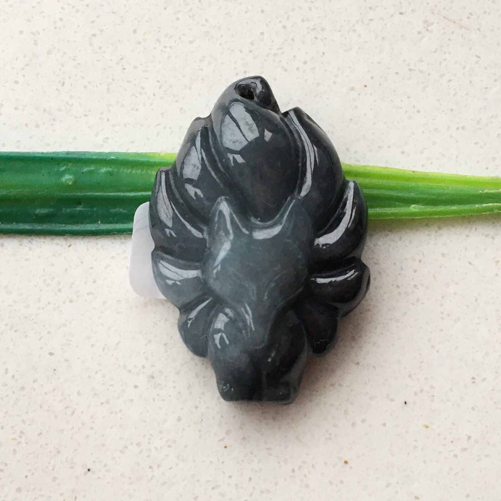 Certified 100% Natural Smoky Gray Jadeite Carved Nine-Tailed Fox Pendant