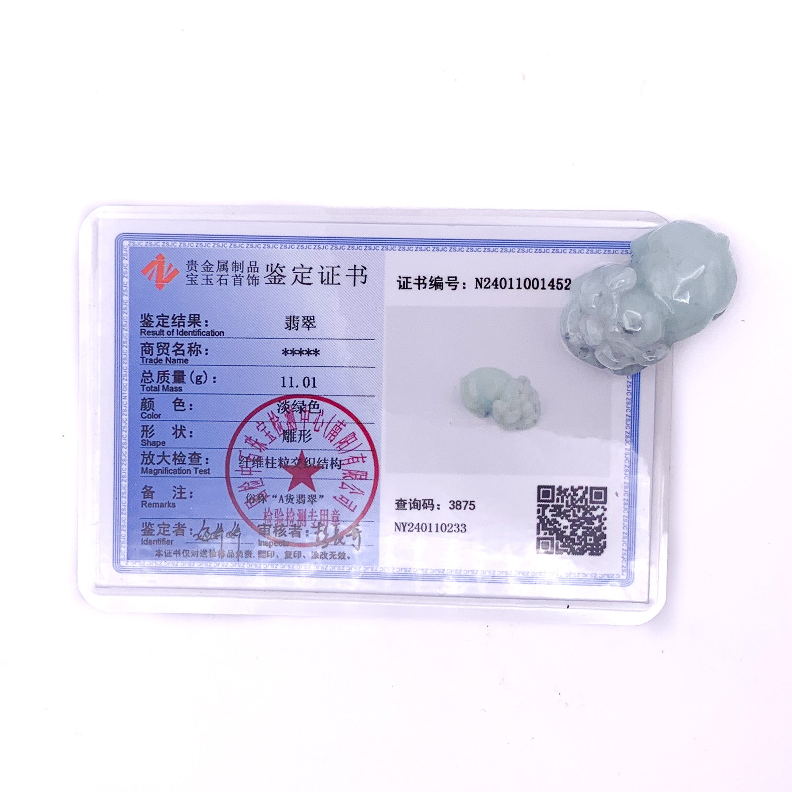 Certified 100% Natural White Light Green A Jade Jadeite Pendant Pig